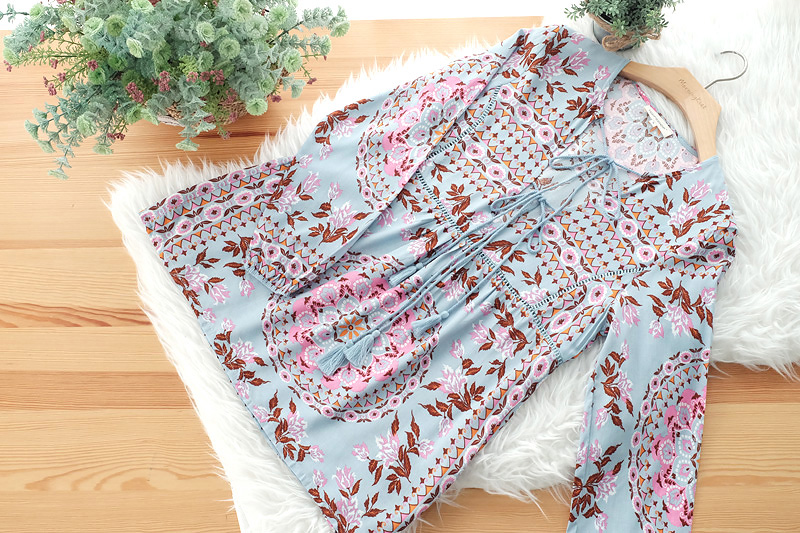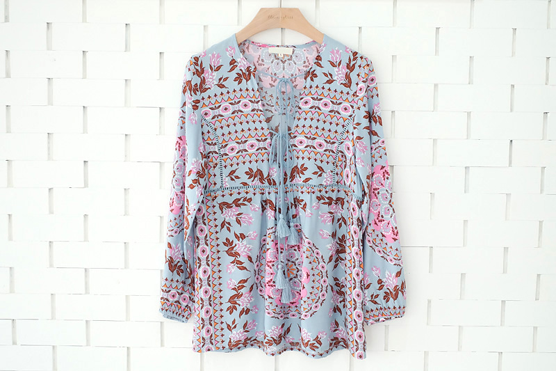 เติมความสดใสกับเสื้อสไตส์ Bohemian ที่อยากแนะนำกันอีกแบบ ลายผ้าปริ้นสวยหวาน ด้านหน้าเป็นแบบเชือกผูก 2 ระดับ แมทกับกางเกงยีนส์หรือขาสั้น กำลังน่ารักเลย จัดไปไม่ผิดหวัง