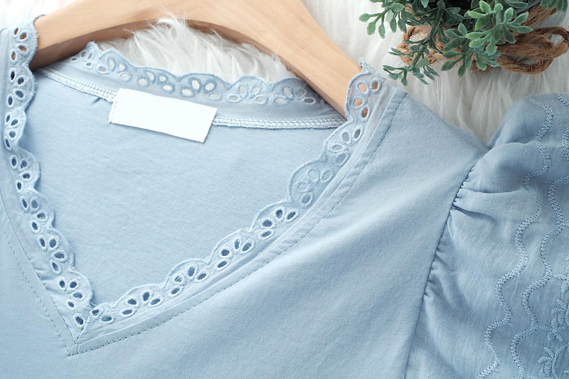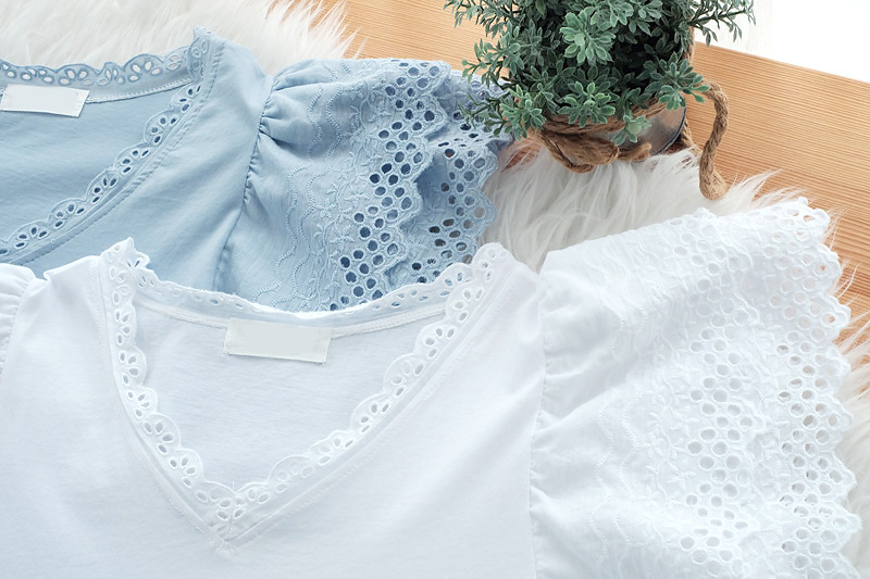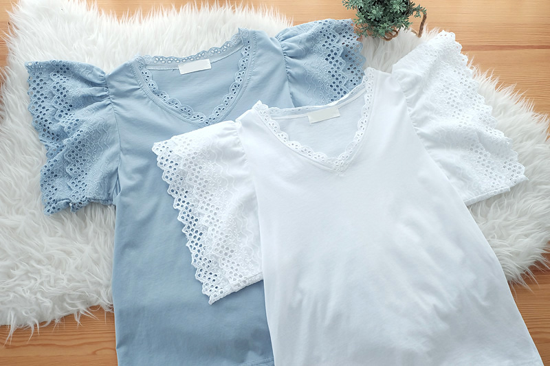 Basic Tee เสื้อที่ใส่ได้ตลอดกาลแบบไม่มีเอ๊าท์ แต่รุ่นี้ไม่ธรรมดา เพิ่มดีเทลสวยหวานที่ช่วงคอและช่วงแขนด้วยการต่อผ้าลูกไม้ฉลุลายช่วงแขน 2 ชั้น สวยหวานมีวอลลุ่ม เสื้อยืดเนื้อผ้าค๊อตตอลยืดหยุ่นได้ดีใส่สบาย ทรงคอวีแต่งผ้าลูกไม้เพิ่มความหวาน แมทง่าย ใส่กับกางเกงขาสั้นขายาวได้ทุกลุค