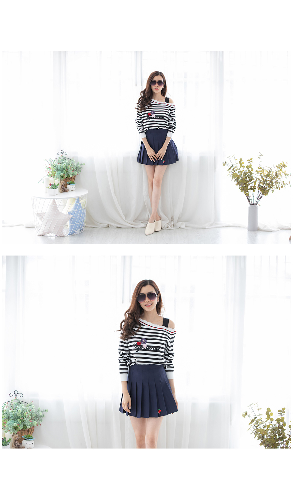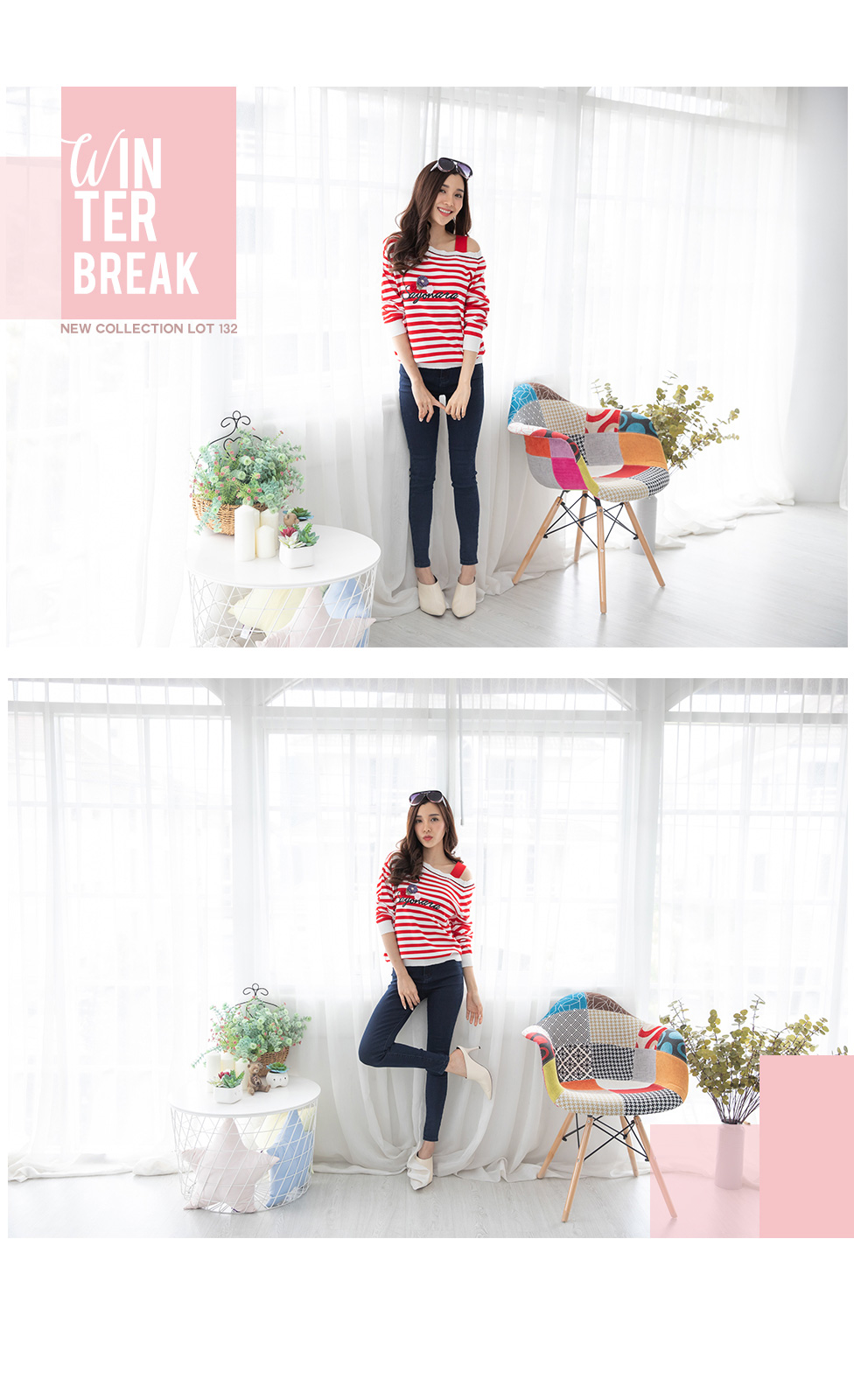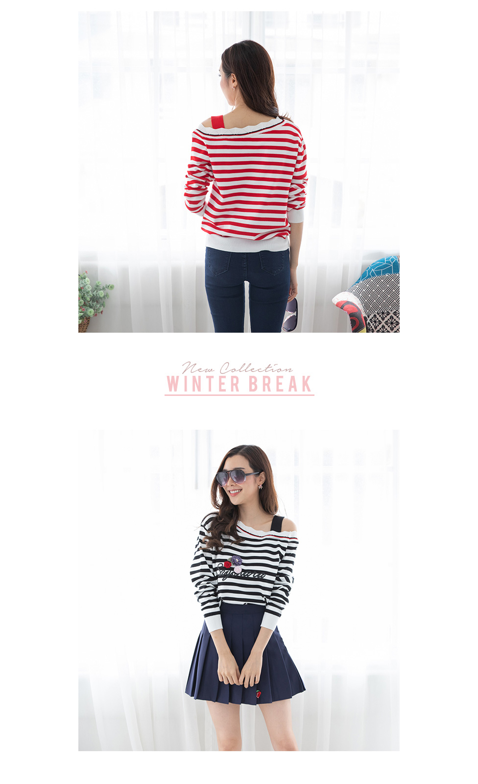 ไอเท็มแนะนำที่สาวๆควรตำ กับเสื้อแขนเปิดไหล่แบบมีสาย ลายขวางอินเทรนตลอดกาล เนื้อผ้า Knitting เนื้อนิ่มสุดๆ ไม่ระคายผิว แบบด้านหน้าสกรีนลายอักษรสีดำ ประดับดอกไม้อัดกลีบสวยๆแบบสามมิติ 3D สวยหวาน ดีเทลกำลังน่ารัก ขอบคอทอไหมลายหยักๆ มีมาให้เลือกสวย 2 ริ้ว (ริ้วดำ ริ้วแดง) ลุคนี้ใส่ได้สบายๆ