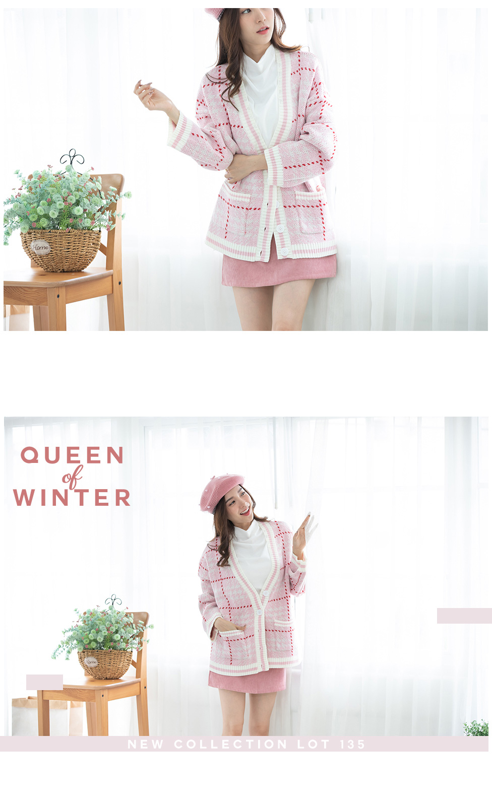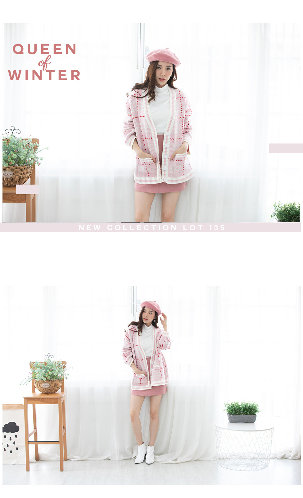ใครมีทริปต่างประเทศ จัดไปเลยกับเสื้อคลุมคาร์ดิแกนสีชมพูหวานพลาสเทล ลายตาราง ทอไหมสีแดงตัดกับตัวเสื้อสวยเด่นลงตัว มีกระเป๋าจริงด้านหน้า เย็บกระดุมเม็ดใหญ่สีขาวเข้าชุด เนื้อไหมหนากลางๆใส่อุ่นๆสบ๊ายสบาย ไอเท็มนี้แนะนำสาวๆเลยจ้า น่ารักจริงๆ