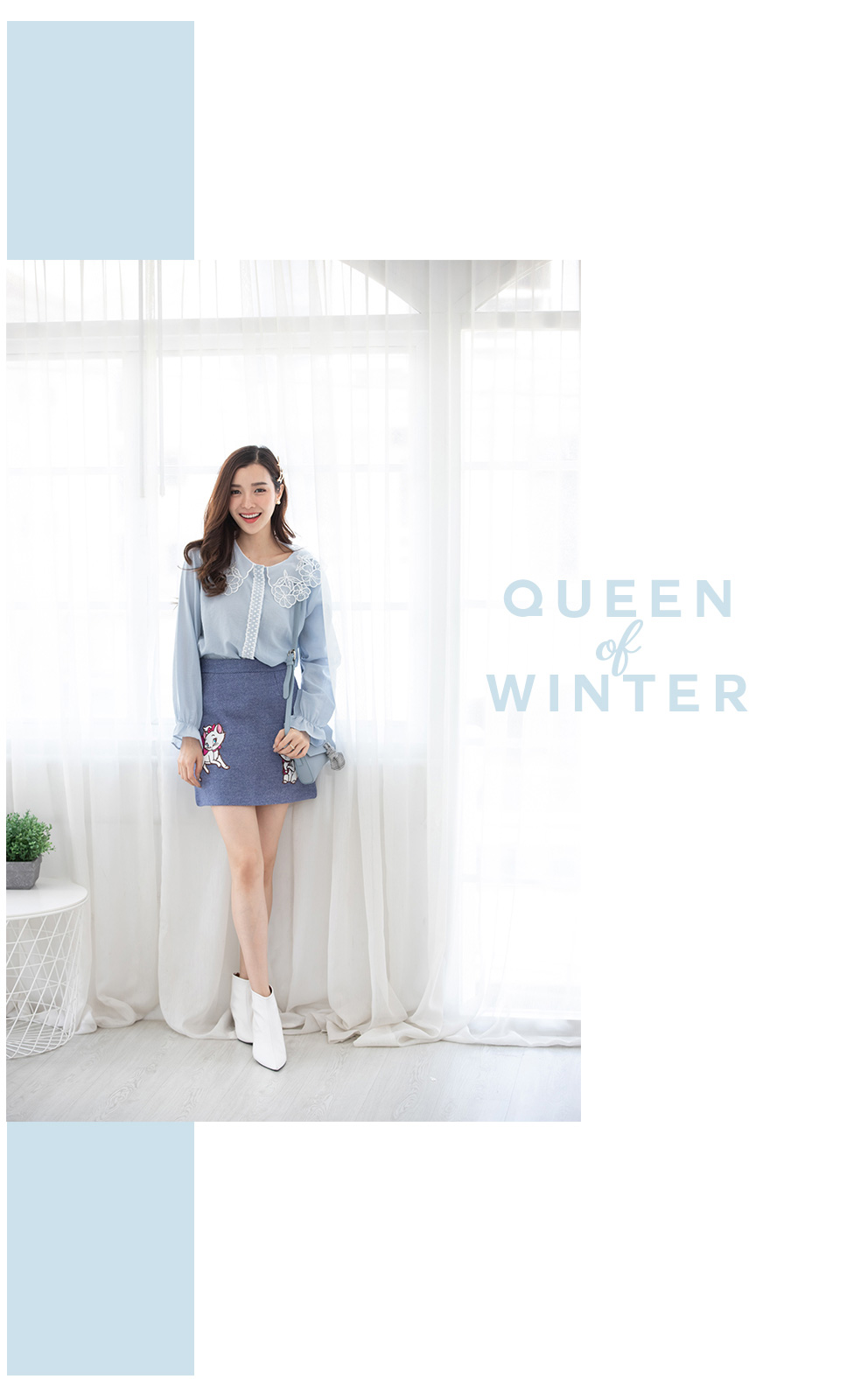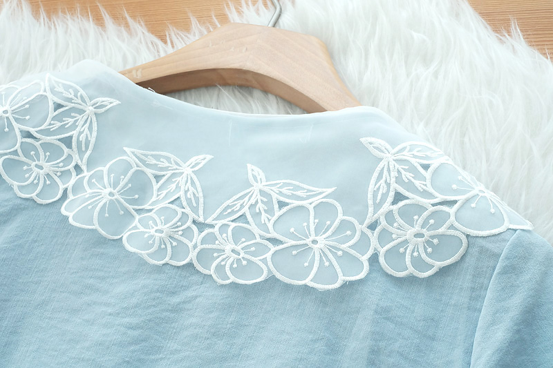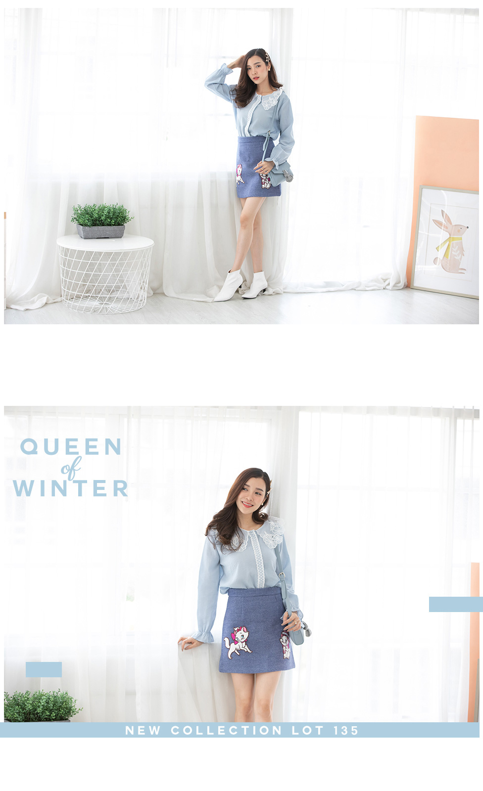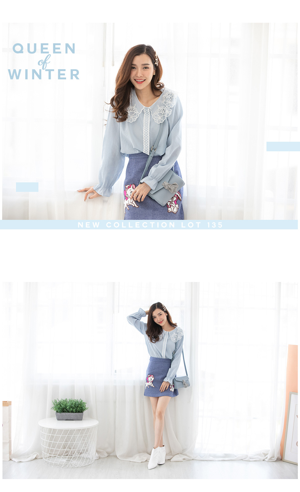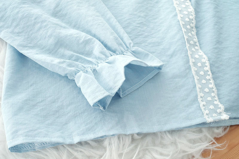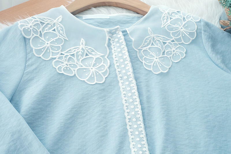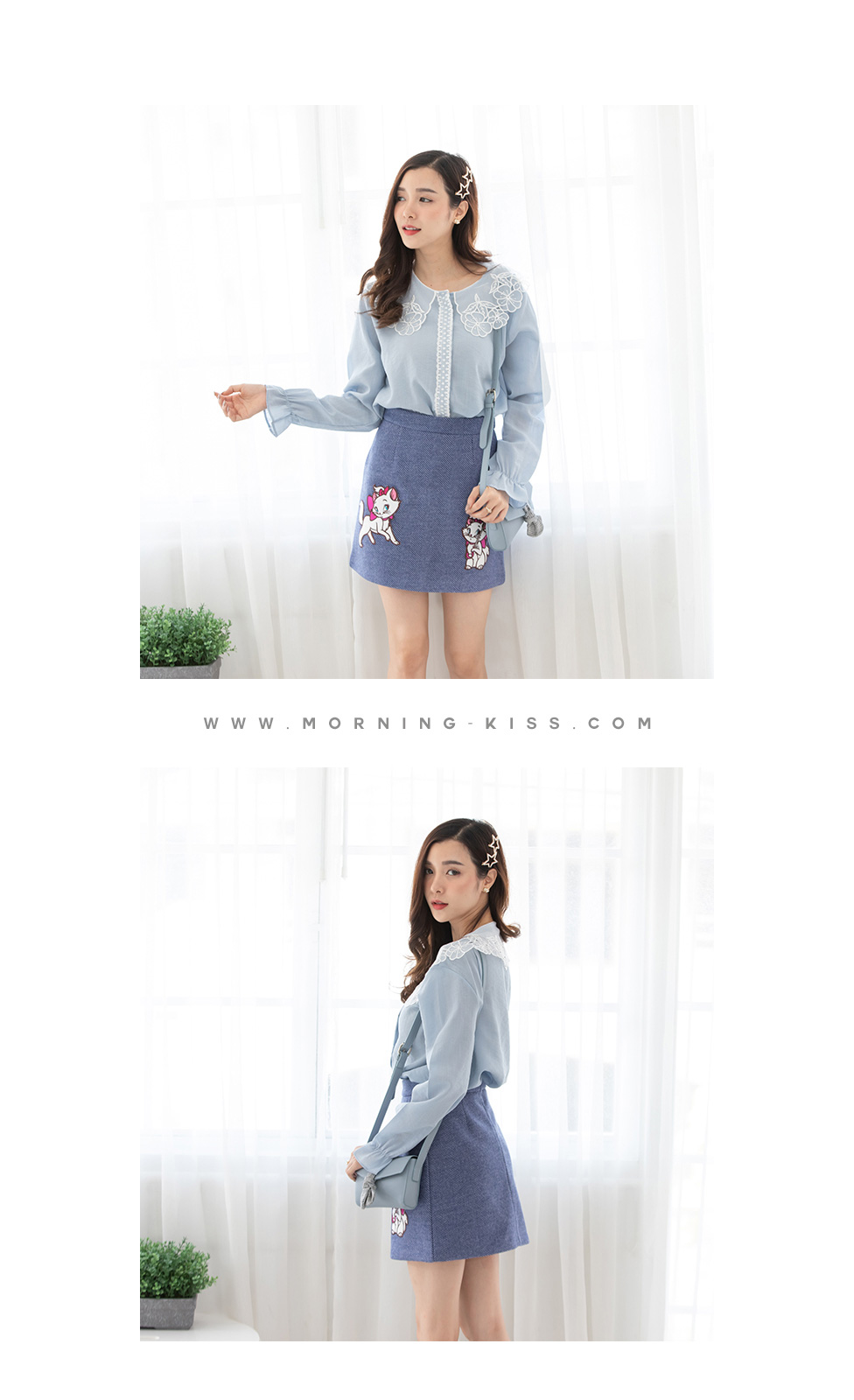มาเอาใจสาวทำงานกับเสื้อแขนยาวโทนสีฟ้าอ่อน แบบสวยหวานเบาๆซอฟๆ แต่งคอปกด้วยผ้าฉลุลายดอกไม้สวยหวานหยด กระดุมเรียงยาวซ้อนหน้า ช่วงสาบกระดุมแต่งผ้าลูกไม้สวยโดดเด่น ปลายแขนระบาย แบบเรียบร้อยใส่ไปทำงานหรือใส่เที่ยวได้ทุกโอกาสเลย