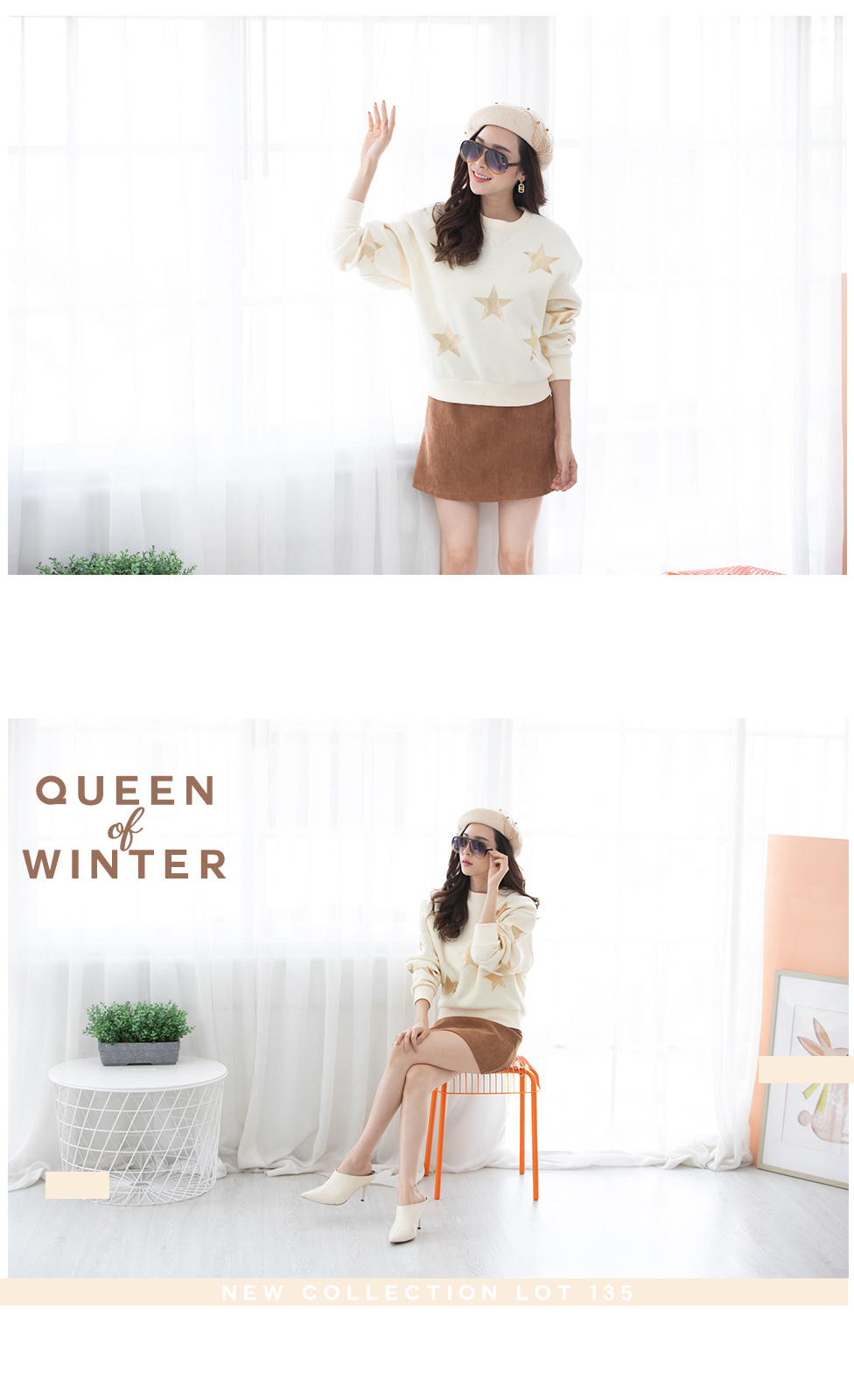 หนาวนี้ขาดไม่ได้กับเสื้อ Jumper อุ่นๆ รุ่นนี้ทางร้านแนะนำเลย ผ้าไม่หนาไม่บางใส่ได้ทั้งเมืองไทยและเมืองนอก สกรีนลายดาวสีทองสวยเด่นรอบตัว แมทกับกระโปรงหรือกางเกงก็น่ารัก
