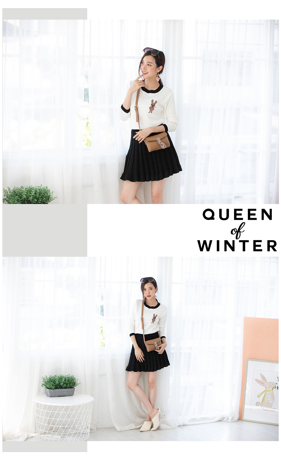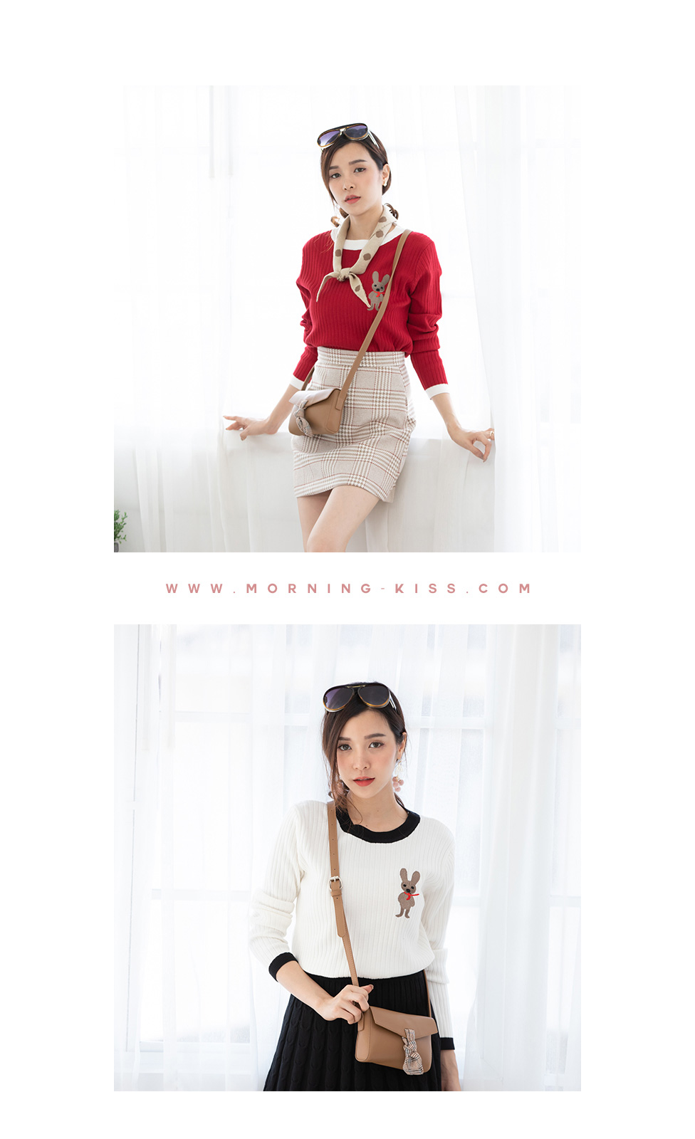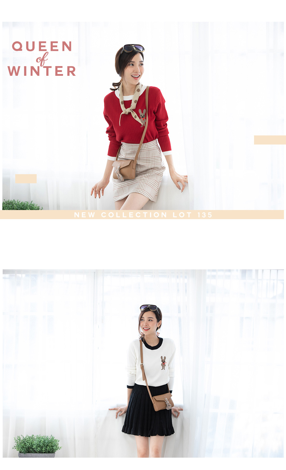 คาวาอี้มากๆกับลุคนี้ เสื้อแขนยาวผ้าล่อนนุ่มนิ่มใส่สบายยืดได้เยอะ แบบเรียบๆ โดดเด่นน่ารักด้วยงานปักรูปกระต่ายช่วงอก แมทกับกระโปรง ลุคน่ารักๆจัดไปไม่ผิดหวัง
