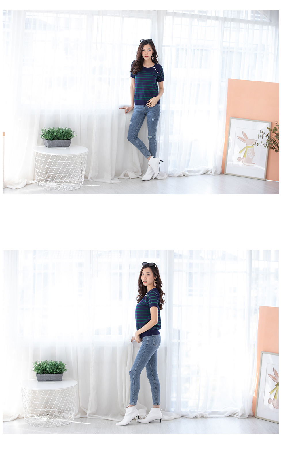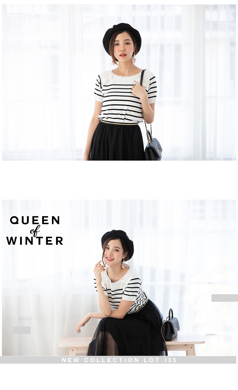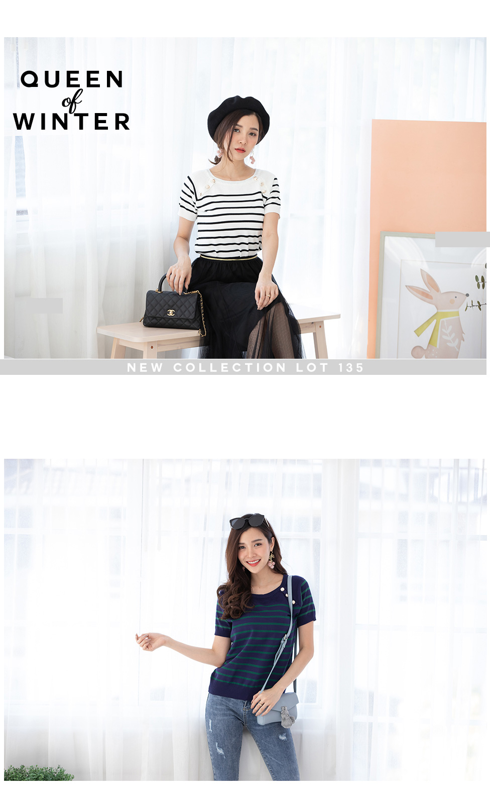 ไอเท็มนี้แนะนำเลย เห็นแล้วปิ๊งทันทีจนต้องจัดมาให้ช็อปกัน เสื้อลายขวางแต่งกระดุมทองช่วงหัวไหล่ ผ้าดีใส่สบายจัดมาให้ 2 โทนสี (กรมท่าริ้วสีเขียว,พื้นขาวริ้วสีดำ) ใส่เที่ยว ใส่ทำงาน แบบไหนก็ชิลเอาท์ได้ทั้งวัน