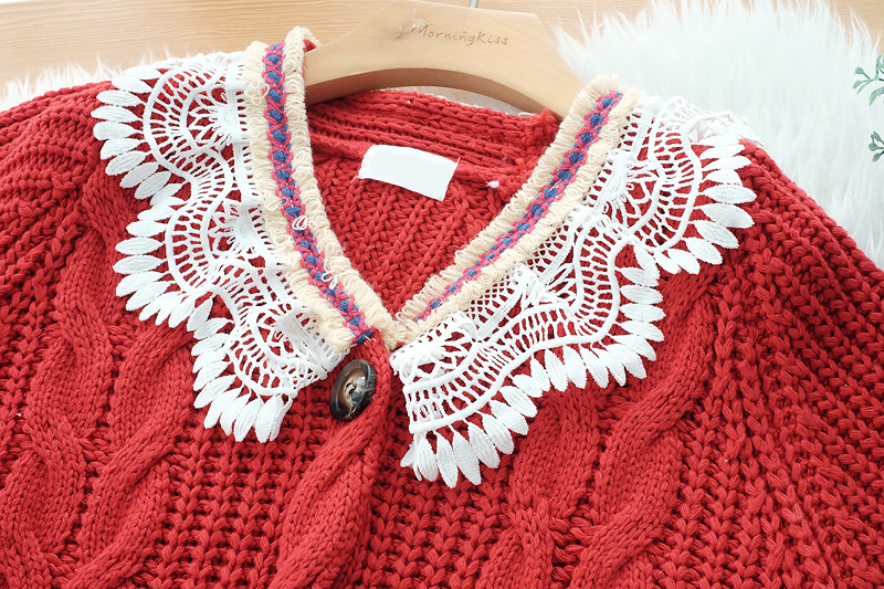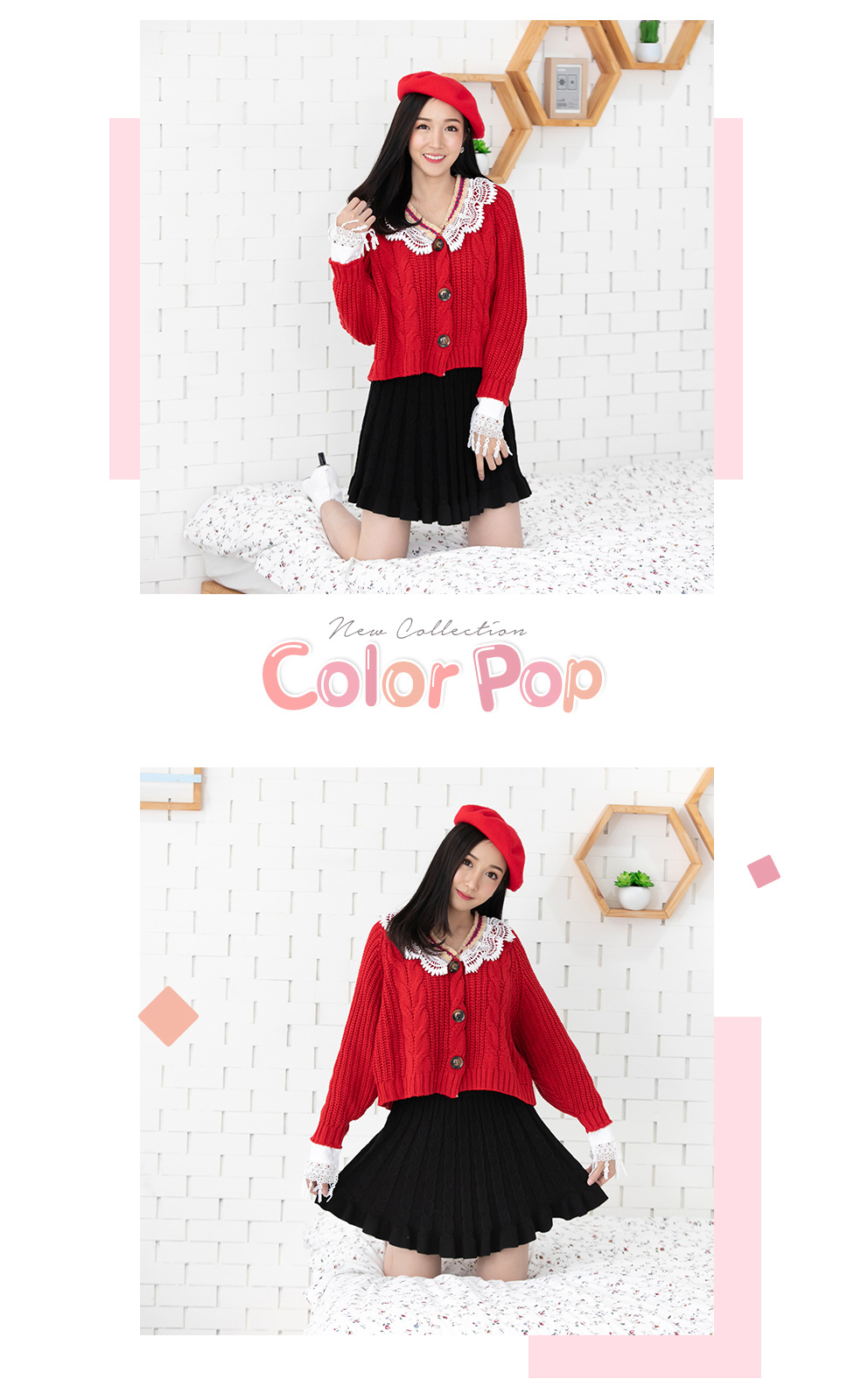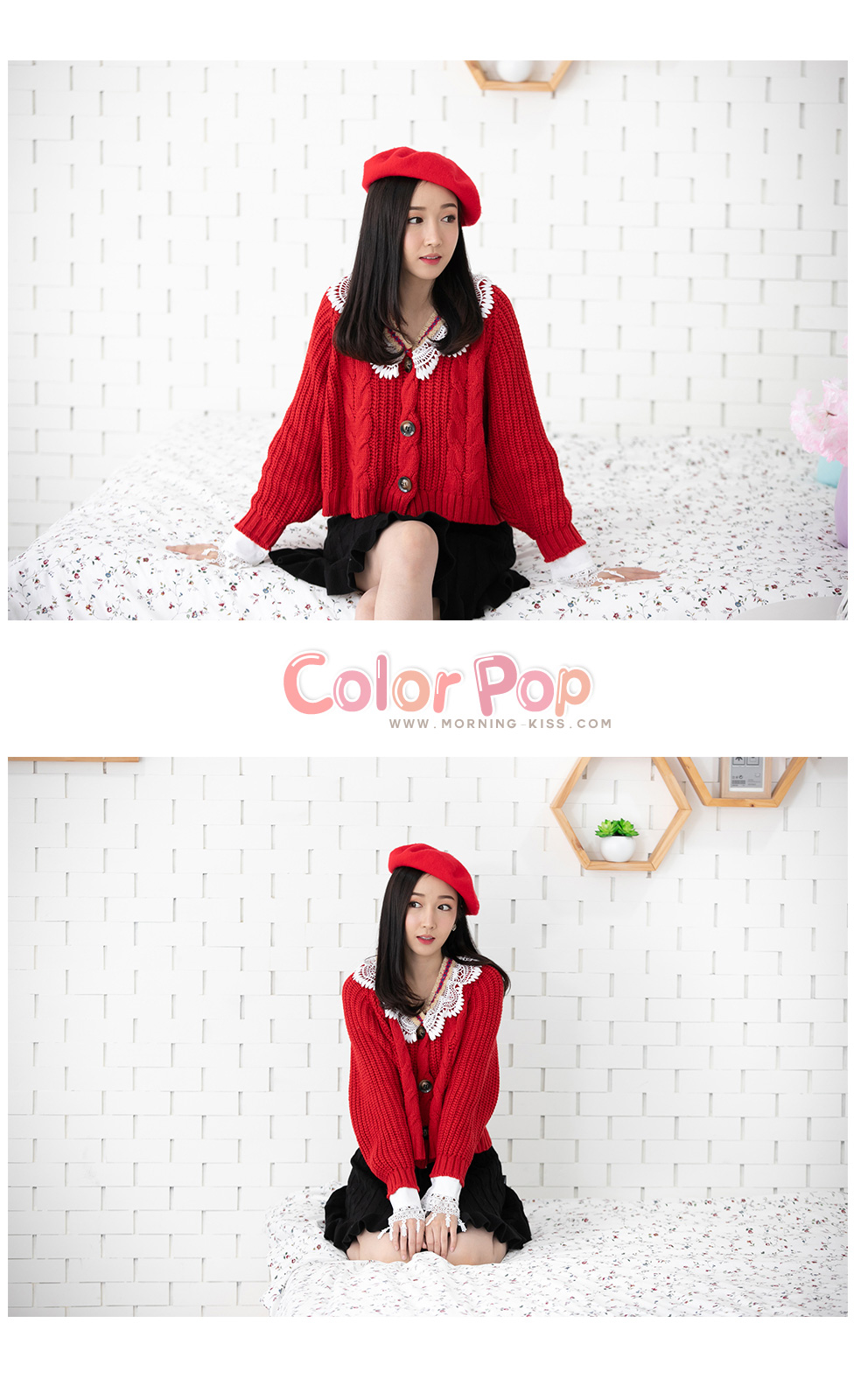 วินเทจนี้ต้องจัดจ้านกันหน่อย กับเสื้อคลุมไหมพรมสีแดงสด งานเกาหลีพรีเมี่ยม เนื้อไหมพรมเส้นใหญ่ทออัดแน่น แต่งลูกไม้สีขาวช่วงคอและปลายแขนสีขาวตัดกับตัวเสื้อได้อย่างลงตัว