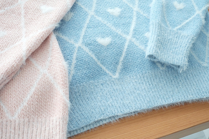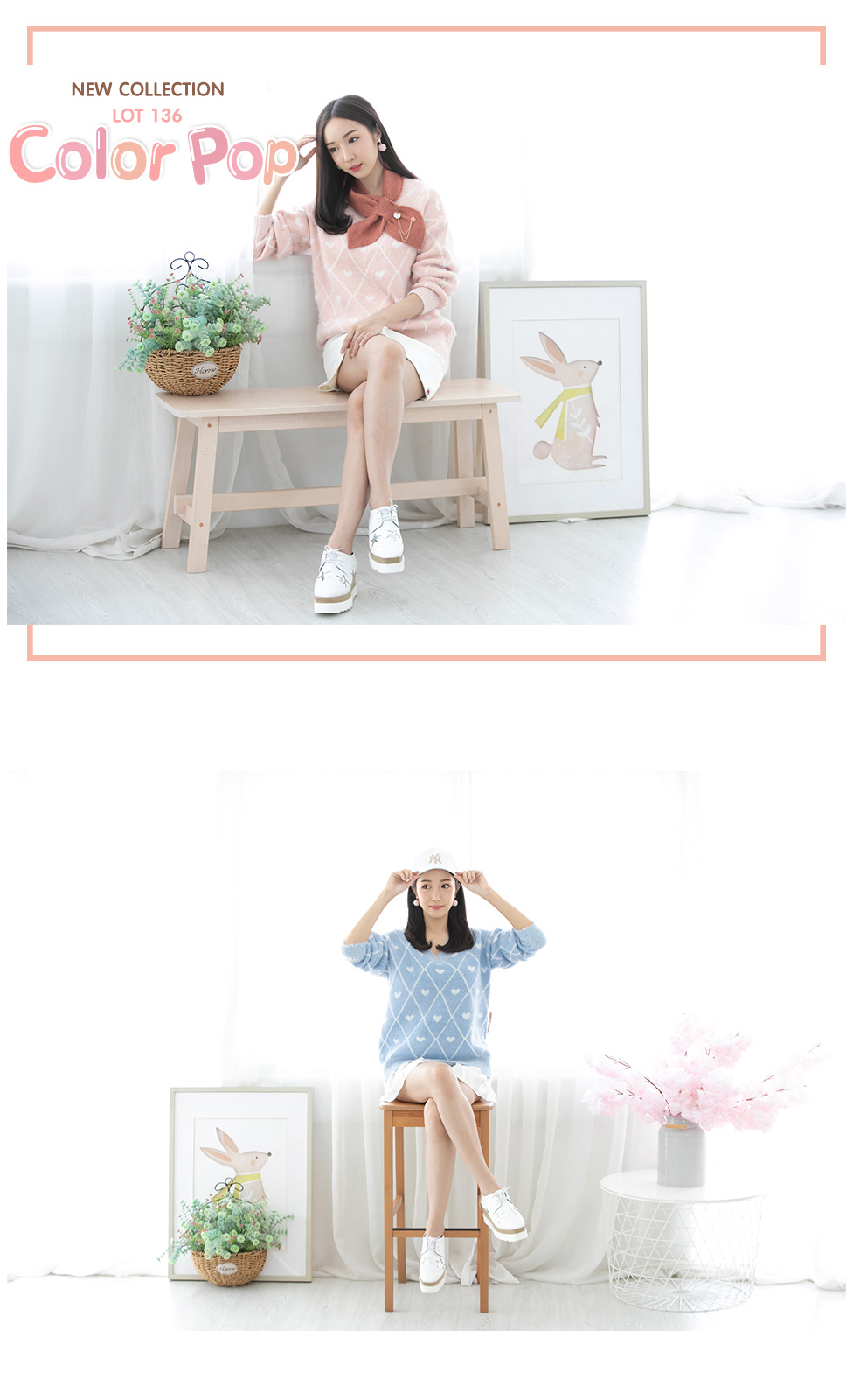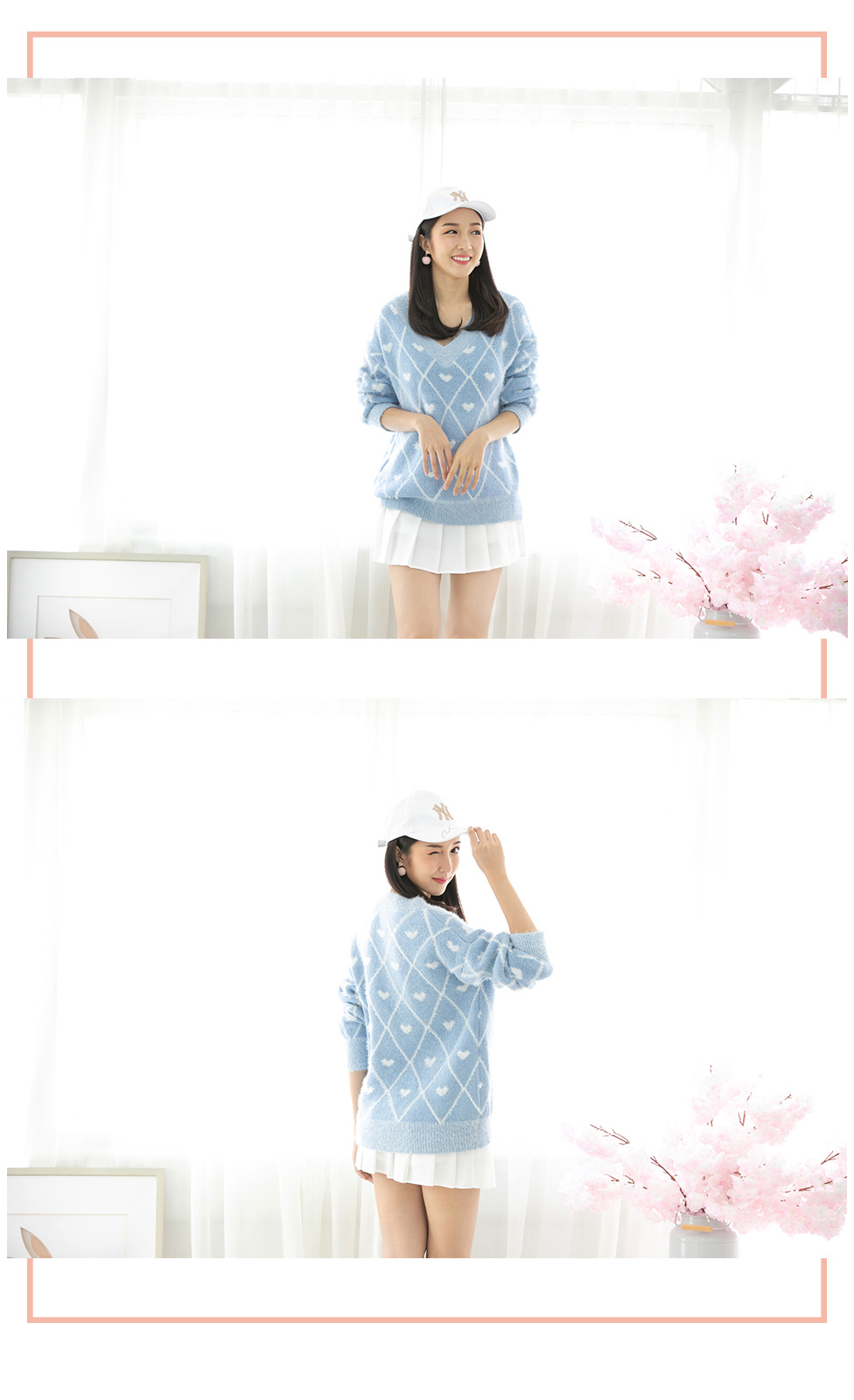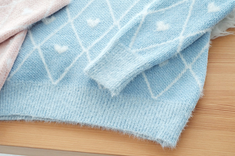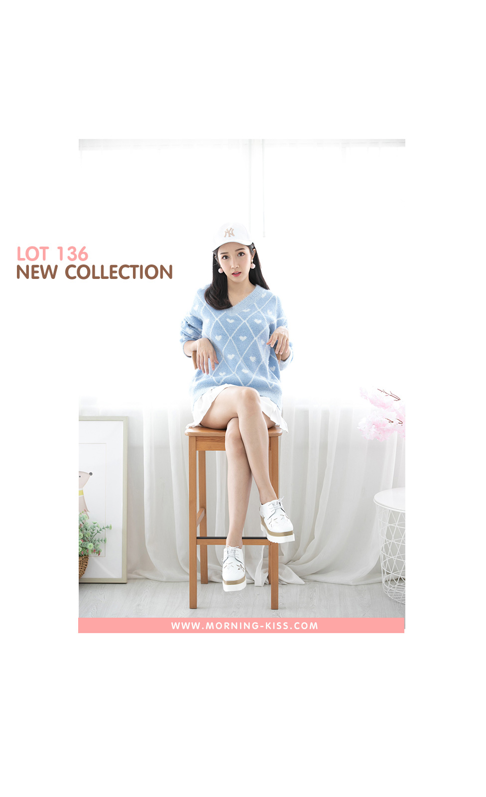 เสื้อไหมพรมผสมขนกระต่ายเนื้อผ้านิ่มมากไม่ระคายผิวเลย สวยๆหวานๆกับลายรูปหัวใจทั่วตัว ลุคสาว girly หวานละมุน ทรงคอวี มีมาให้เลือก 2 สีพลาสเทล (สีโอรส ฟ้า) หนาวนี้จัดไปไม่ผิดหวัง