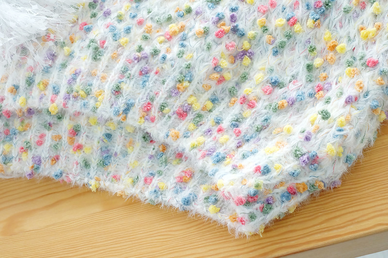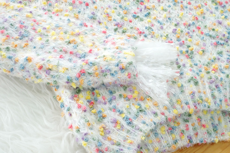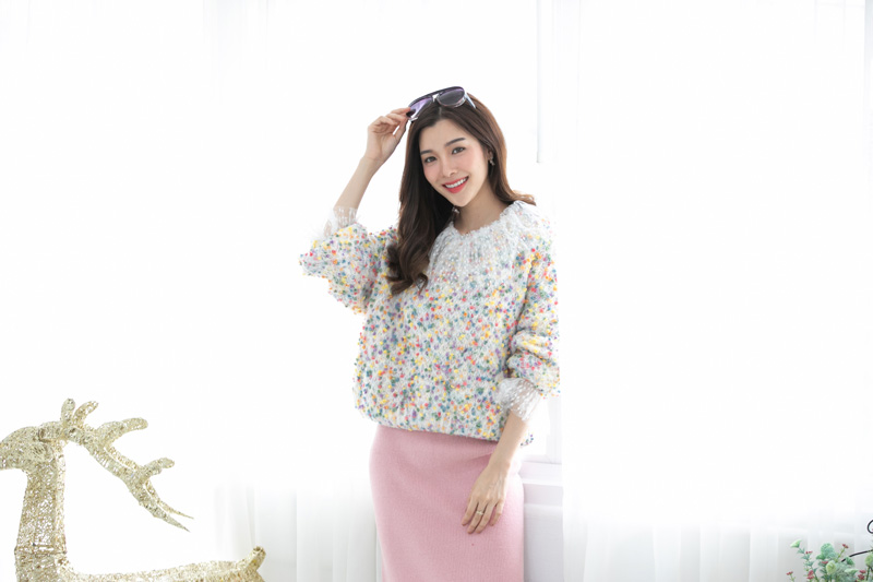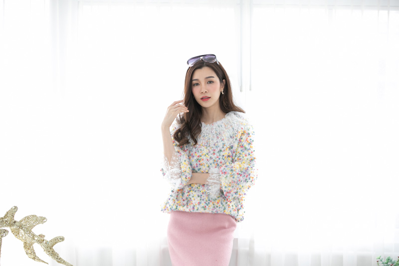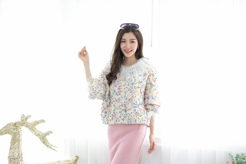 จัดเต็มลุคหวานๆ กับเสื้อไหมพรมกำมะหยี่ทอไหมปอมปอมสลับสีสันคัลเลอร์ฟูเหมือนดอกไม้ผลิบาน เนื้อไหมนิ่มสัมผัสฟินเบาสบายไม่ระคายผิว ขอบคอและปลายแขนแต่งผ้าตาข่ายลูกไม้สีขาวแบบสวยหวานเกินห้ามใจ ไอเทมนี้สวยหวานจับใจใครเห็นป็นต้องหลงรัก แนะนำสาวๆเลย