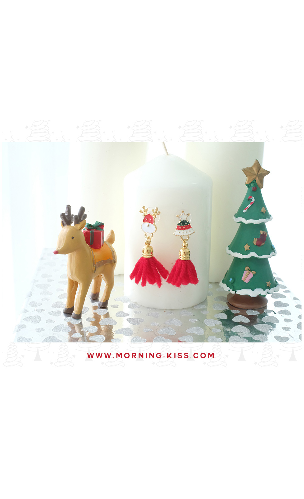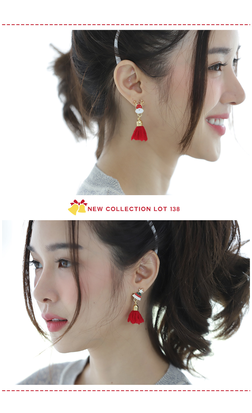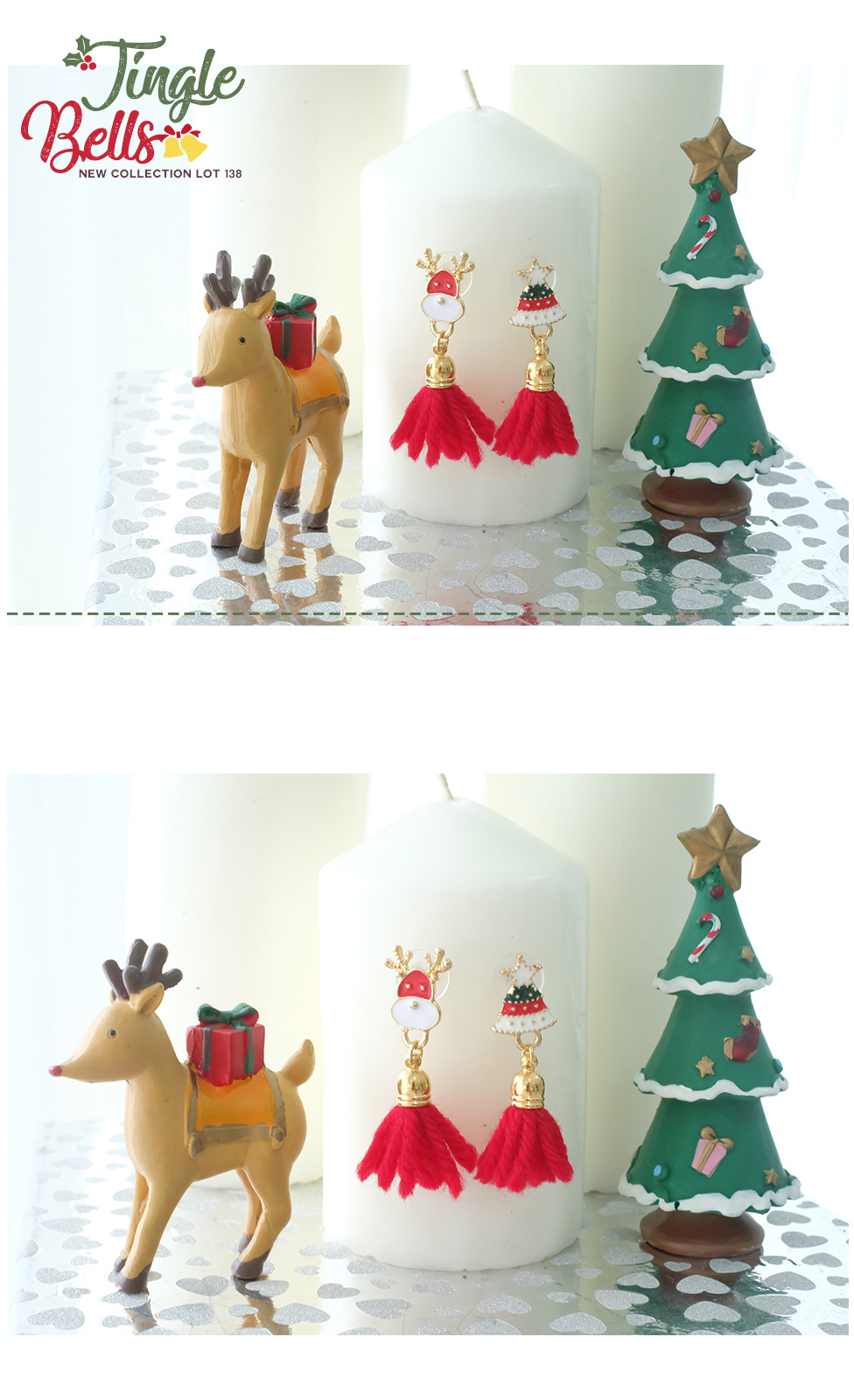 ใกล้คริสมาสแล้ว มีต่างหูเอาตรีมมาฝาก แบบน่ารักมากๆมาเป็นคู่ดูโอ้ลายกวางน้อยเรนเดียร์กับต้นไม้คริสต์มาสน่ารัก แต่งพู่ห้อยสีแดงมุ้งมิ้ง งานลงยาอย่างดี น้ำหนักเบา ตำไปใส่ตอนรับคริสต์มาสกันได้เลย