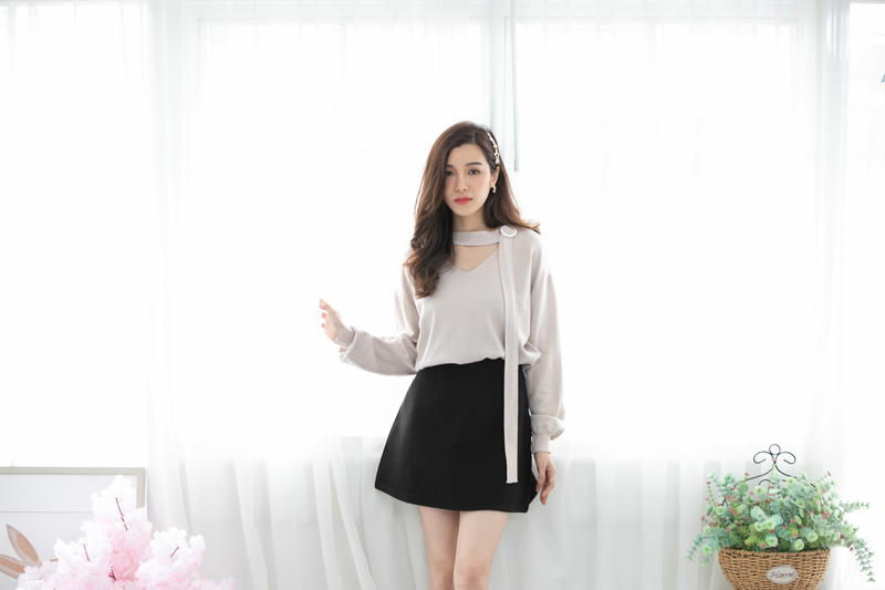 เรียบหรู โคเรียสไตส์กับเสื้อแขนยาวผ้า Knitting เนื้อนิ่มใส่สบายตัวมากๆ ทรงปล่อยๆไม่รัดรูป ดีเทลเกร๋ด้วยช่วงคอทำเป็นสายโชคเกอร์ยาว ปรับระดับได้ ใส่แล้วไม่รัดช่วงคอค่ะ ไอเท็มนี้แนะนำสาวๆเลย ใส่ได้ทุกฤดูกาล เนื้อผ้าโล่งสบายไม่ร้อนจ้า