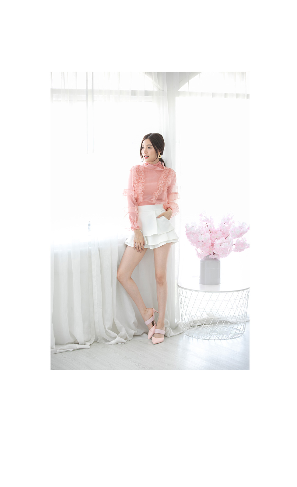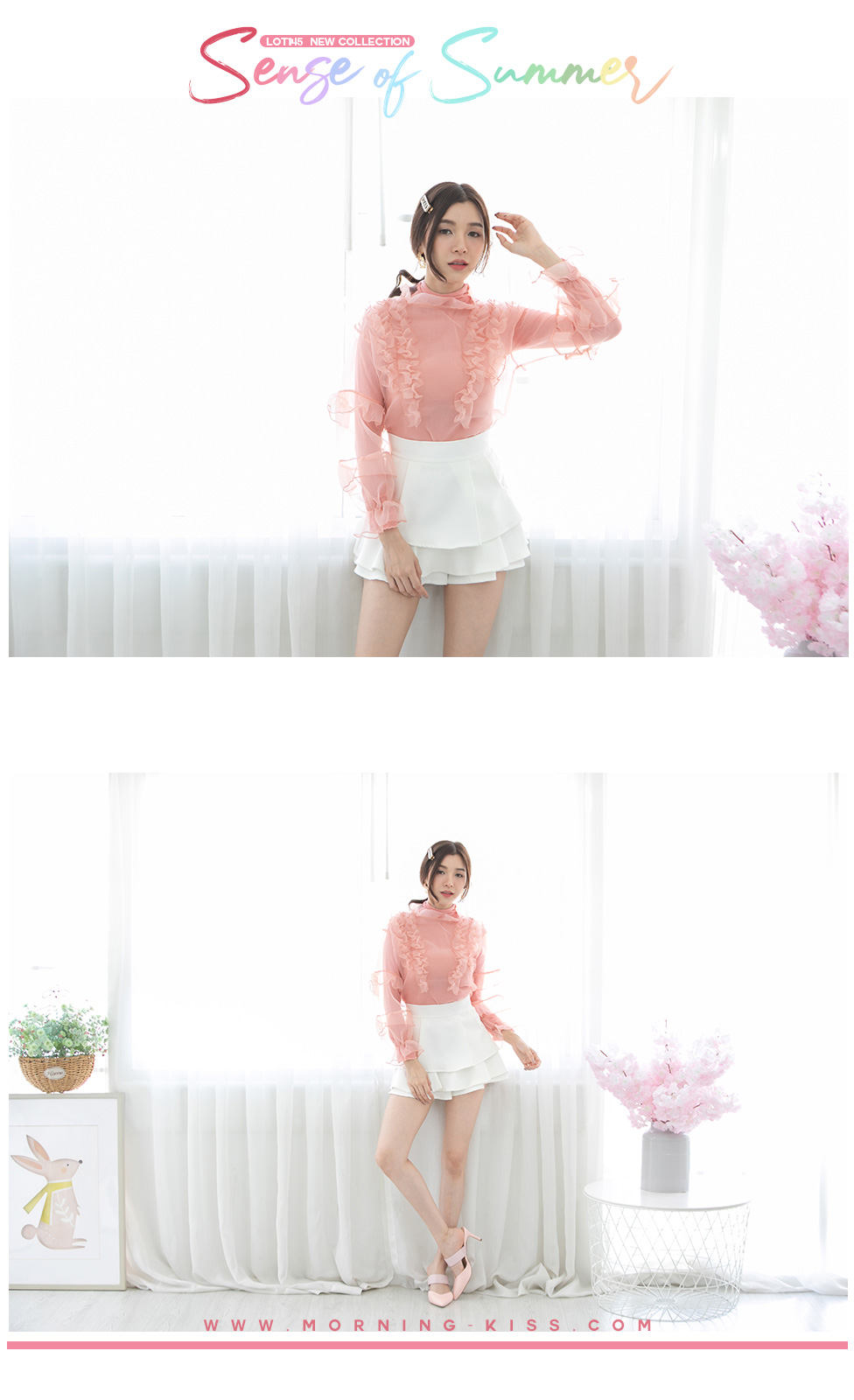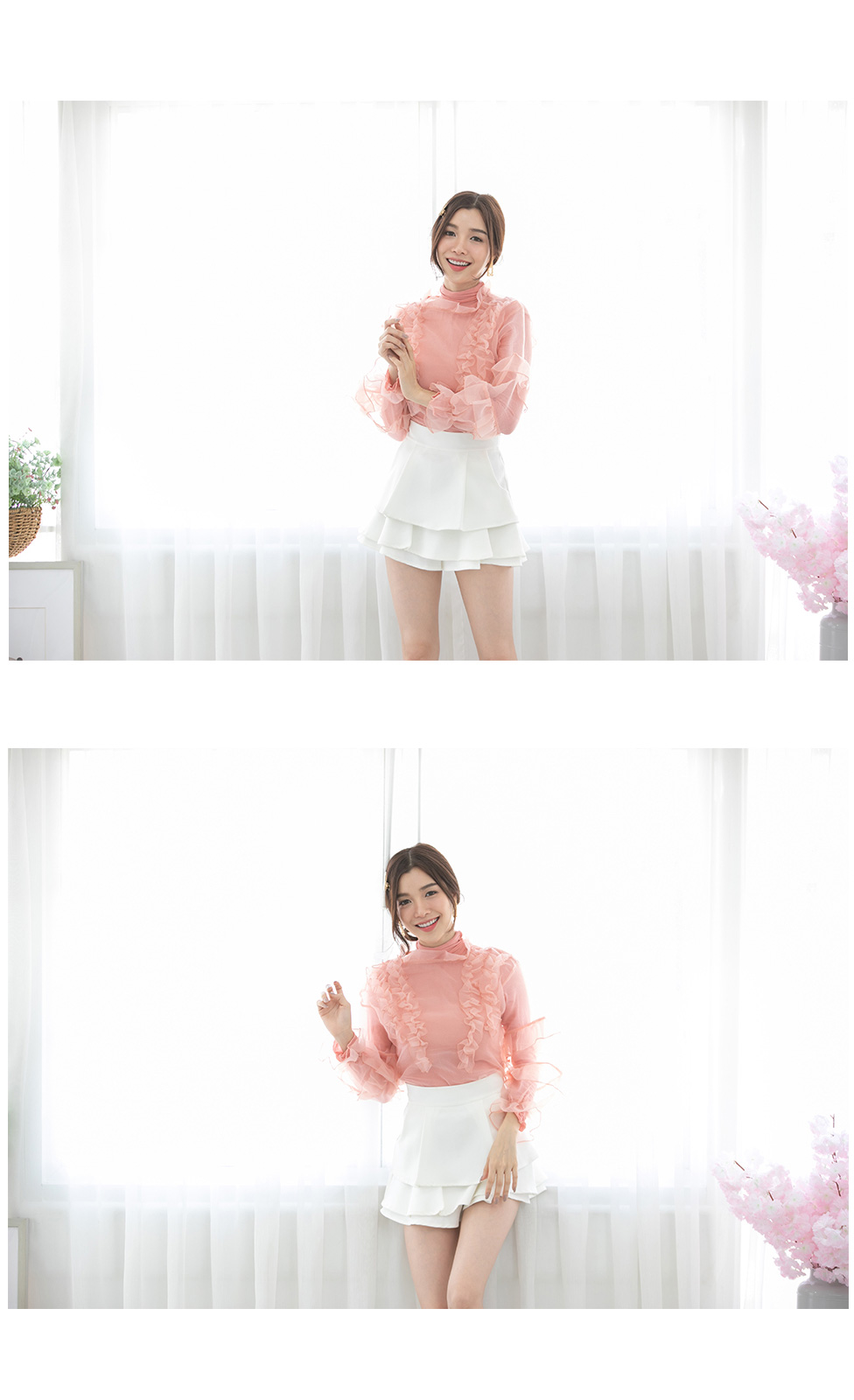 ลุคหวานสุดๆ เซ็ทนี้ละลายไปเลยค่า ฟรุ้งฟริ้งระดับ 10 เซ็ทคุ้มๆ(เสื้อตัวในคอเต่าแขนยาว + เสื้อแขนยาวซีทรู) เสื้อตัวในสีพีชแขนยาวเนื้อผ้ายืดได้เยอะเป็นแบบรัดรูป เสื้อตัวนอกผ้าโปร่งทำระบายๆเล็กๆด้านหน้าและช่วงแขน สวยหวานฟรุ้งฟริ้ง ลุคคุณหนูสุดๆ ห้ามพลาด