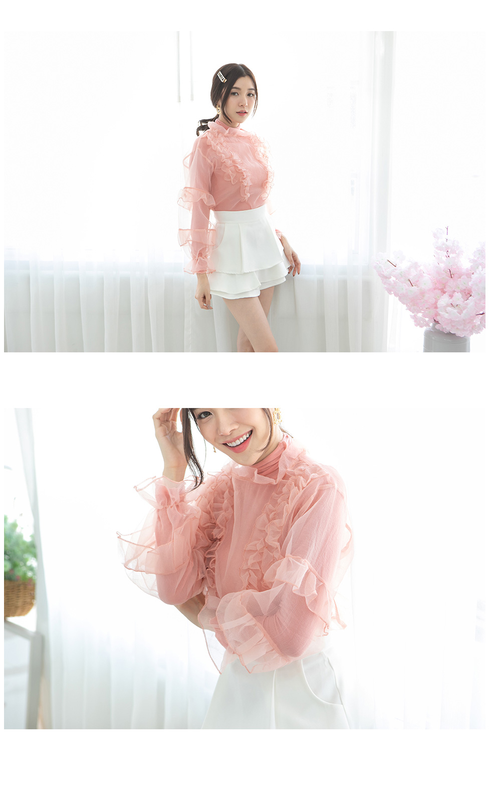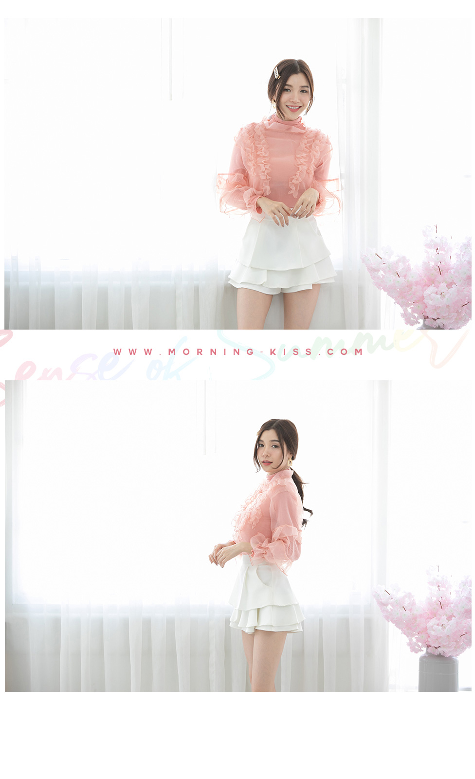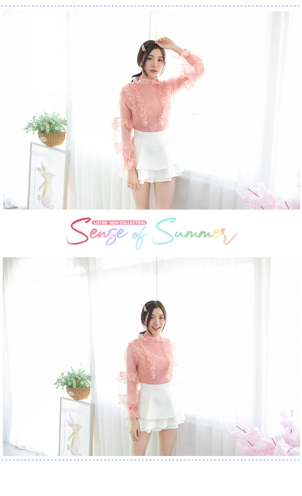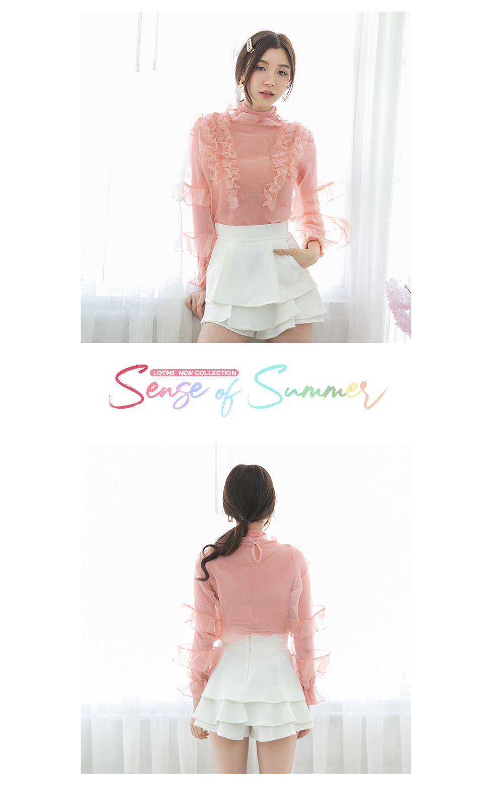 ลุคหวานสุดๆ เซ็ทนี้ละลายไปเลยค่า ฟรุ้งฟริ้งระดับ 10 เซ็ทคุ้มๆ(เสื้อตัวในคอเต่าแขนยาว + เสื้อแขนยาวซีทรู) เสื้อตัวในสีพีชแขนยาวเนื้อผ้ายืดได้เยอะเป็นแบบรัดรูป เสื้อตัวนอกผ้าโปร่งทำระบายๆเล็กๆด้านหน้าและช่วงแขน สวยหวานฟรุ้งฟริ้ง ลุคคุณหนูสุดๆ ห้ามพลาด