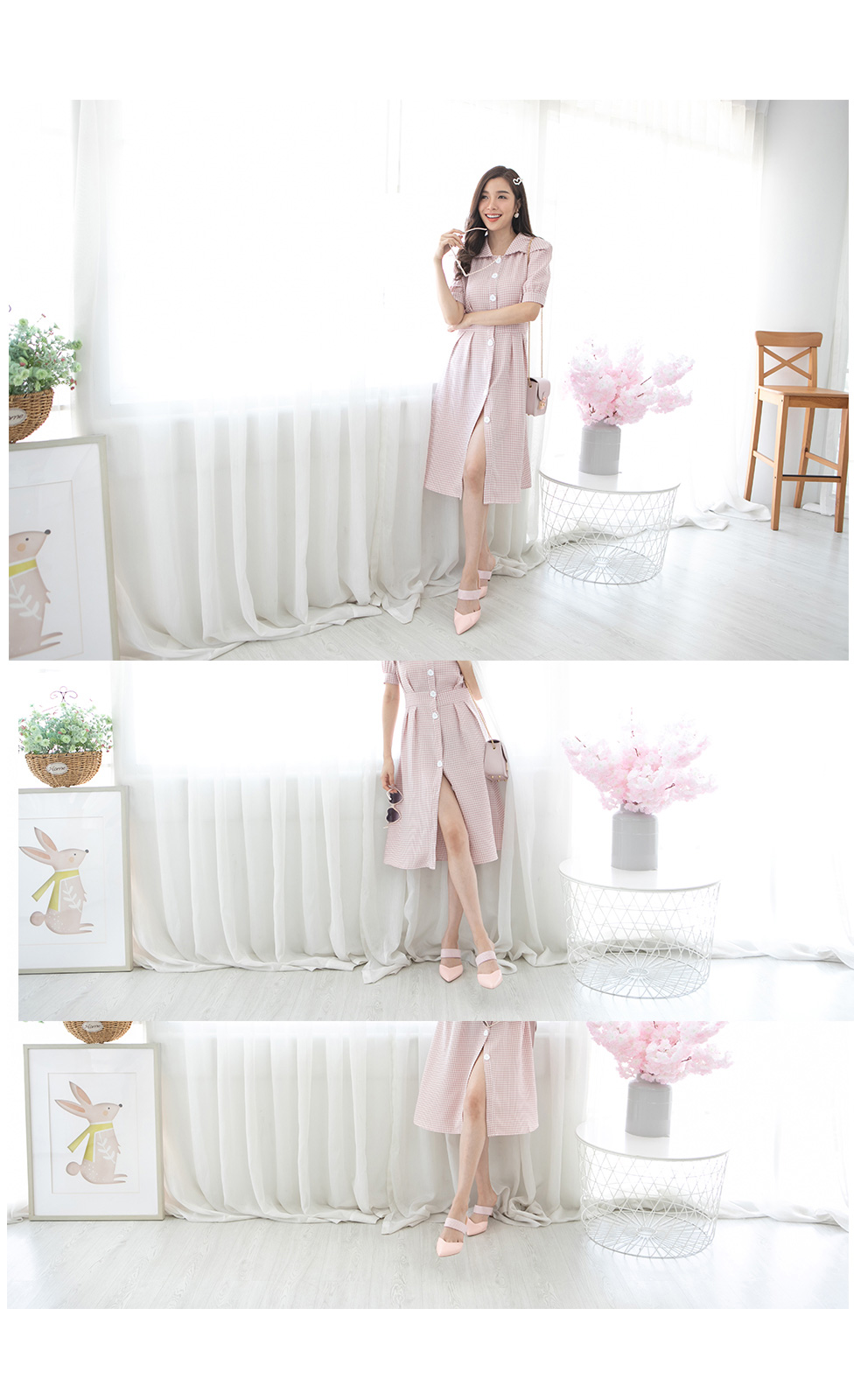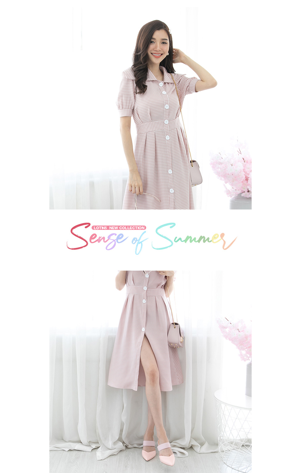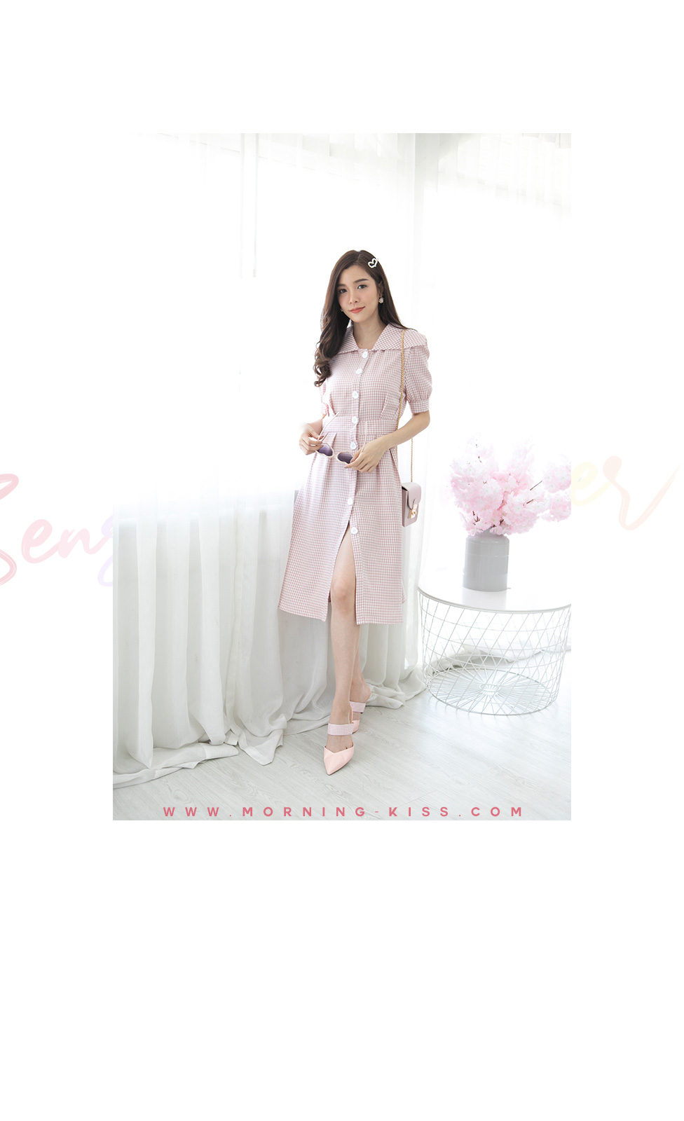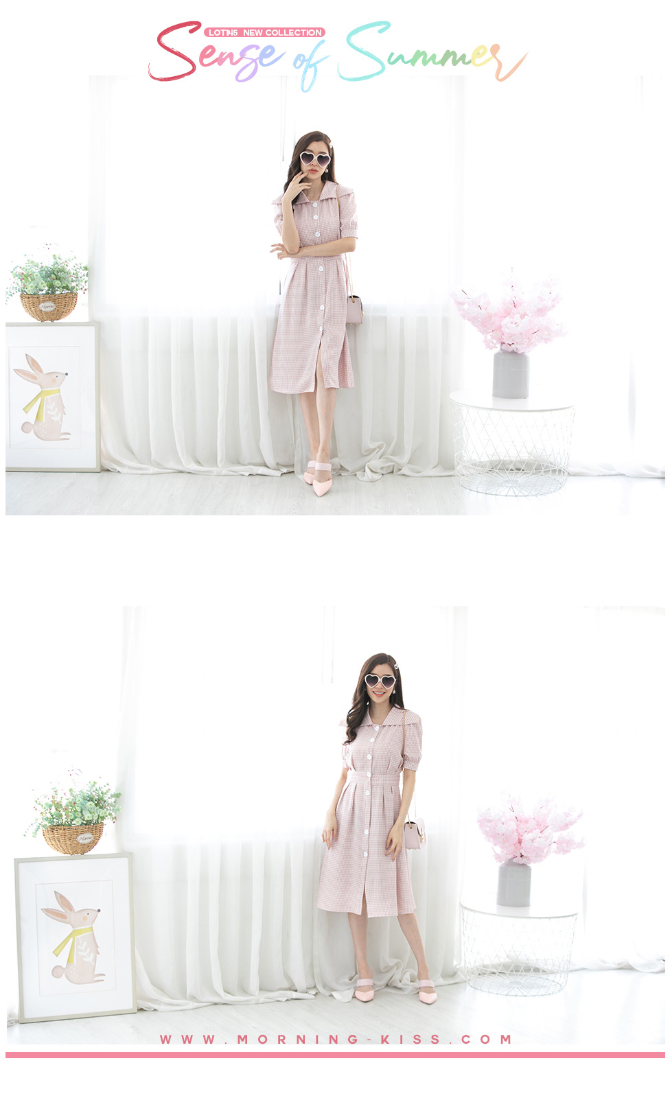 ลุคสาวคาวาอี้ น่ารักสุดๆ กับเดรสแขนสั้นลายตารางโทนสีชมพู ไอเท็มนี้งานเกาหลี คัดติ็งสวยเป๋ะเว่อร์ แต่งกระดุมใหญ่สีขาวเรียงหน้า ชวงเอวจับจีบเล็กน้อย แอบหวานเบาๆที่ด้านหลังแต่งโบว์ใหญ่ ใส่เที่ยวใส่ทำงาน ชุดเดียวเอาอยู่ จัดไปไม่ผิดหวังแน่นอน สวยเกินราคาคุ้มมากค่า