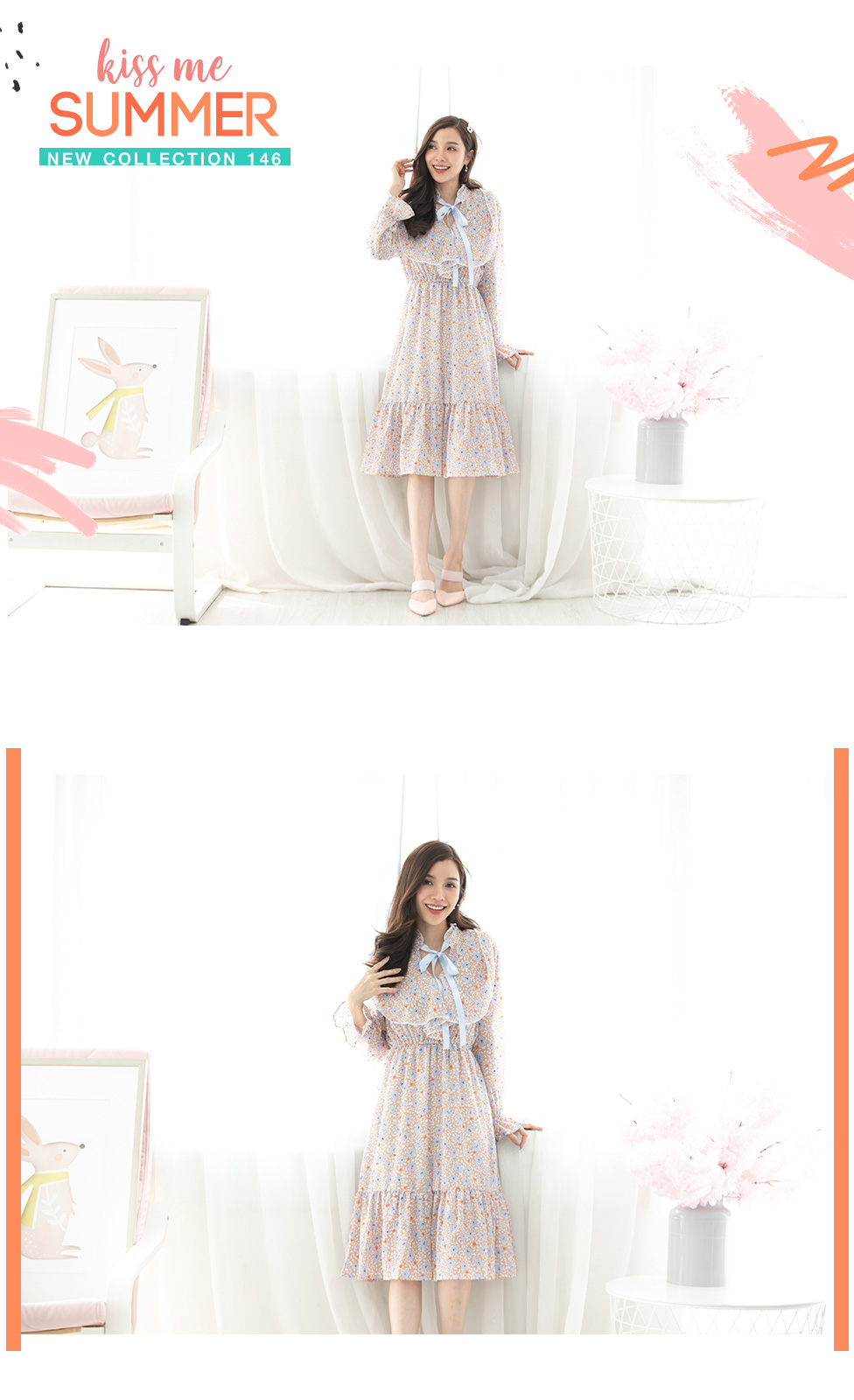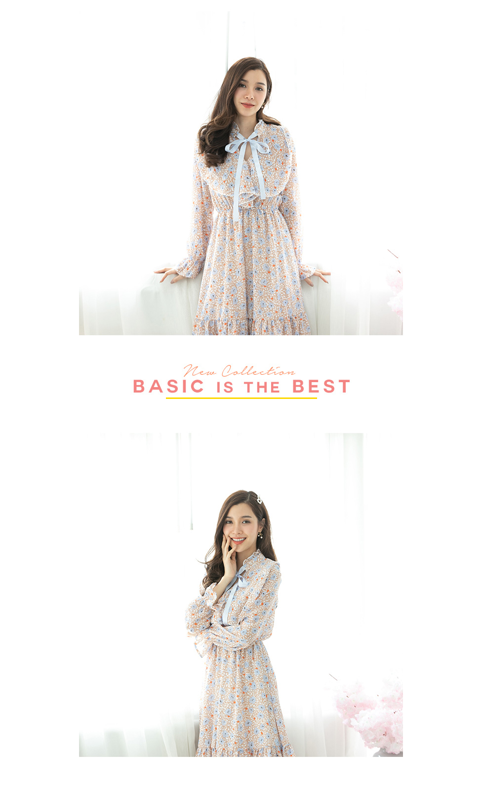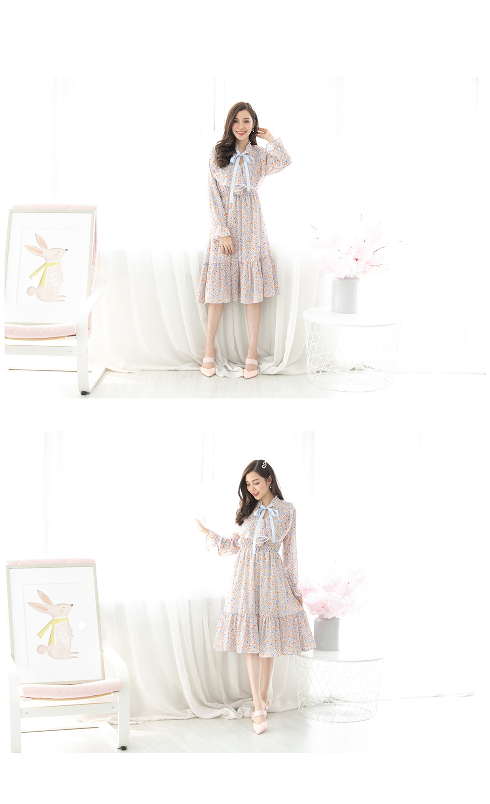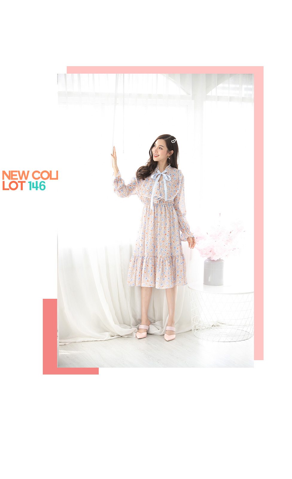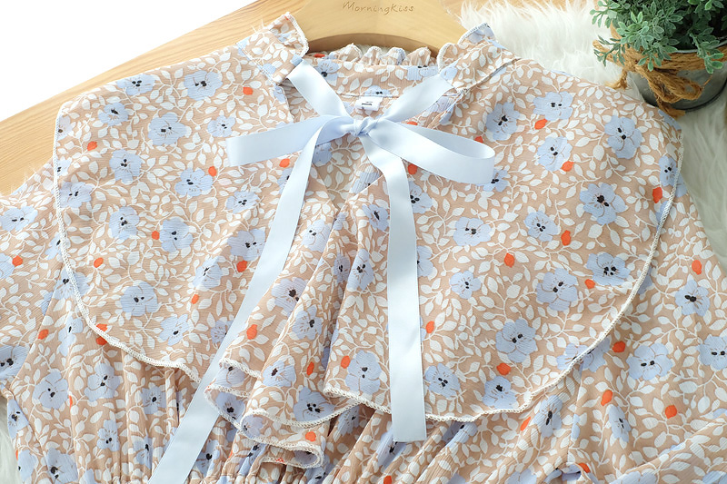 สวยหวานในแบบสาววินเทจกับงานเดรสผ้าลายปริ้นลายดอกไม้ ช่วงคอแต่งระบายสวยซอฟๆ มีเชือกผูกเป็นโบว์น่ารักๆ ช่วงกระโปรงมีซับในไม่ต้องกลัวบาง ชายระบาย กระโปรงพริ้วๆ ใส่ทำงานก็สวย ใส่เที่ยวก็สวยเริ่ด