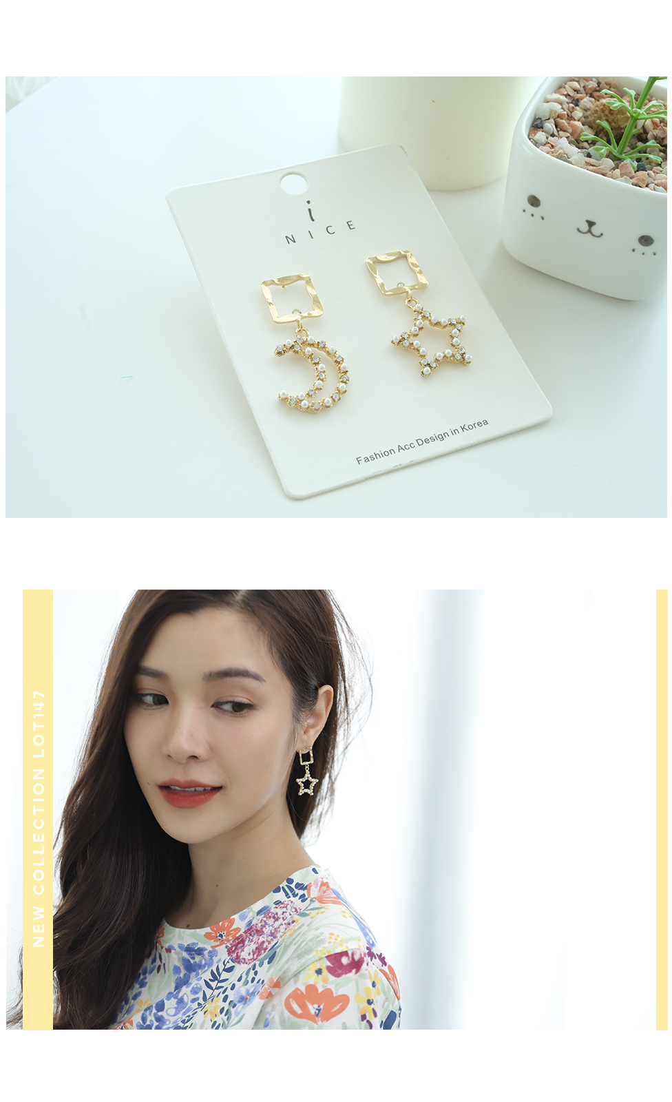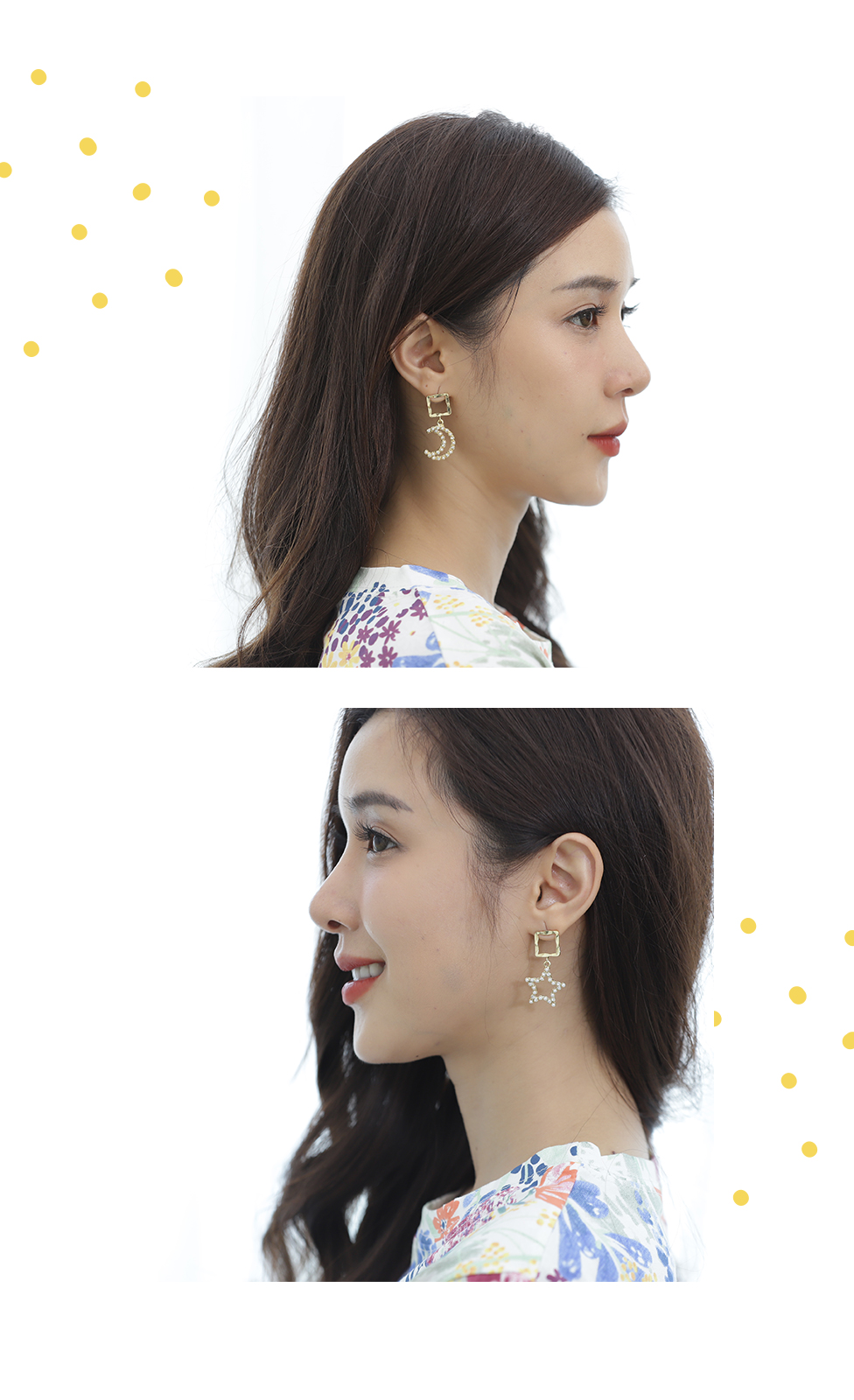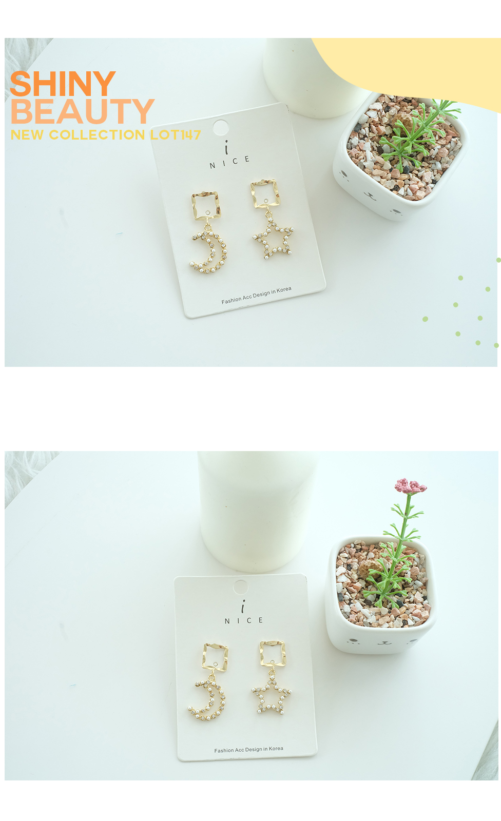 ต่างหูแบบห้อยรูปดาว + จันทร์เสี้ยว แบบเรียบสวย เป็นสินค้าเกรดพรีเมี่ยม ใส่แล้วไม่ลอกไม่ดำนะคะ ใส่แมทกับเสื้อผ้าได้ง่ายด้วยนะจ๊ะ