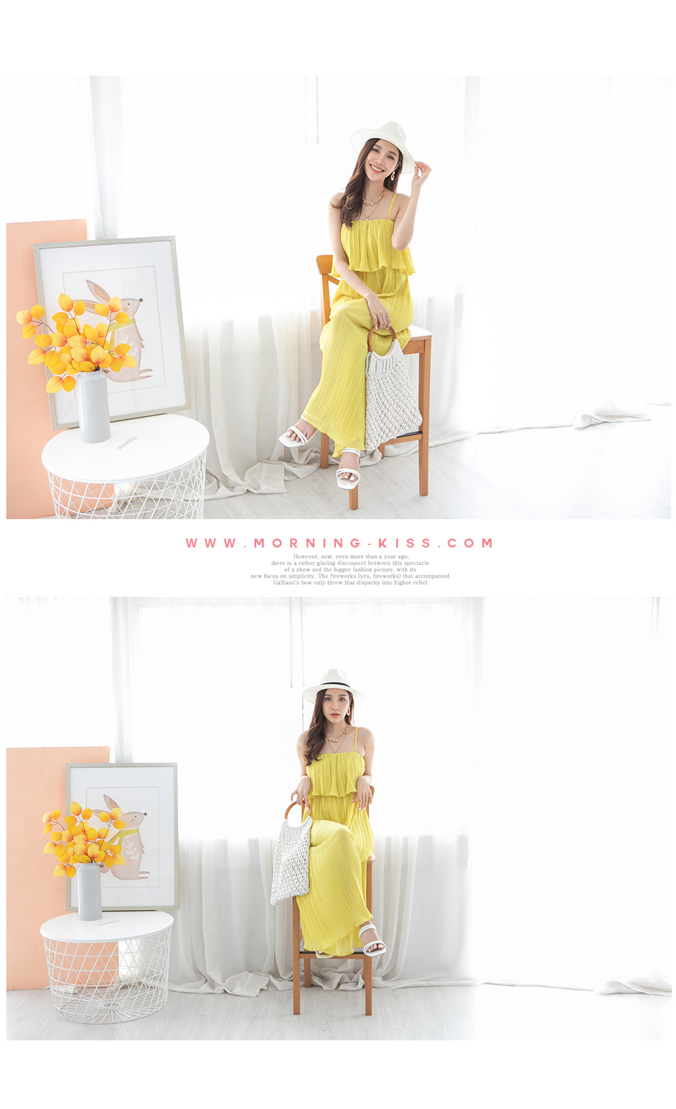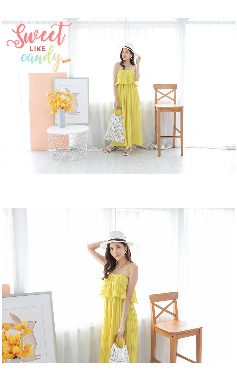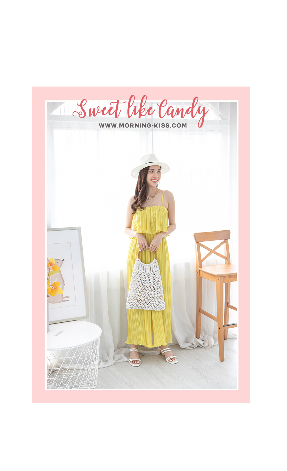 จี๊ดจาดเปรี้ยวแซ่บกับชุดจั๋มสูทขายาวสายเดี่ยว งานผ้าอัดพลีท โทนสีเหลือง ช่วงสายปรับระดับได้ แบบชนช้อป zara เลย งานสวย เนื้อผ้าดีอัดพลีทแน่น เอวยางยืด มีซับในเป็นกางเกงขาสั้น แบบหวานปนเซ็กซี่ พลาดไม่ได้นะค่ะ