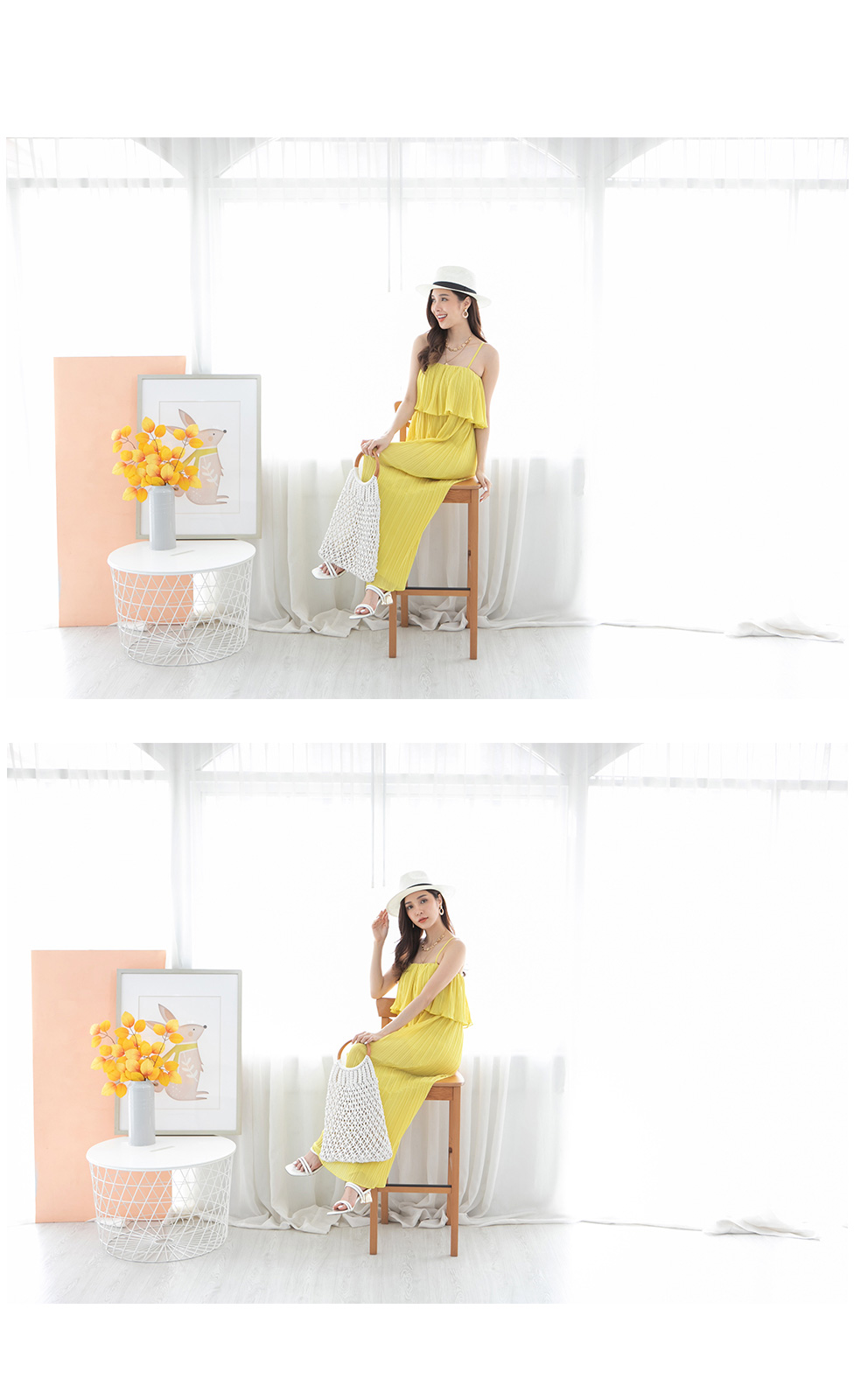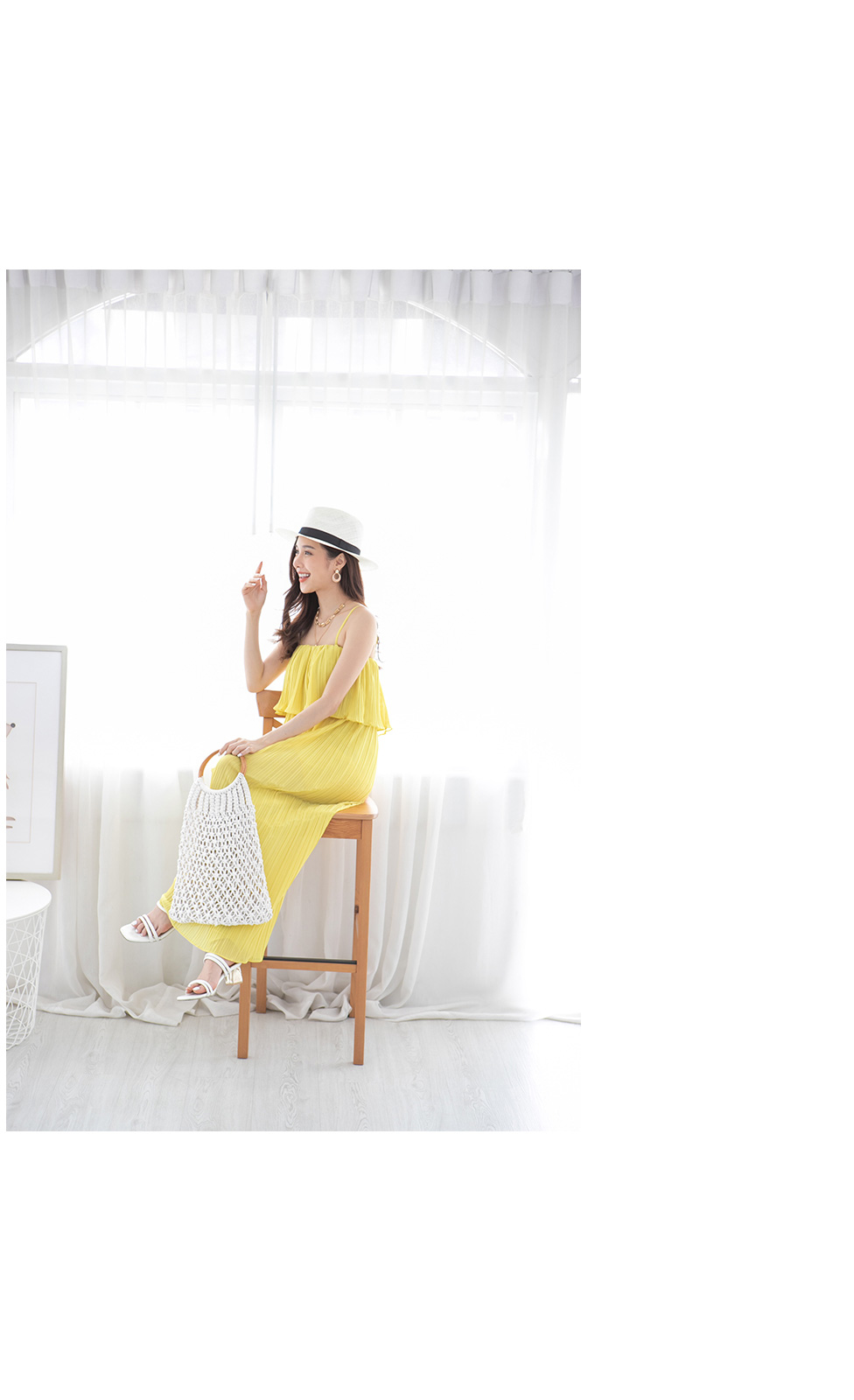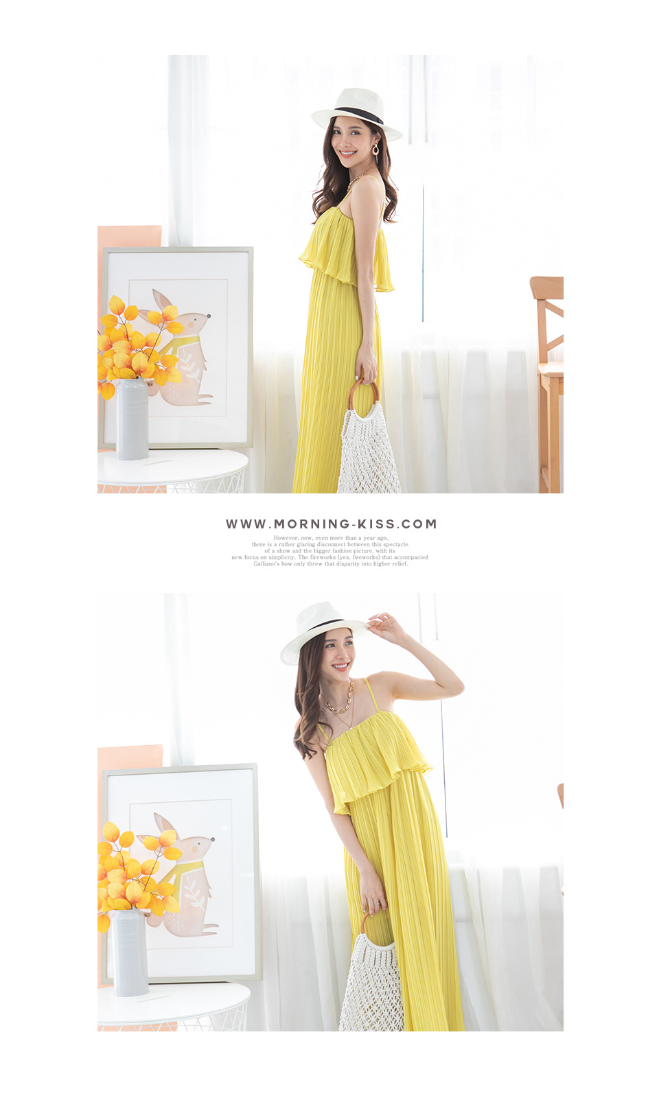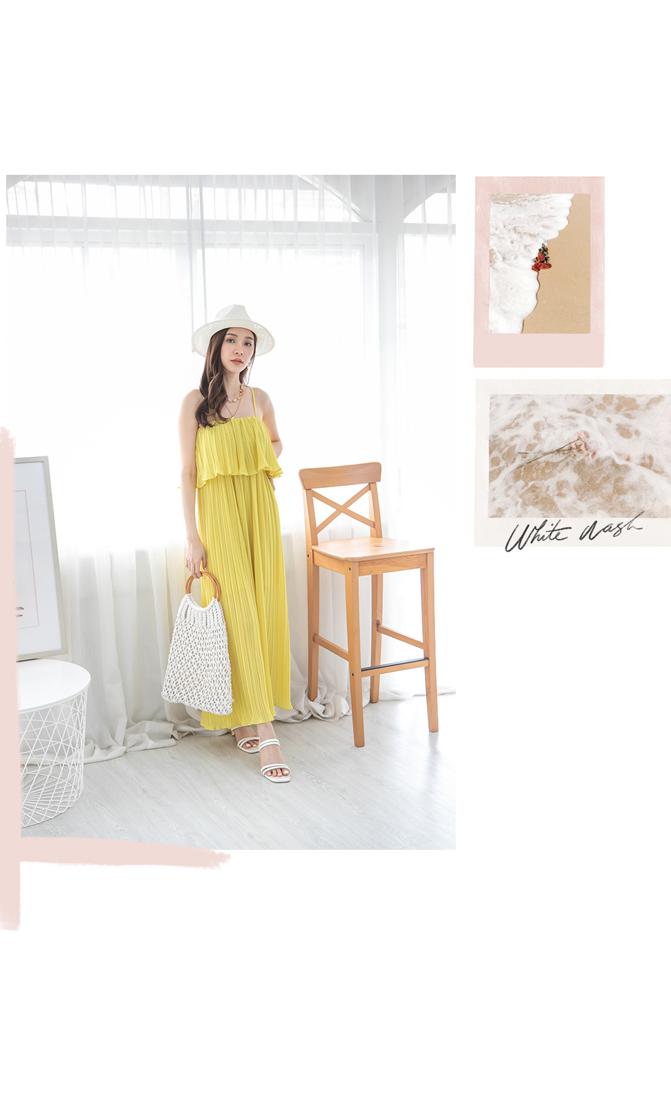 จี๊ดจาดเปรี้ยวแซ่บกับชุดจั๋มสูทขายาวสายเดี่ยว งานผ้าอัดพลีท โทนสีเหลือง ช่วงสายปรับระดับได้ แบบชนช้อป zara เลย งานสวย เนื้อผ้าดีอัดพลีทแน่น เอวยางยืด มีซับในเป็นกางเกงขาสั้น แบบหวานปนเซ็กซี่ พลาดไม่ได้นะค่ะ
