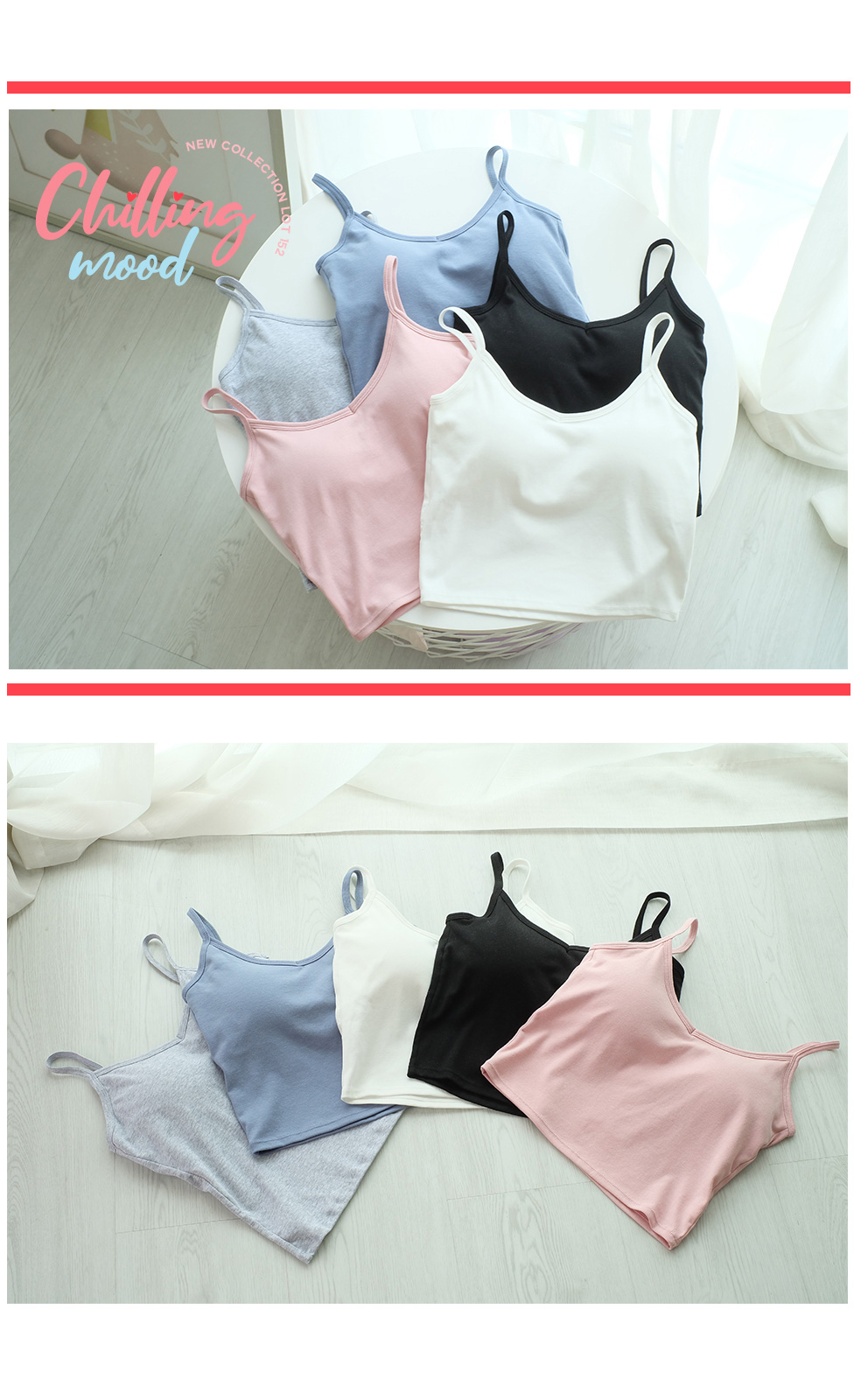 Must Have Item ซับในสายเดี่ยวแบบเรียบๆ เนื้อผ้ายืดหยุ่นได้ดีใส่สบายมากๆ เก็บทรงอกสวยกระชับมีฟองน้ำด้านใน ถอดซักได้ จะใส่แบบเป็นซับใน เล่นโยคะหรือออกกำลังกายฟิตเนส สวยเริ่ดเลย จัดมาให้เลือก 5 สี ขาว/ดำ/เทา/ชมพู/ขาว