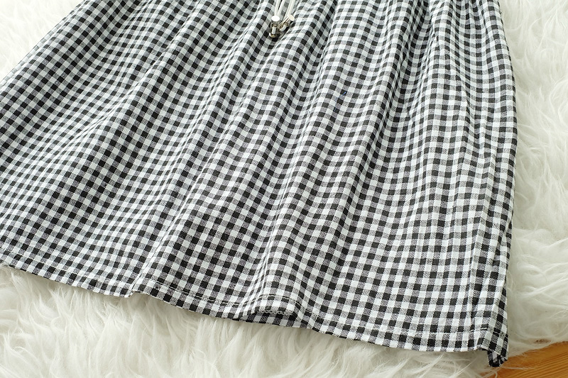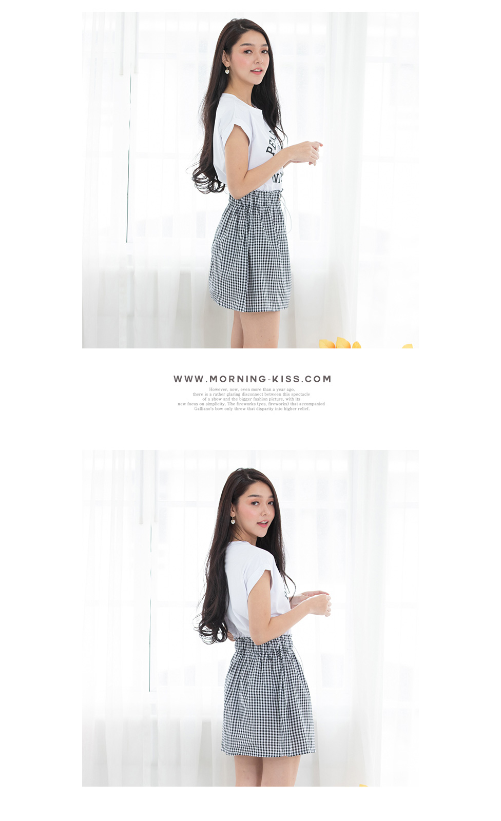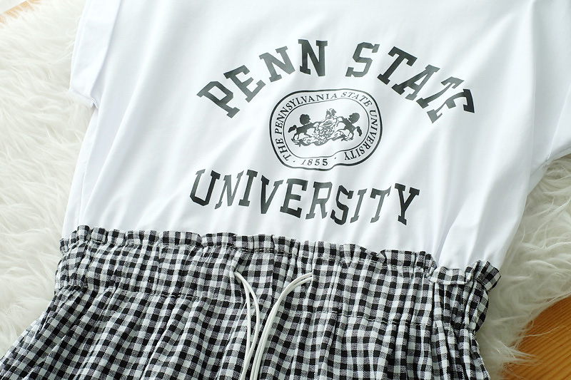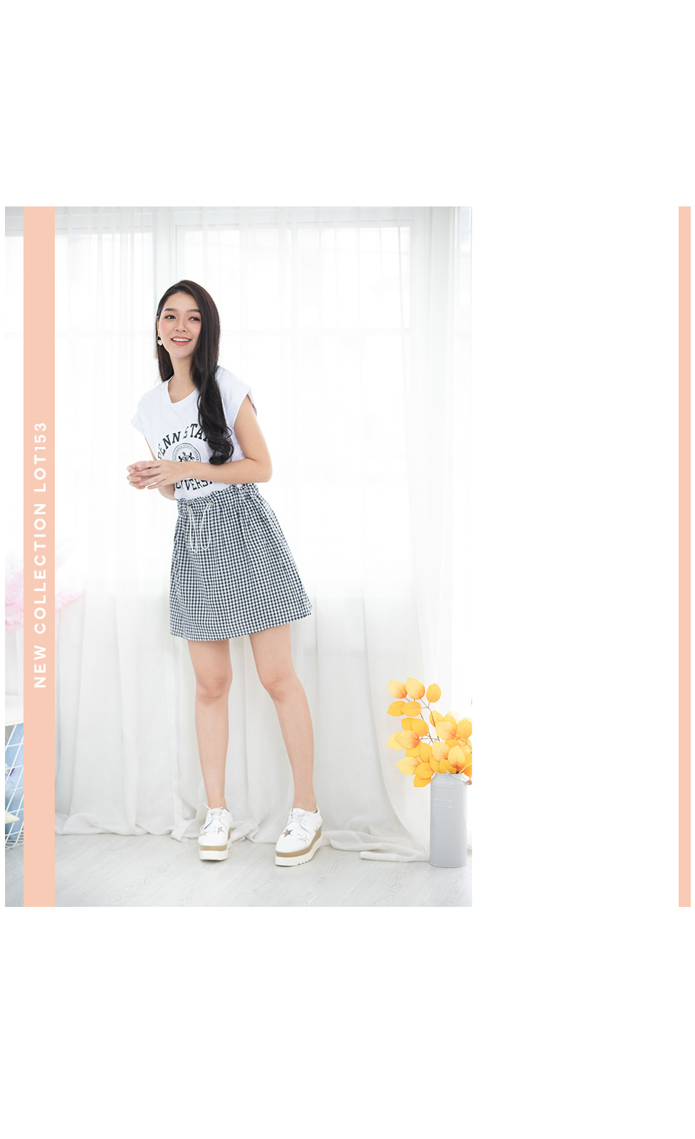 ลุควัยใสนักศึกษาก็จัดให้ กับเดรสน่ารักๆแบบต่อผ้า 2 ชิ้น ตัวเสื้อด้านบนสีขาวผ้า Cotton งานสกรีนอักษรด้านหน้า ปลายแขนพับแบบเย็บติด ช่วงกระโปรงลายสก็อตโทนสีดำเอวยางยืดมีสายผูก ความยาวกำลังสวย แบบสวยจบในชุดเดียวจบ