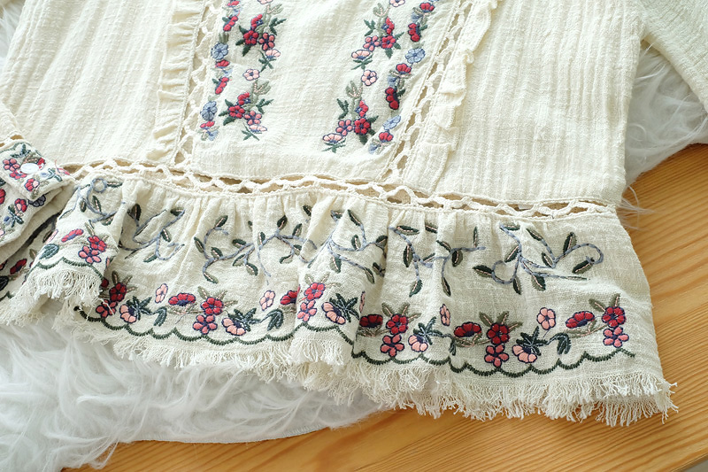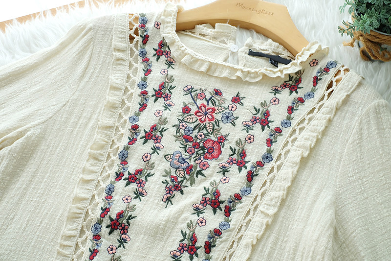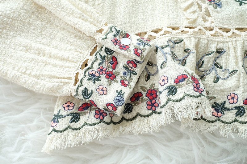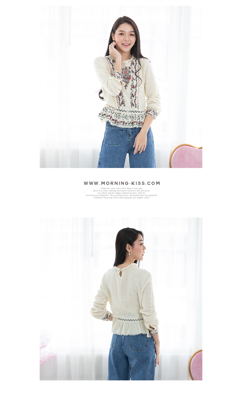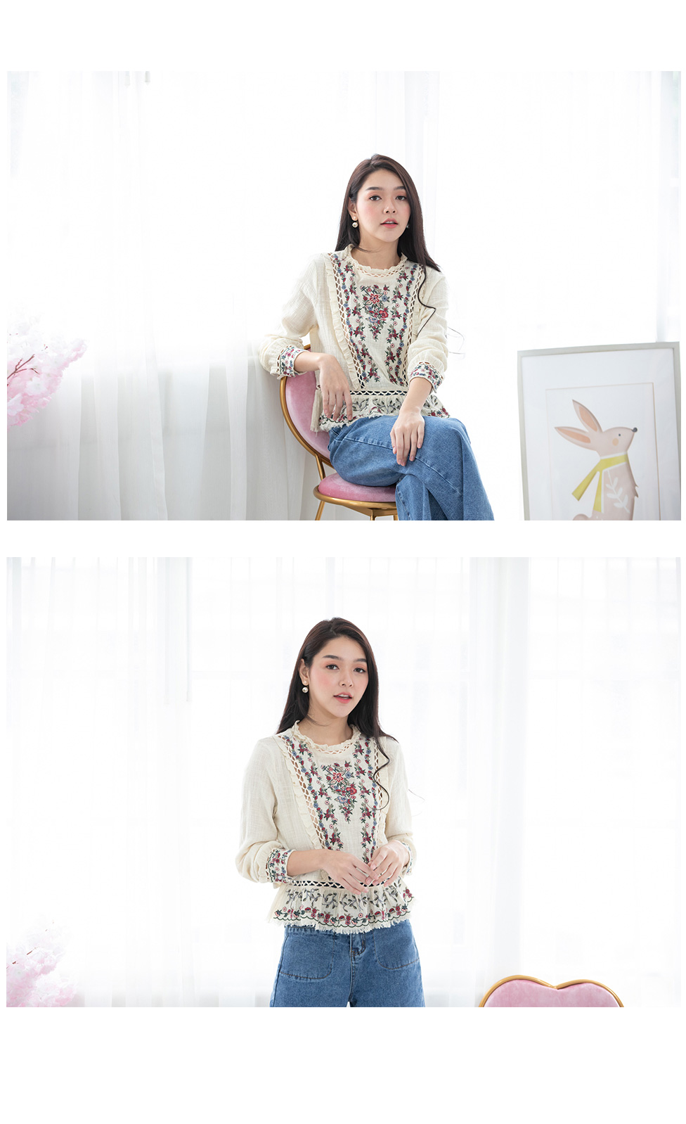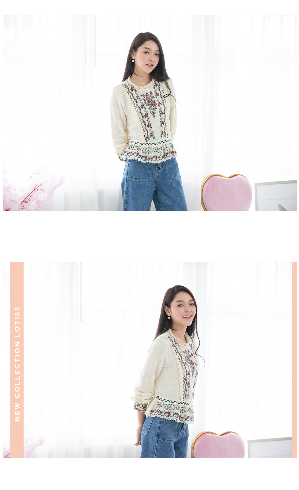 เสื้อแขนยาวแนววินเทจไอเท็มเด็ดรายการนี้ งานสวยงามหนักมาก ปักลายดอกไม้ด้านหน้าสวยเด่น ชายระบายรายล้อมด้วยดอกไม้สวยหวาน เนื้อผ้านิ่มเป็นผ้า cotton ป่านอินเดีย เนื้อนิ่มมากๆ ไม่ร้อน โดนสีครีมหม่นให้อารมณ์วินเทจสไตส์ แมทกับยีนส์สวยเท่เชียวค่า