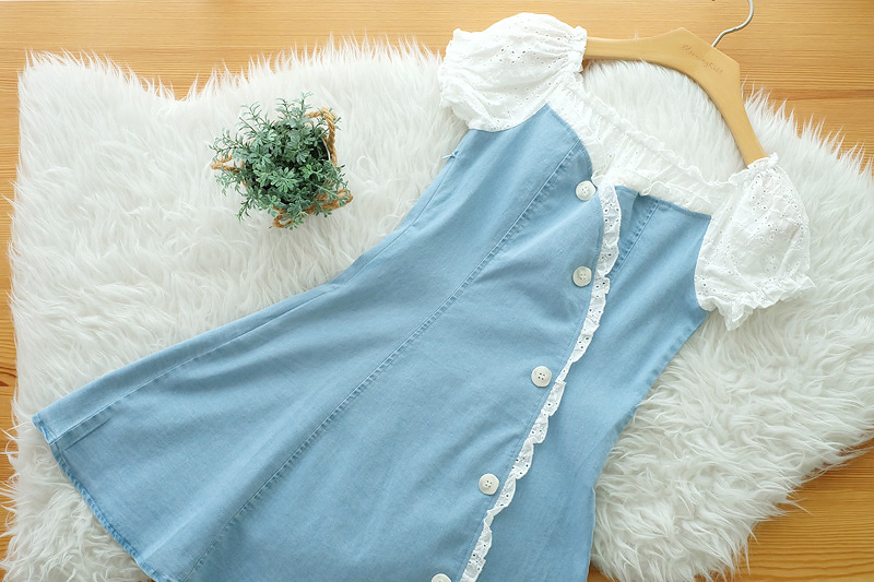 เดรสยีนส์น่ารักๆสไตส์คาวาอี้ ตัดต่อผ้าลูกไม้ฉลุลายให้อารมณ์หวานๆ รุ่นนี้ทรงเข้ารูปช่วงเอวใส่แล้วดูผอมเพรียว ตัวแขนตุ๊กตาจะใส่แบบดึงแขนขึ้นหรือใส่เป็นเปิดไหล่ก็สวยเริ่ด แต่งกระดุมหลอกเรียงหน้า ชายกระโปรงระบายเบาๆกำลังสวย เนื้อผ้ายีนส์รุ่นนี้เนื้อยืดหยุ่นได้ดี จัดไปไม่ผิดหวัง
