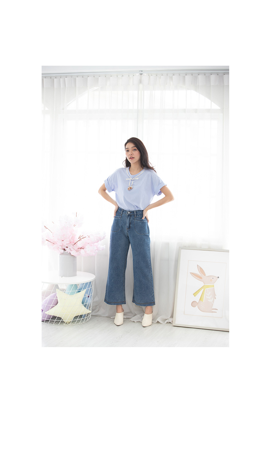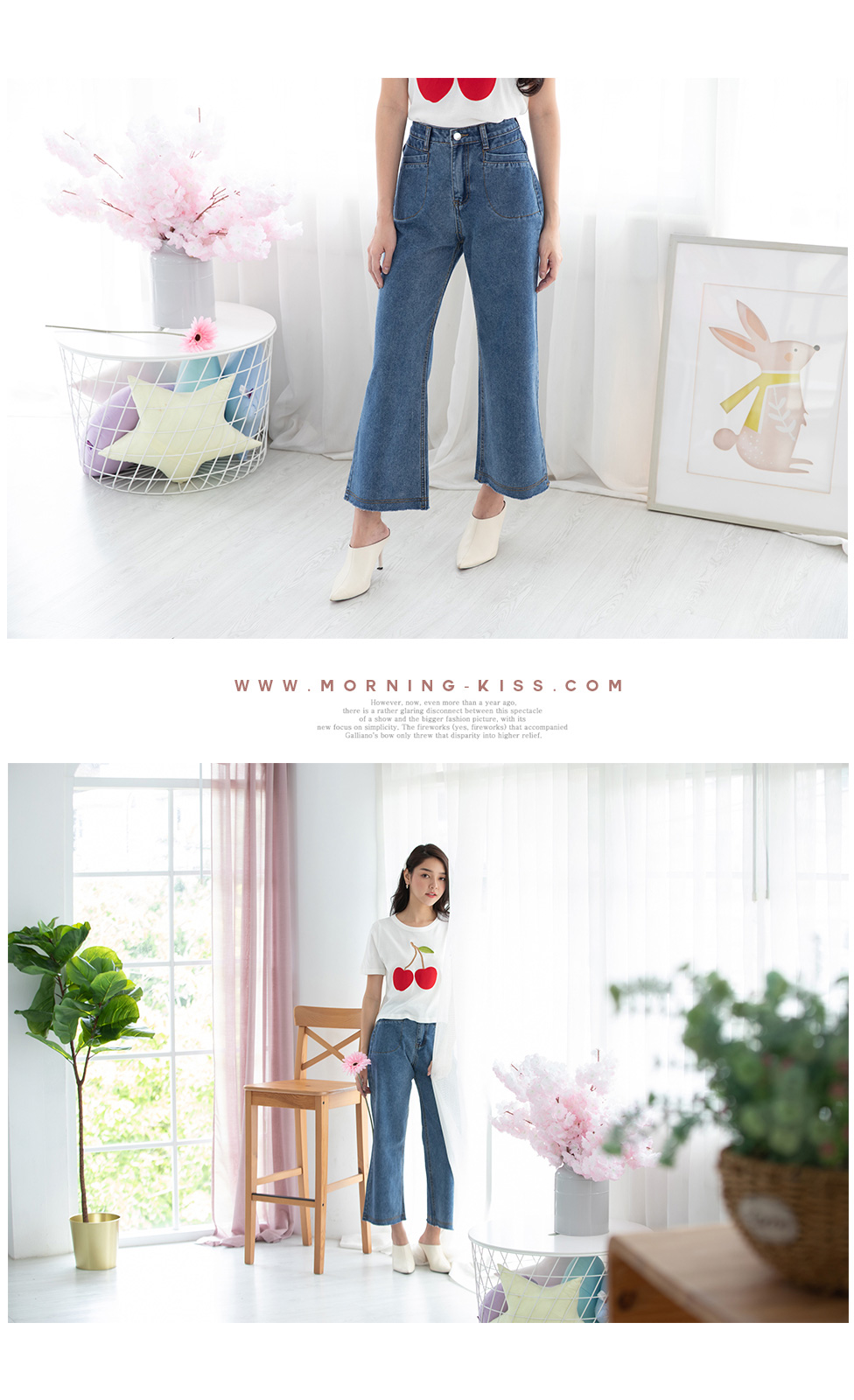 กางเกงยีนส์ขาบานสียีนส์เข้มทรงเอวสูง มาแรงจะพลาดได้ไง ใส่แล้วดูมีเอวผอมเพรียวอย่างสวยเลย แบบชิคๆไม่ซ่ำใครจริงๆแต่งกระเป๋าจริงแบบปาดๆเก๋ๆ ปลายขาตัดแบบไม่เย็บทำลุ้ยๆเล็กน้อย พร้อมเดินด้ายคู่แบบเก๋ๆ รุ่นนี้แนะนำสาวๆมากๆใส่แล้วสวยชิคมาก