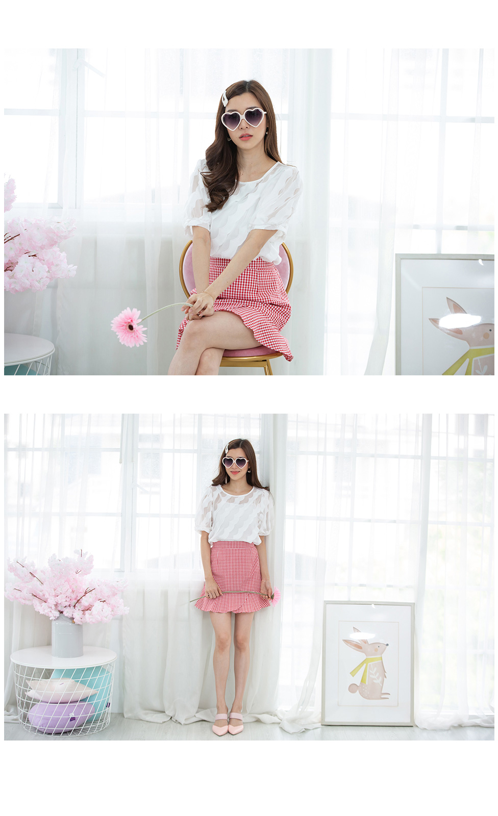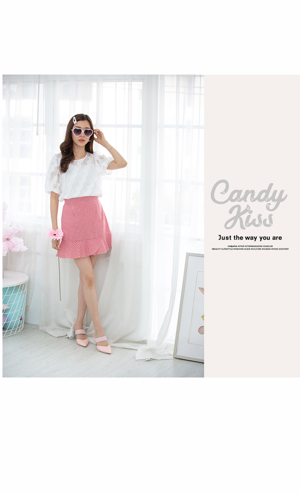 เสื้อแขนสั้นสีขาว ดีไซน์สวยเก๋ด้านหน้าแต่งแบบเฉียงๆเป็นชั้นๆสวยหวาน ดีไซน์ไม่ซ้ำใคร เนื้อผ้าชีฟองเนื้อนิ่มใส่สบายไม่ระคายผิว มาพร้อมเสื้อสายเดี่ยวตัวในใส่แยกชิ้นได้ รุ่นนี้แมทกับกระโปรงแบบน่ารักๆก็ดูสวยใสมากเลยค่ะ