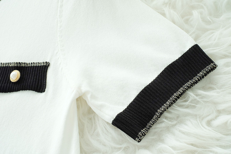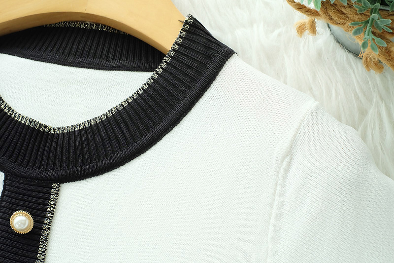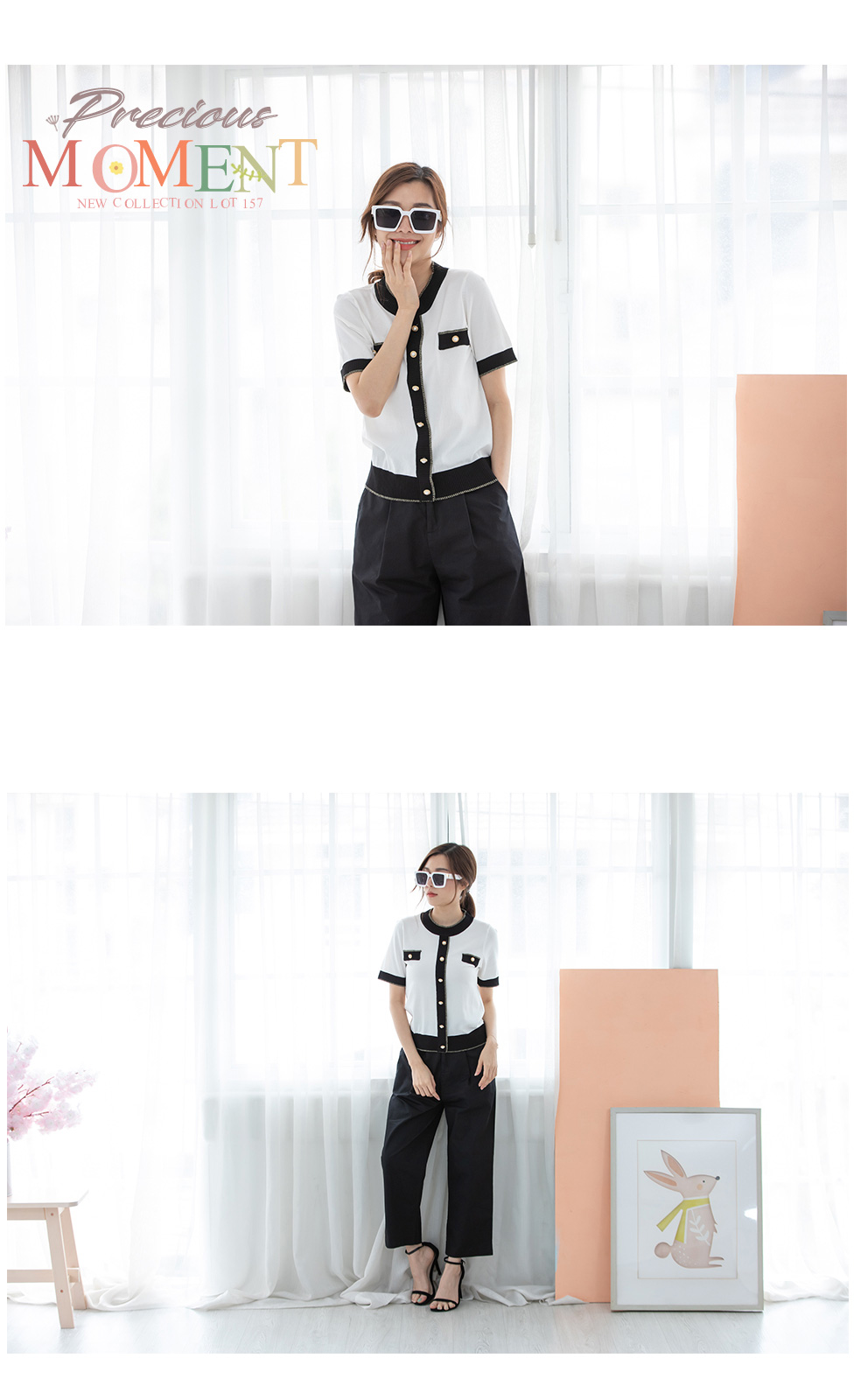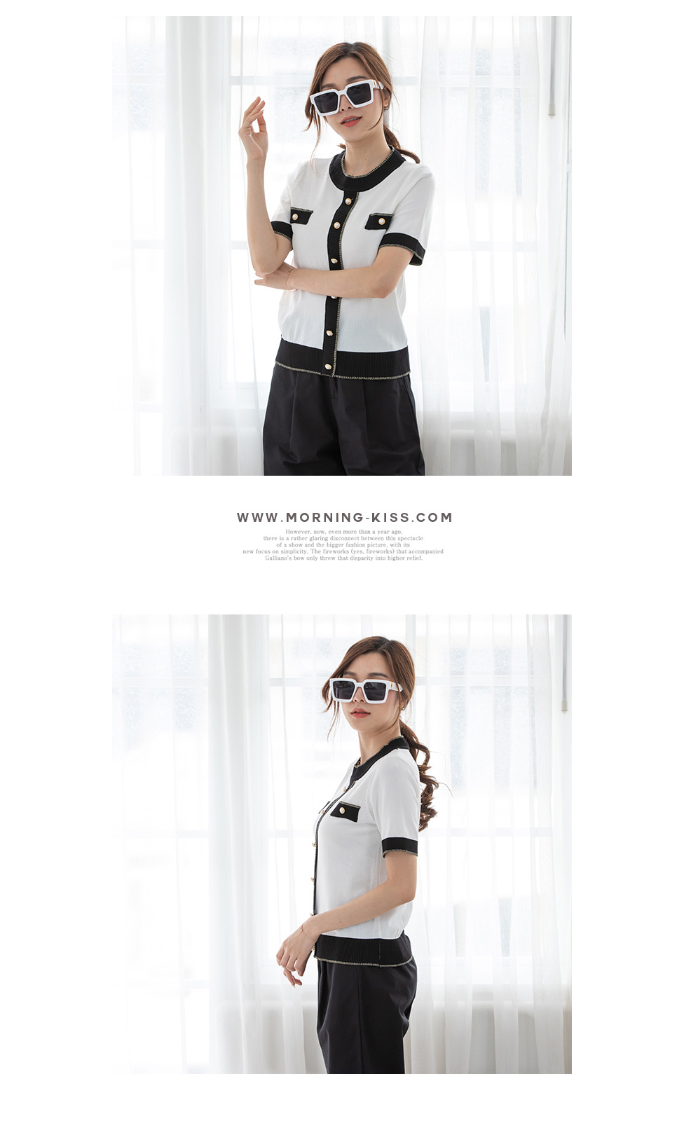 เสื้อแขนสั้นสีขาวแบบเรียบหรูไม่เน้นดีเทลเยอะ ตัดขอบคอปลายแขนและชายเสื้อด้วยสีดำ งานโชว์กระดุมหน้าสีทองด้านหน้า เนื้อผ้า knitting เนื้อทอแน่น ยืดหยุ่นได้ดี เนื้อนิ่มใส่แล้วไม่คัน แมทง่ายๆ ใส่เที่ยว ใส่ทำงานได้หลายโอกาสเลย
