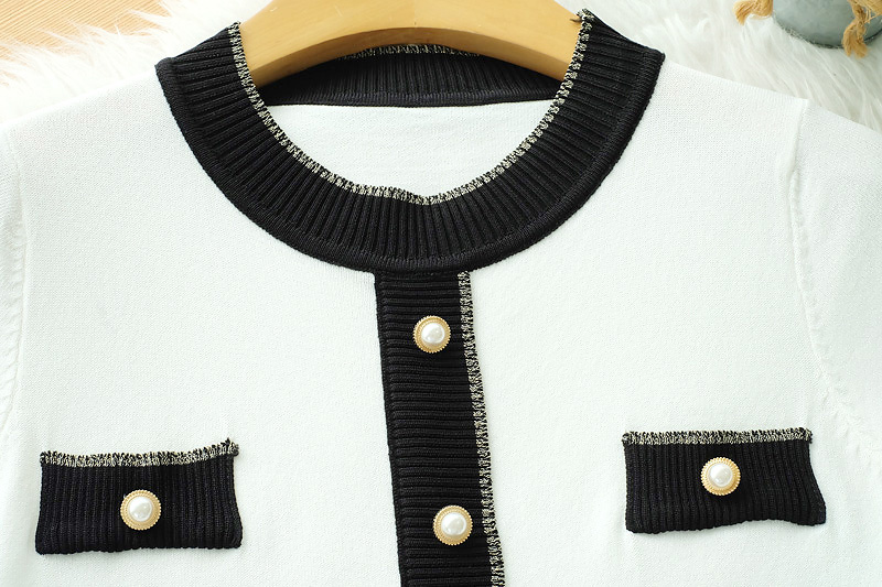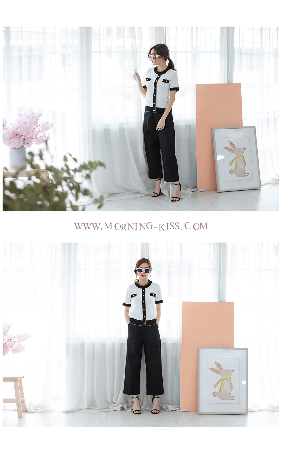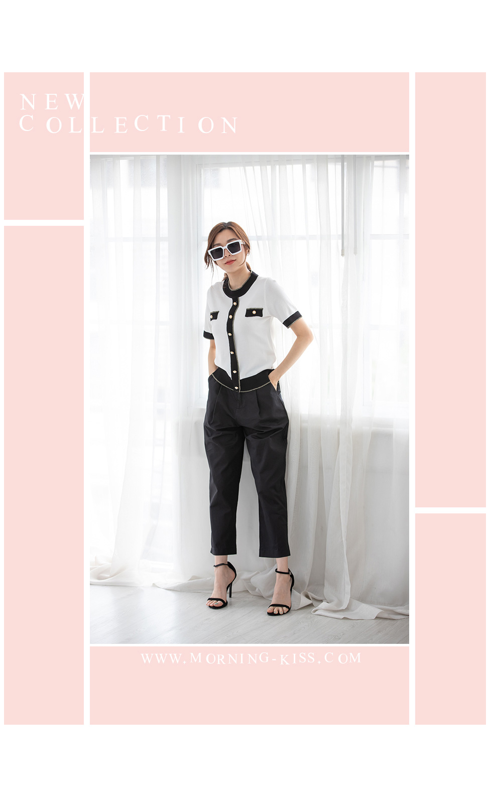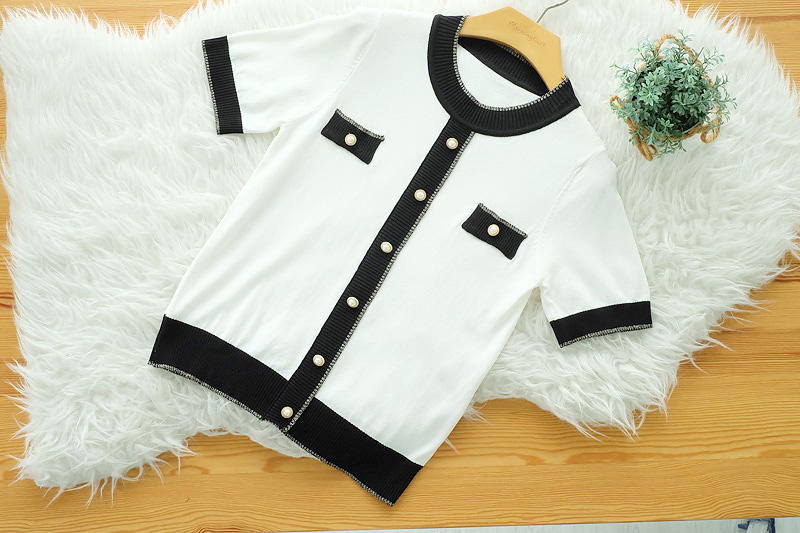 เสื้อแขนสั้นสีขาวแบบเรียบหรูไม่เน้นดีเทลเยอะ ตัดขอบคอปลายแขนและชายเสื้อด้วยสีดำ งานโชว์กระดุมหน้าสีทองด้านหน้า เนื้อผ้า knitting เนื้อทอแน่น ยืดหยุ่นได้ดี เนื้อนิ่มใส่แล้วไม่คัน แมทง่ายๆ ใส่เที่ยว ใส่ทำงานได้หลายโอกาสเลย