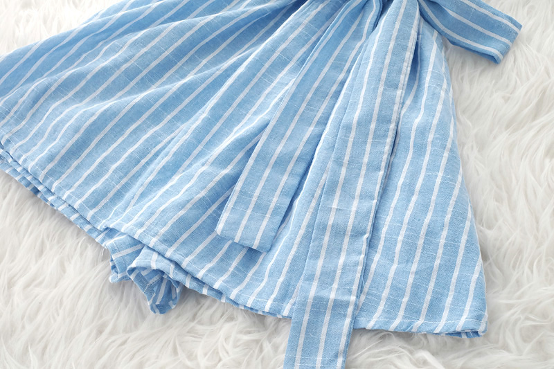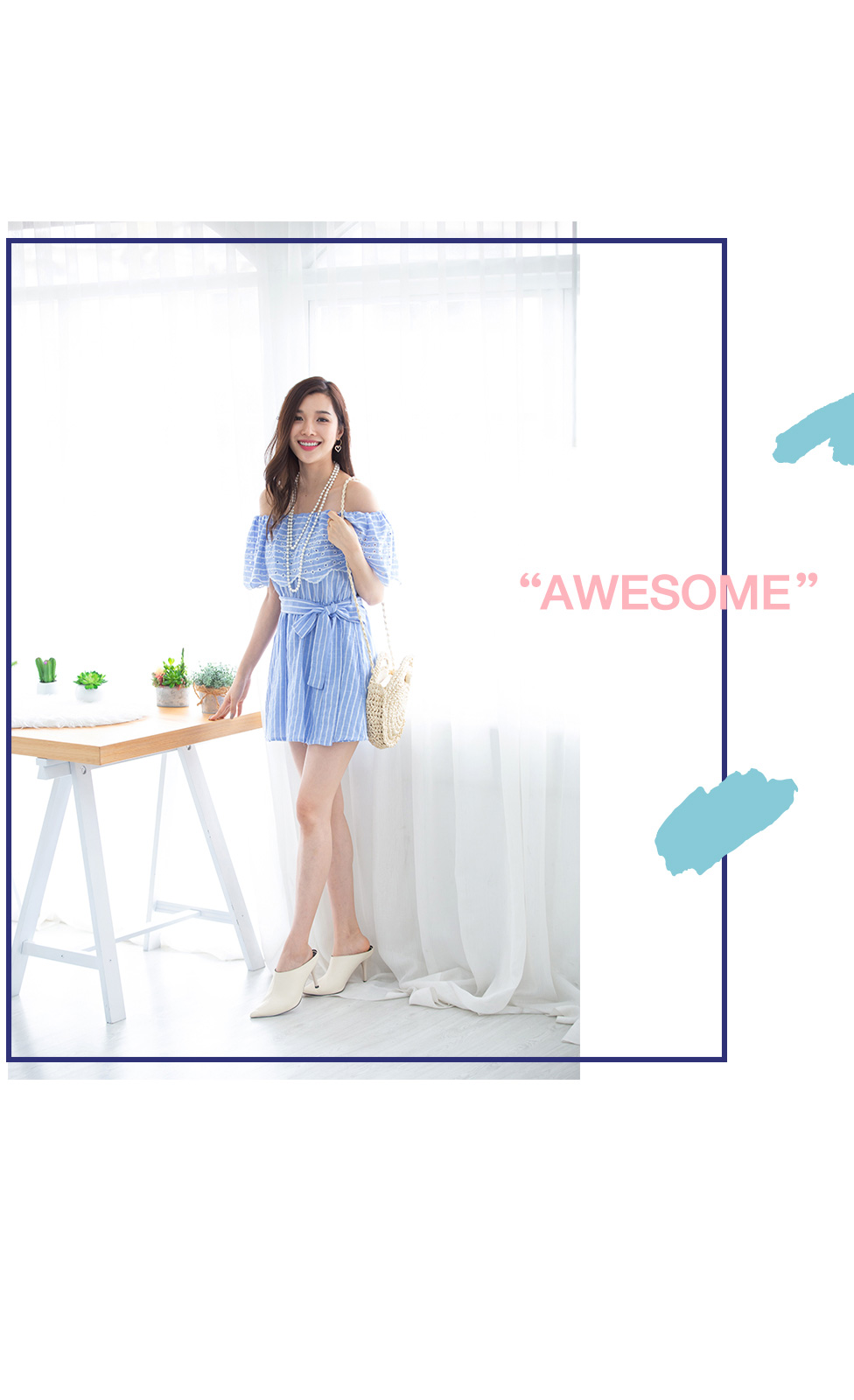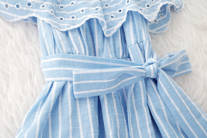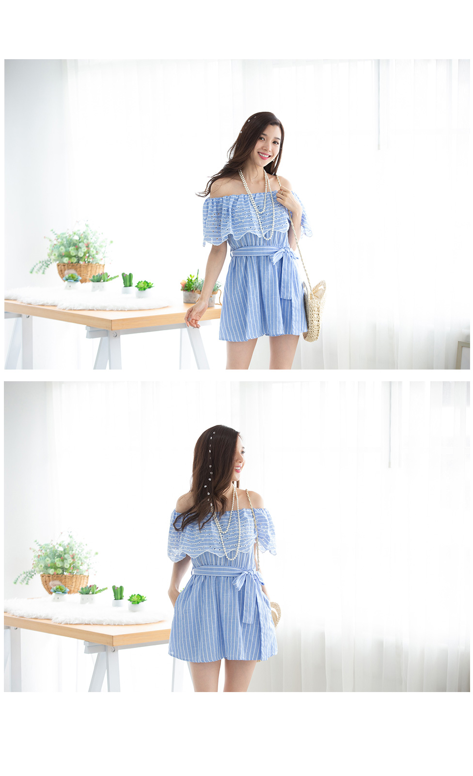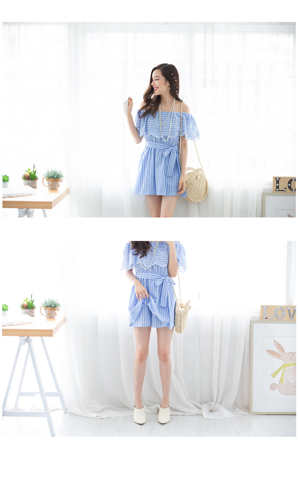 น่ารักสุดไอเท็มนี้ Jumpsuit สีฟ้าริ้วขาวสดใสแต่งระบายฉลุลายได้ลุคสวยแพง ช่วงกางเกงด้านหน้าตัดเย็บผ้าทับคล้ายกระโปรงและด้านหลังปล่อยเป็นทรงกางเกงปกติ ขอบเอวยางยืดใส่สบายไม่อึดอัด รุ่นนี้ทรงสวย เป้ายาวไม่ต้องกังวลเรื่องเป้ารั้งนะคะ แบบน่ารักมากๆลุคคล้ายกระโปรง จะใส่แบบเปิดไหล่หรือจะใส่เป็นแบบดึงขึ้นก็น่ารักดูดีทั้งสองสไตล์ มาพร้อมสายขาดเอวผูกปรับเป็นโบว์เข้าเซ็ต ใสใสวัยรุ่นชอบจัดเลย