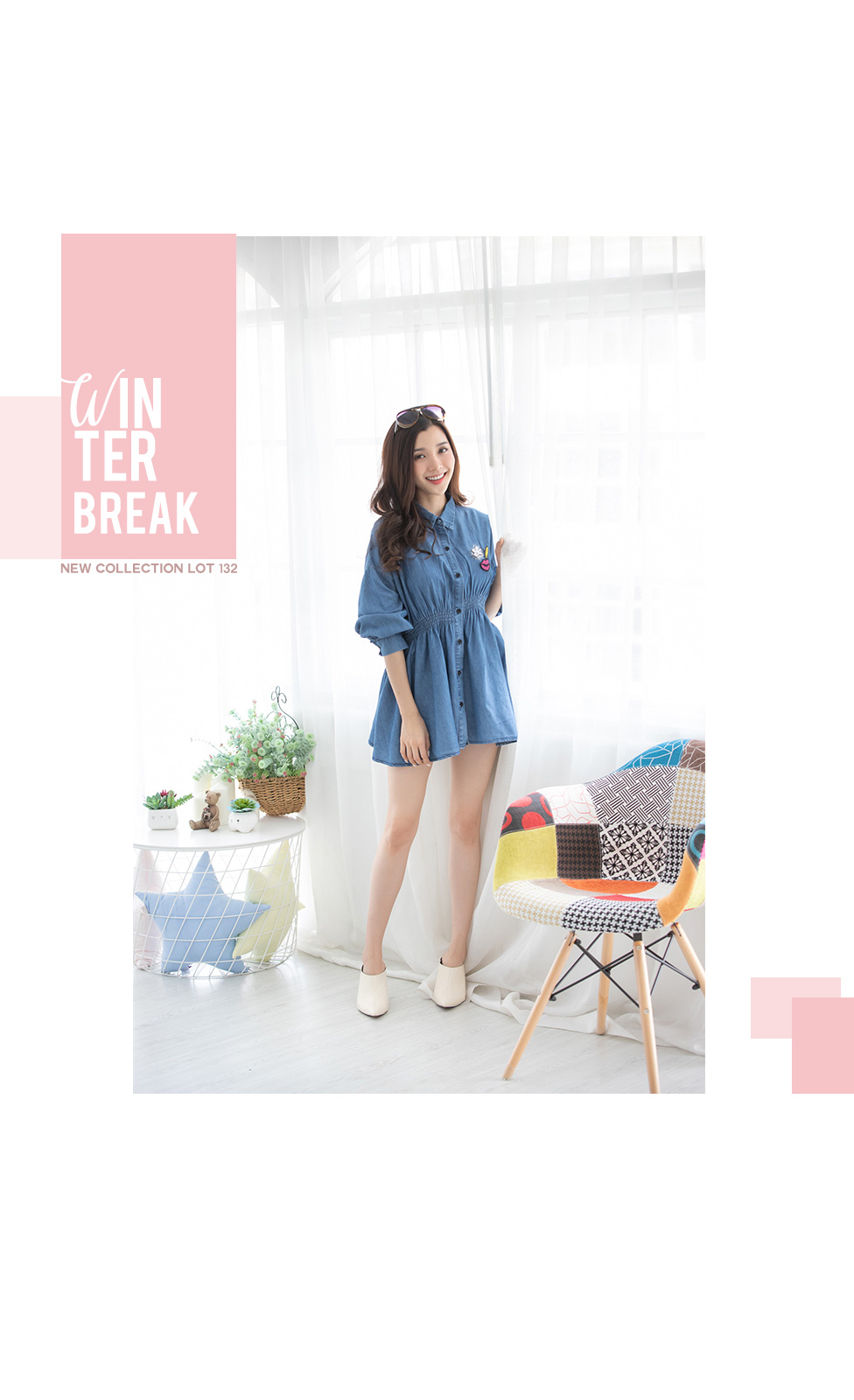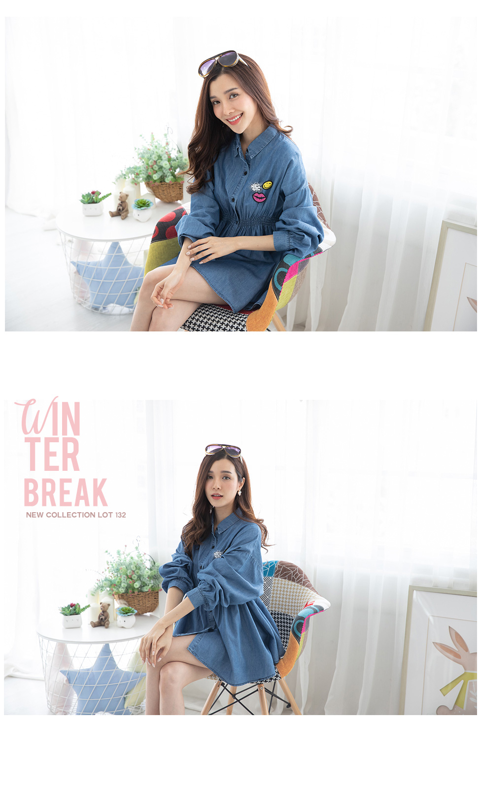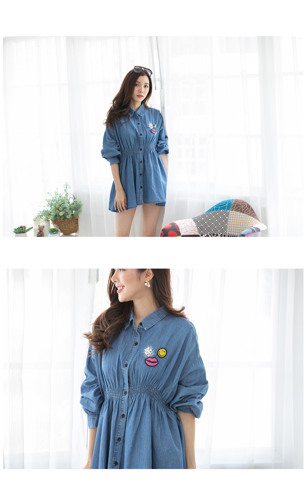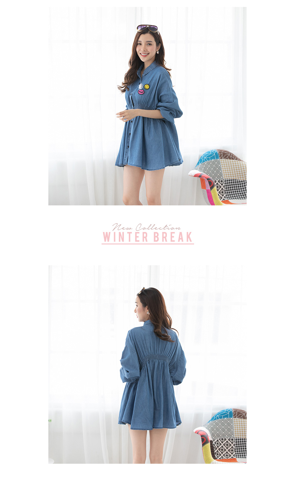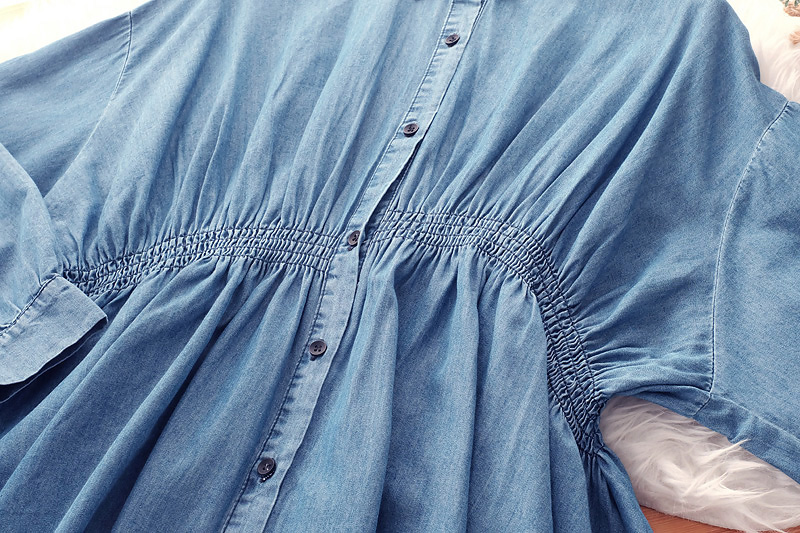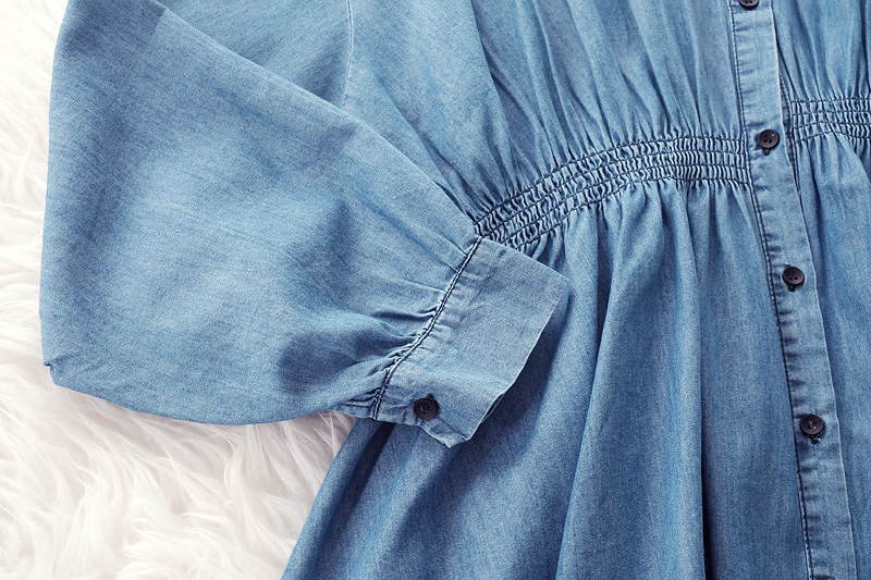 ชุดมินิเดรสสียีนส์แขนยาวคอปก ช่วงเอวยางยืด เนื้อผ้ายีนส์ฟอกเนื้อบางเบาและนุ่มใส่สบาย กระดุมหน้า แบบเรียบๆ ทรงใส่สบายๆ แมทกับผ้าใบสวยจบในชุดเดียว