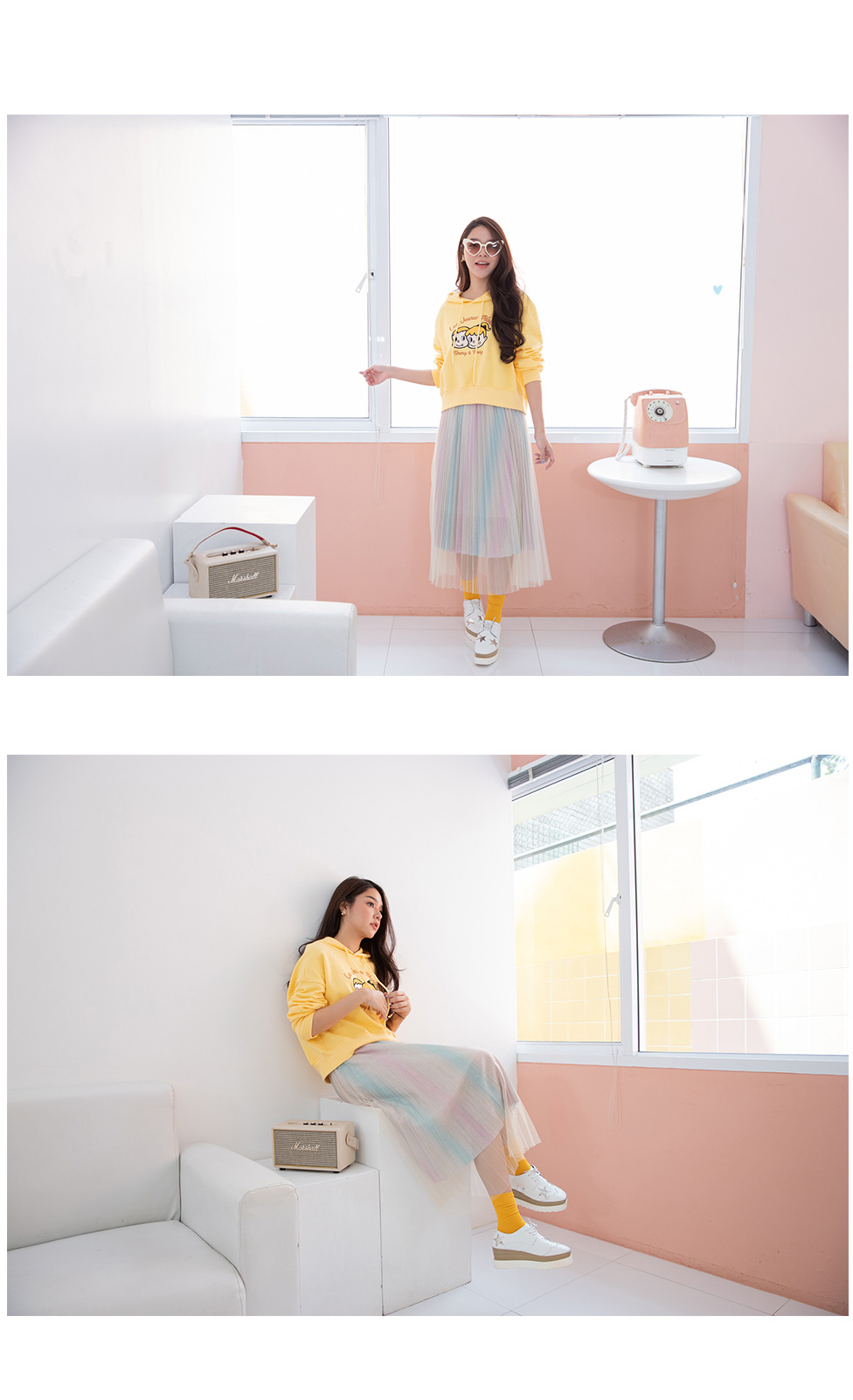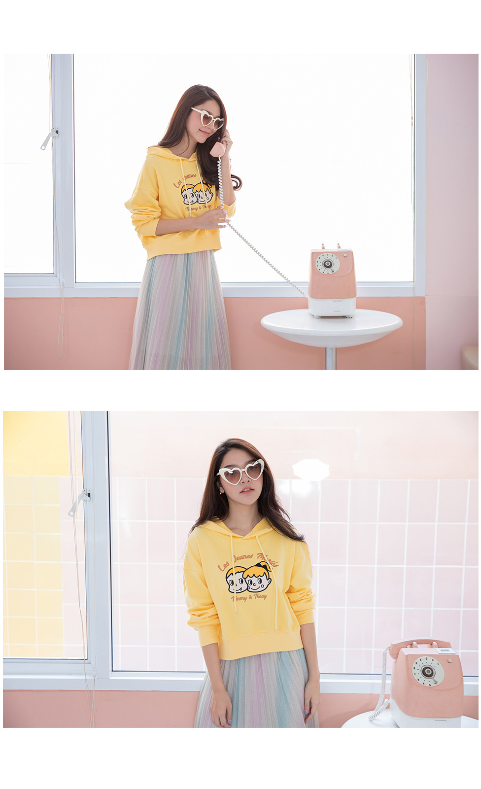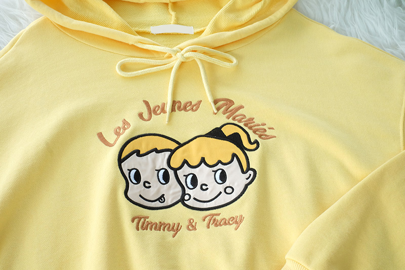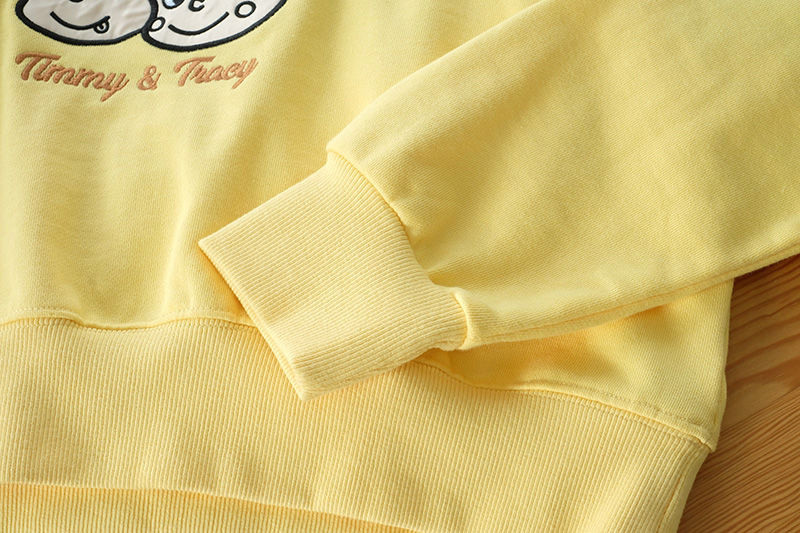 Super Cute น่ารักสุดๆ Jumper แขนยาวสีเหลืองแบบมีฮู้ดที่คอมีเชือกผูก งานปักลายการ์ตูน Timmy and Tracy น่ารักโดดเด่น เนื้อผ้า Cotton เนื้อนิ่มมาก ไม่หนาไม่บาง อุ่นๆกำลังดีแมทคู่กางเกงขาสั้นหรือกระโปรงได้หลายลุคเลย