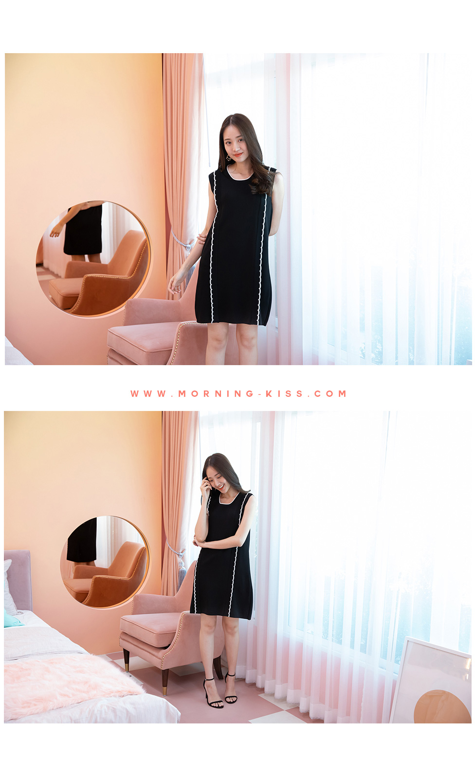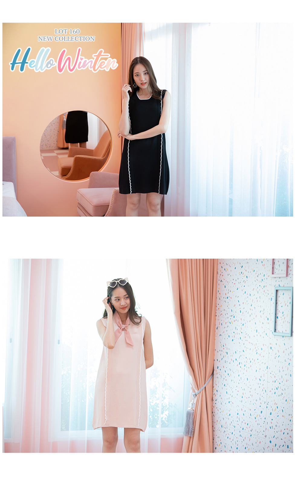 เดรสแขนกุดด้านหน้าแต่งระบายเป็นหยักๆตัดขอบด้วยสีขาว เนื้อผ้า Knitting ยืดหยุ่นได้ดี แบบเรียบๆแต่ดูน่ารัก ไอเท็มนี้น่ารักมากจริงๆ ใส่ง่ายใส่สบาย ห้ามพลาดกันนะคะ มี 2 สี