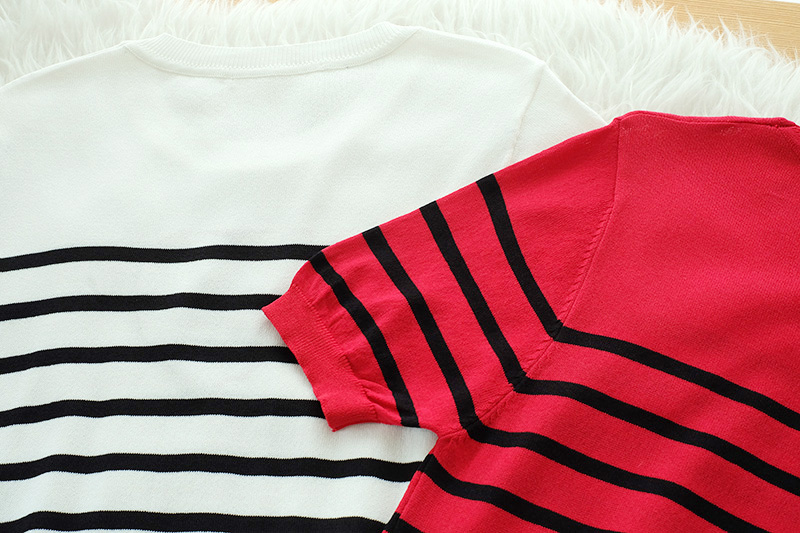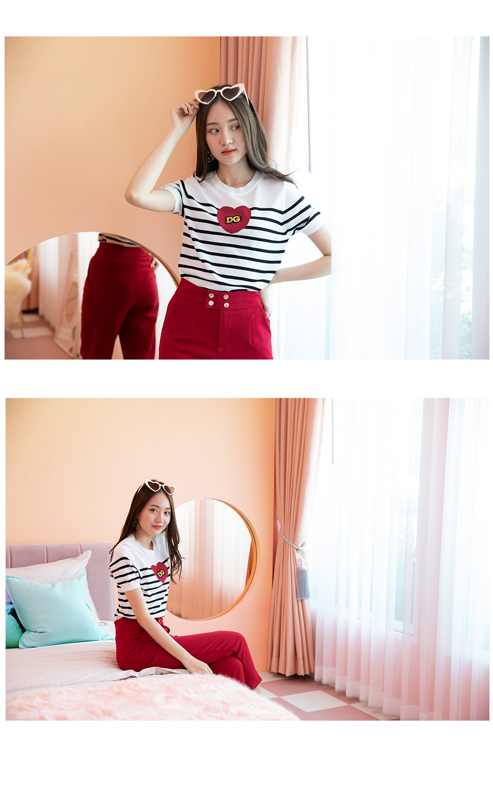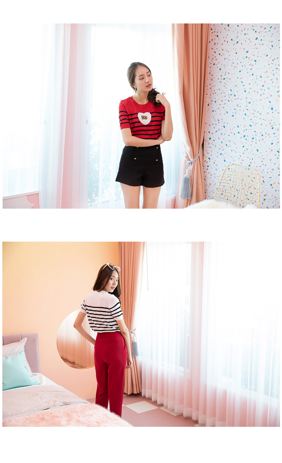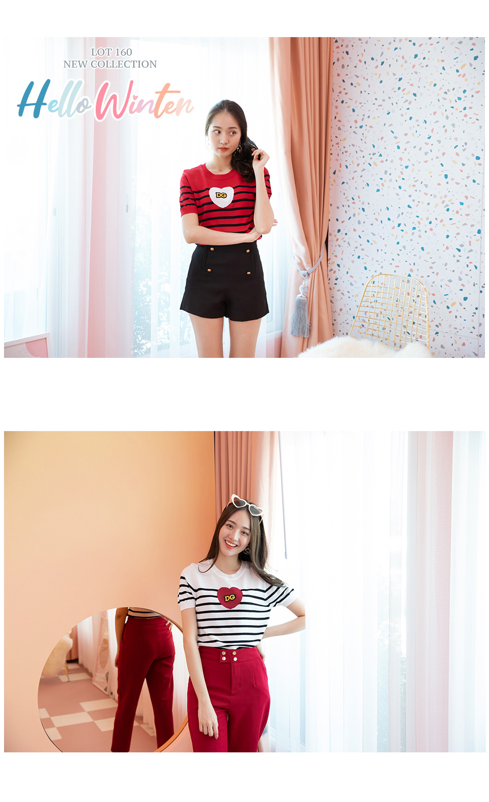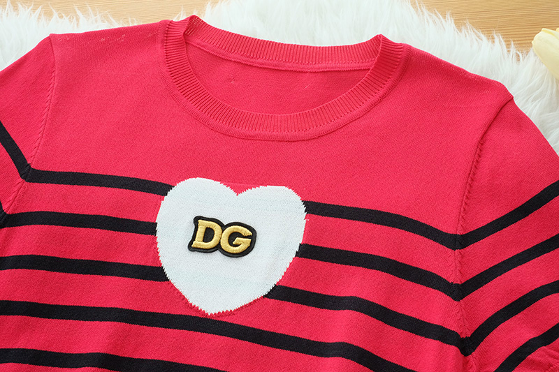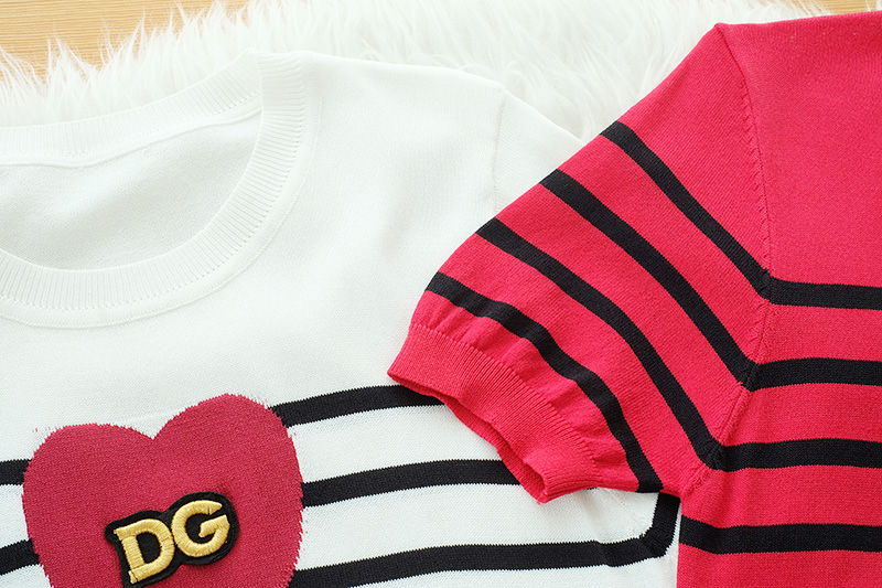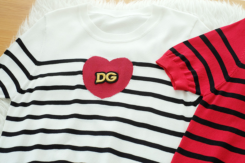 สวยโดดเด่นดีเทลน่ารักๆ กับเสื้อผ้า Knitting ตัวเสื้อริ้วดำ ช่วงหน้าอกแต่งหัวใจ+งานปักอักษร DG รุ่นนี้น่ารักมากนะคะ ใส่แมทกับขาสั้นหรือขายาวก็สวยเก๋