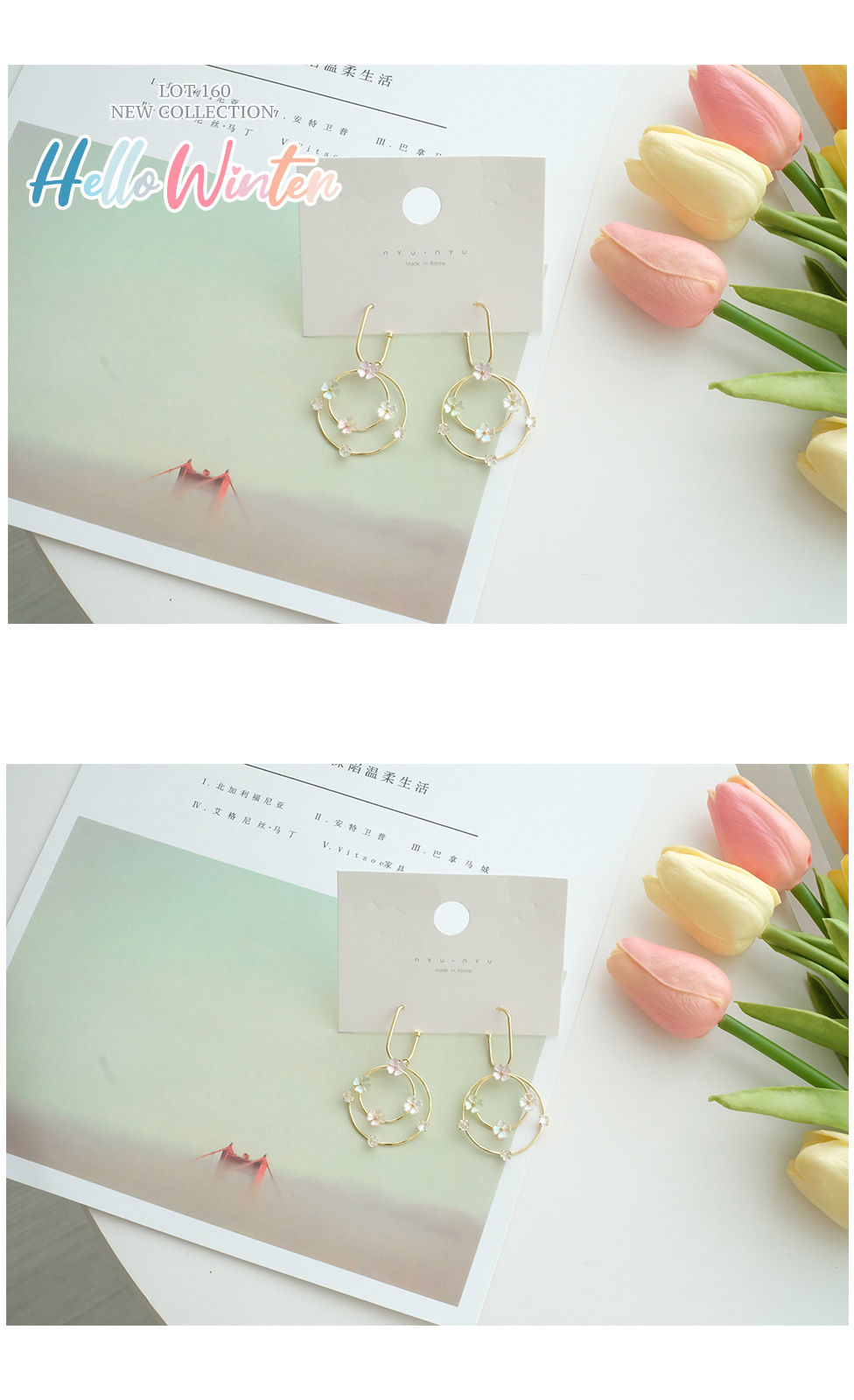 ต่างหูยาวแบบห้อยห่วงวงกลมคู่ประดับคริสตัลและดอกไม้แบบน่ารักๆ งานสวยหวานมาก ขนาดวงกำลังดี ไม่หนักหู คู่นี้ใส่ออกงานกลางคืนก็สวยโดดเด่น ของจริงน่ารักมาก ไม่อยากให้พลาดเลยค่า