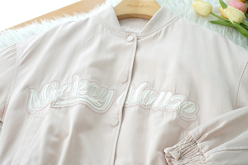 ลุคเท่ๆแบบคิ้วๆ กับเสื้อ cardigan โทนสีชมพูอ่อนๆ งานปักอักษร Mickey Mouse ด้าหน้า + งานสกรีน Mickey Mouse ตัวใหญ่พร้อมอักษรด้านหลัง มีกระดุมเรียงหน้า วับในทั้งตัว แต่งกระเป๋าจริง 2 ข้าง ซ้าย/ขวา ช่วงเอวจั๋มเข้าเล็กน้อย งานดีมาก ไอเท็มนี้แนะนำสาวๆเลยจ้า สวยเท่น่ารักจริงๆ