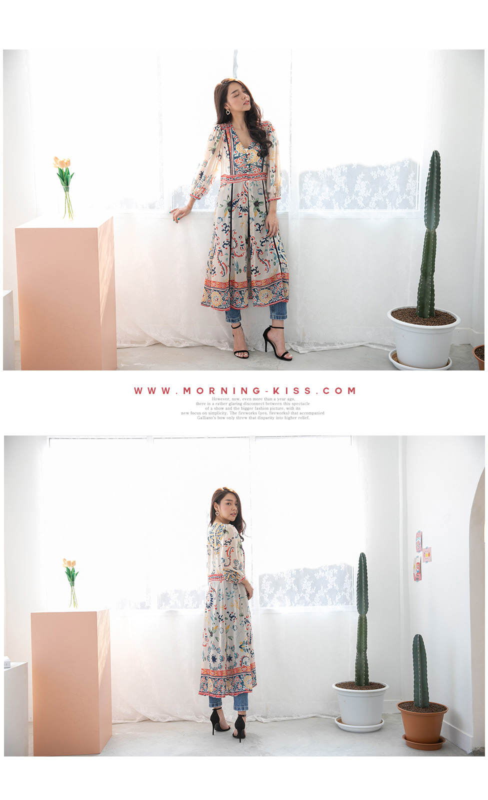 สาวกโบฮีเมียนไม่ควรพลาดสิ่งนี้ กับชุดเดรสตัวยาวลายปริ้นอย่างสวยเลย ทรงแหวก เนื้อผ้าชีฟฟองแบบมี texture ในตัว ชุดนี้ใส่แมทกับขาสั้นก็เริ่ด ขาวยาวก็เท่ must have เลยค่า ใส่ถ่ายรูปขึ้นมา สวยมากกกก