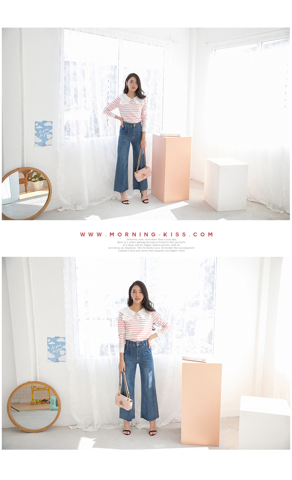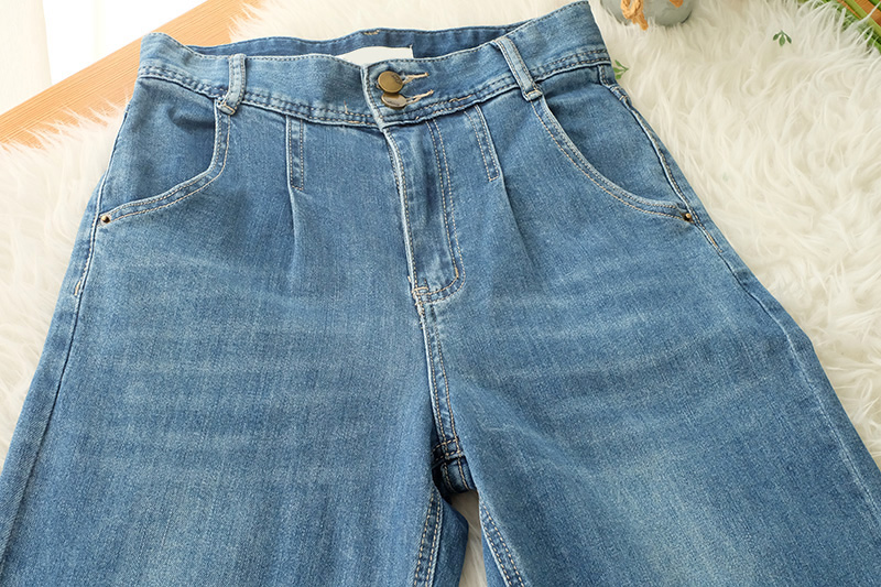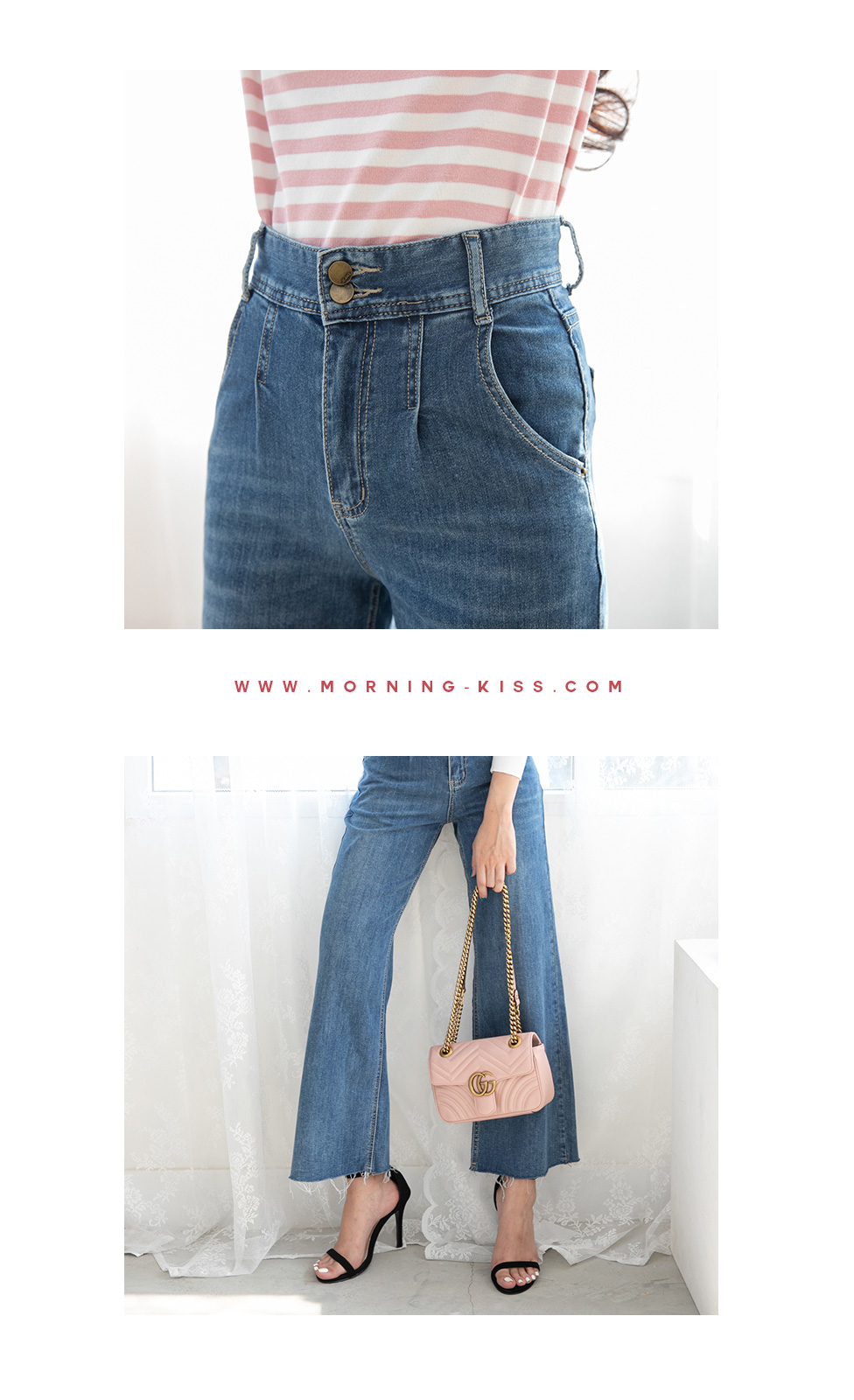 กางเกงยีนส์ขาบานเอวสูงอย่างสวยเลยค่า รุ่นนี้เนื้อผ้ายืดหยุ่นได้ดีงามมากใส่แล้วดูมีเอวผอมเพรียว ด้านหน้าจับจีบ ปลายขาตัดแบบไม่เย็บทำลุ้ยๆเล็กน้อย สียีนส์ฟอกสีสวยมาก เข้ากับเสื้อผ้าได้ง่าย รุ่นนี้แนะนำสาวๆมากๆใส่แล้วสวยชิคสุดๆ