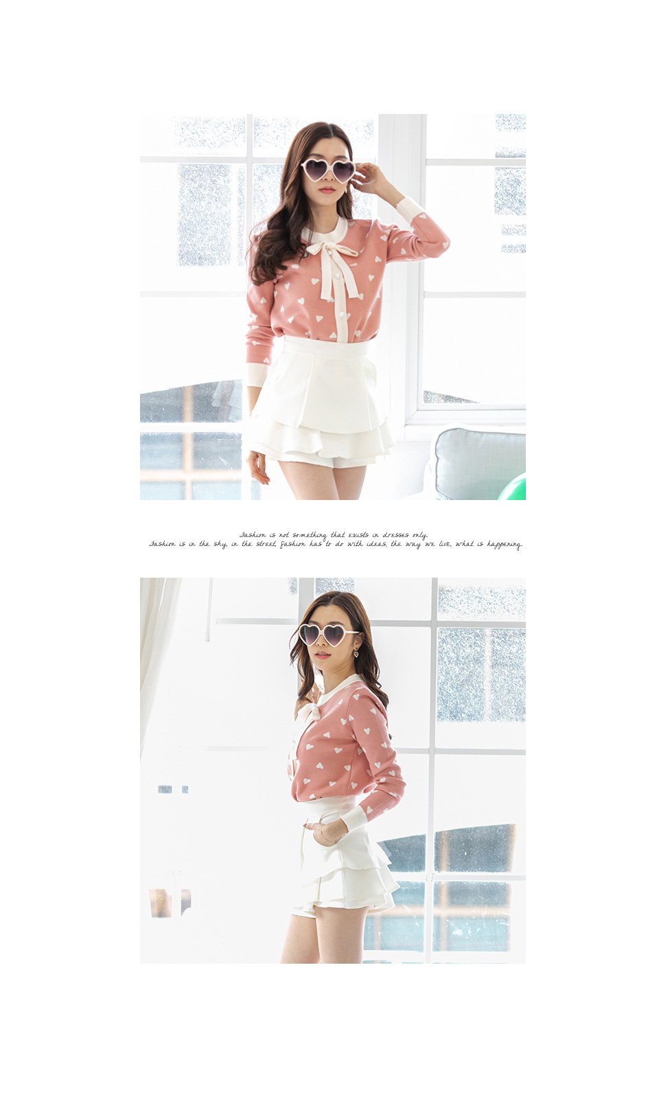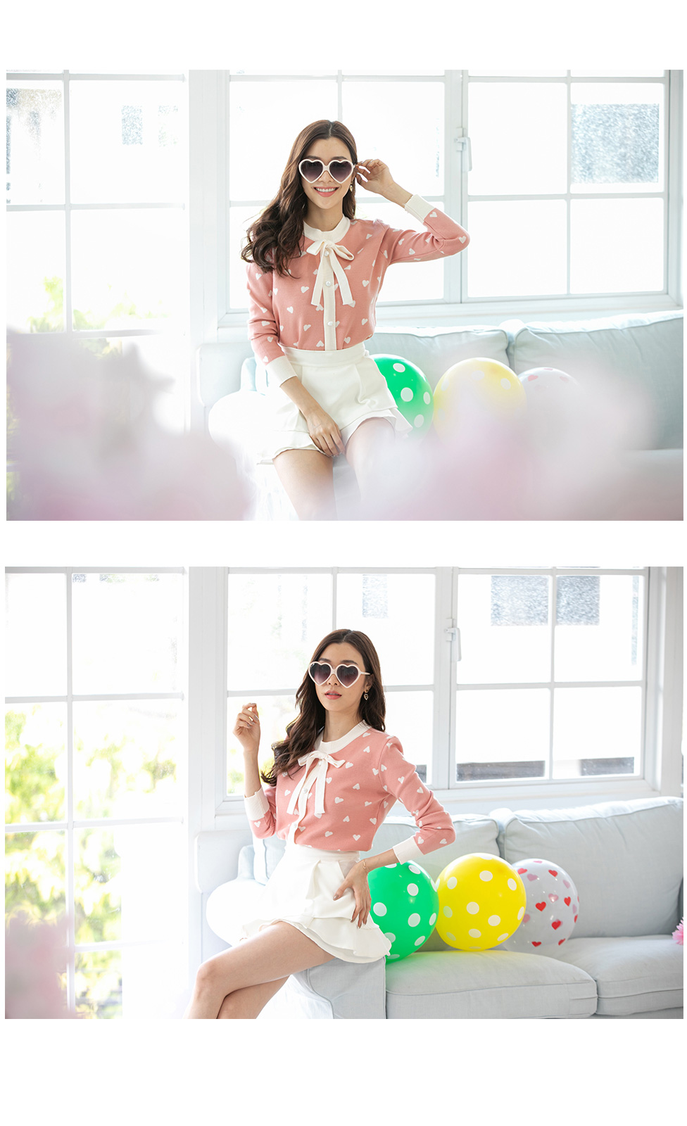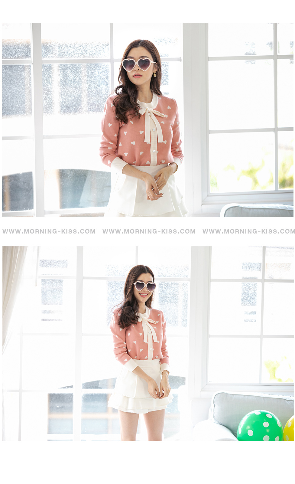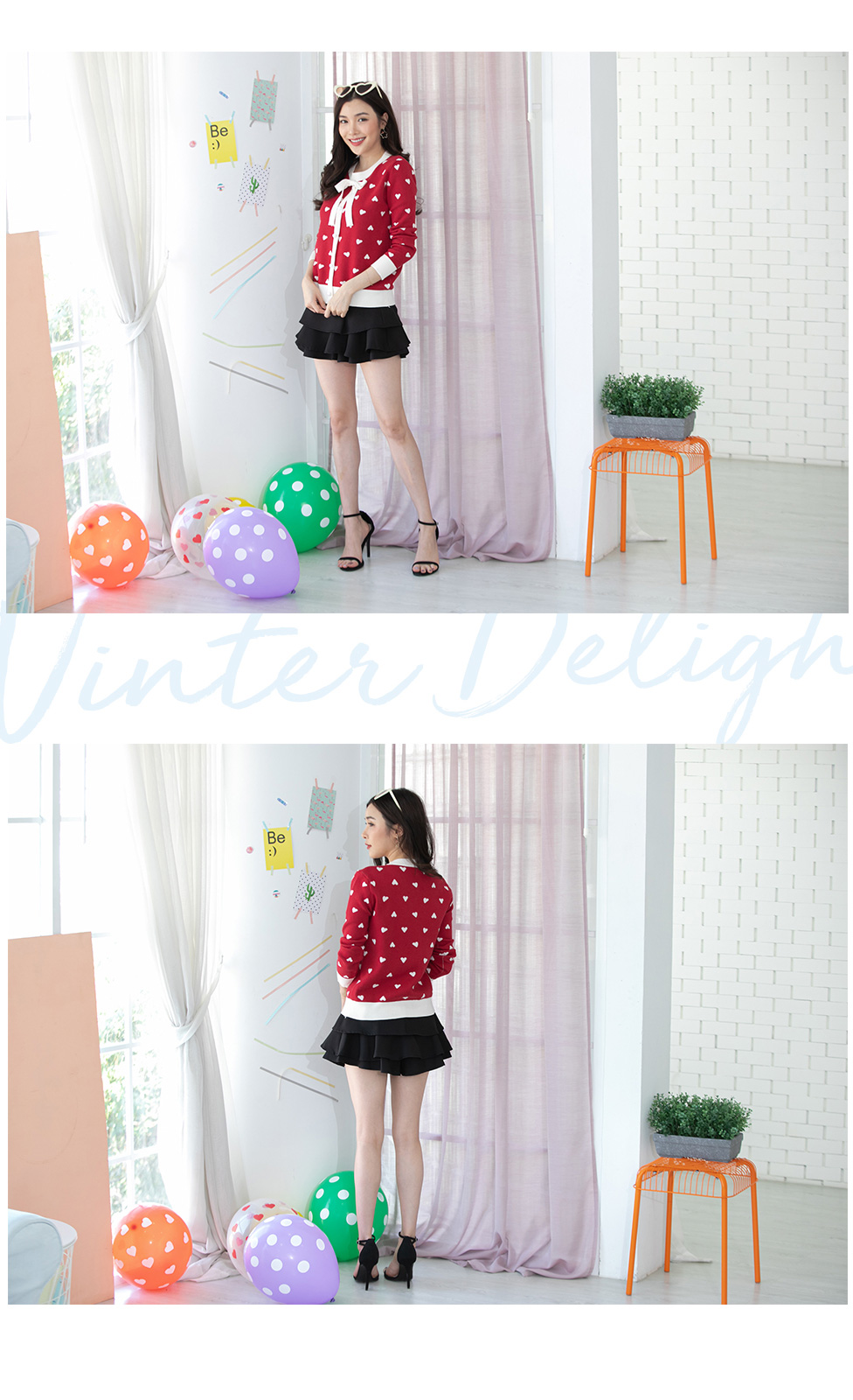น่ารักสุดๆกับเสื้อแขนยาวงานรูปหัวใจรอบตัว ช่วงคอมีสายผูกเป็นโบว์น่ารักๆ แต่งกระดุมมุกหลอกเรียงหน้า ตัดขอบตัวเสื้อด้วยสีครีมได้สวยหวานลงตัว เนื้อผ้า Knitting เนื้อทอละเอียดแน่น อุ่นๆ ใส่แล้วไม่ระคายผิว สวยหวานขนาดนี้ หนาวนี้จัดไปไม่ผิดหวัง