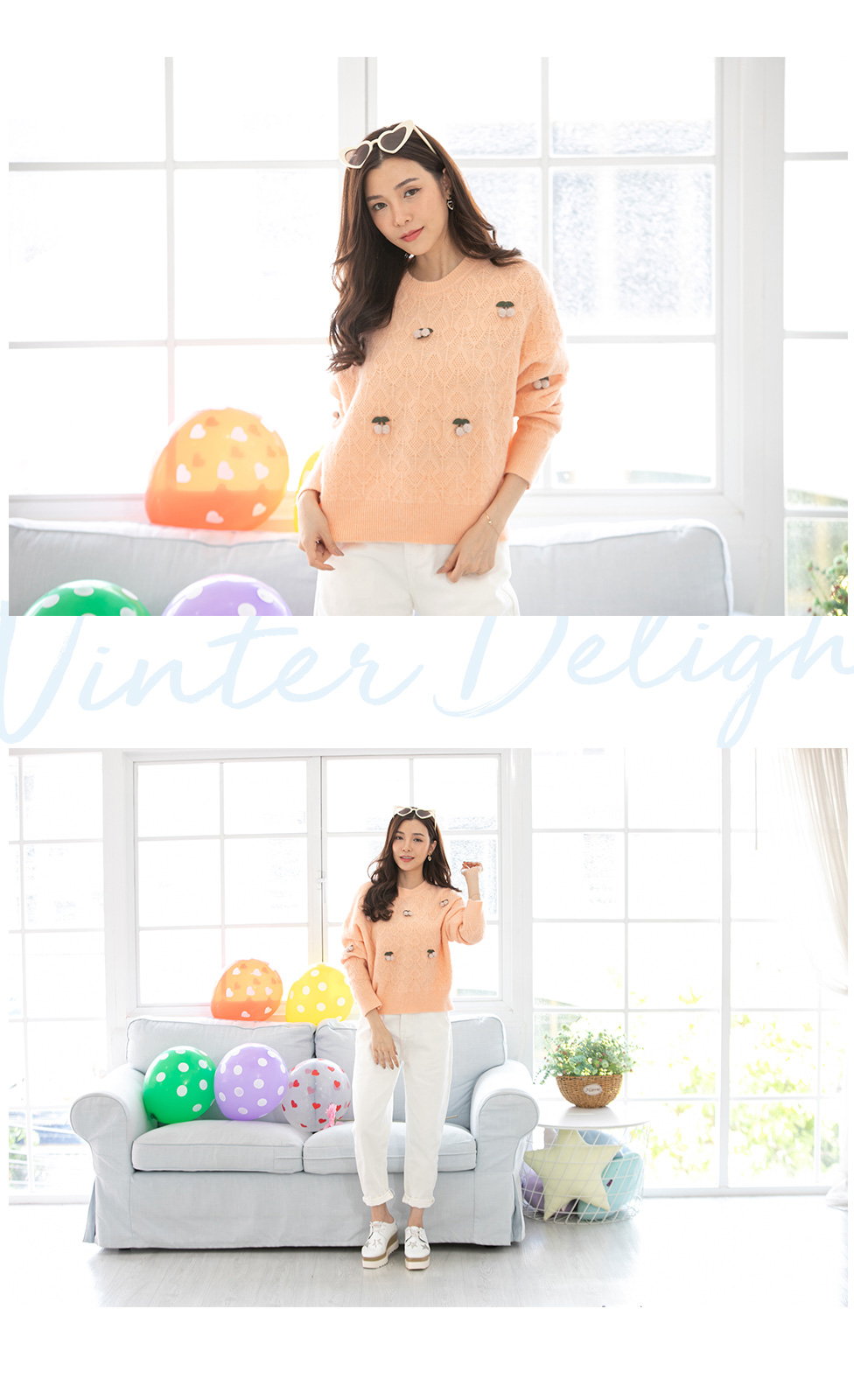งุ้ยยยย ไอเท็มนี้น่ารักมากค่า เห็นแล้วตกหลุมรักเลย งานดีพรีเมียมมาก เสื้อไหมพรมใส่อุ่นๆ งานแต่งเชอรรี่ห้อยตุ้งติ่งด้านหน้าแบบ 3D เนื้อไหมพรมนุ่มๆ แบบมี texture ในตัว แบบสวยหวานให้คะแนนความน่ารักเกิน 100 หนาวนี้ต้องมี แมทง่ายๆกับกระโปรงหรือกางเกงก็น่ารัก