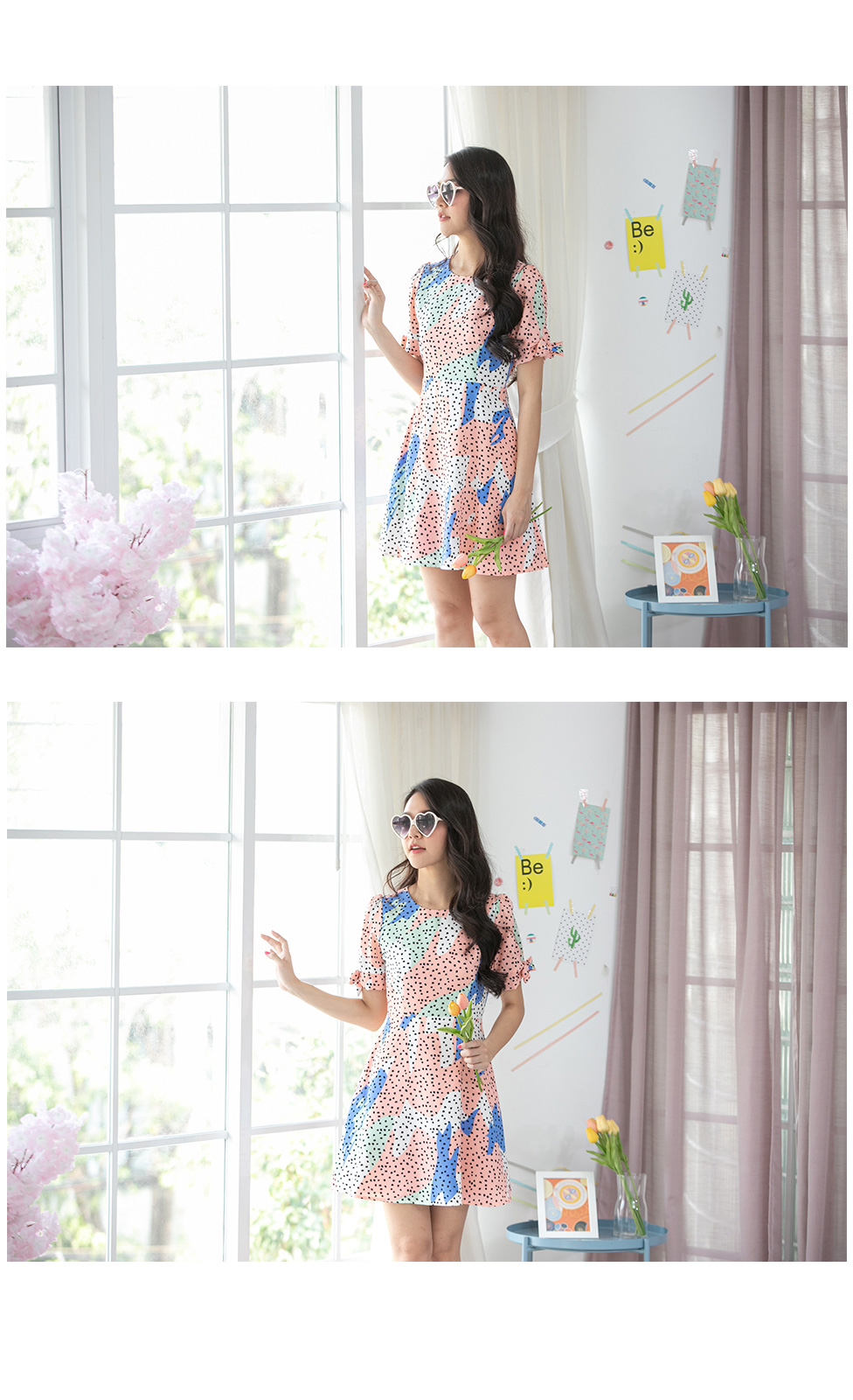 ชุดเดรสน่ารักๆลายกราฟิค สีสันสดใส ลุคคุรหนูสวยหวาน ปลายแขนผูกเป็นโบว์น่ารักๆ เอวฟิค ซิปซ่อนหลัง มาพร้อมซับในทั้งตัว เนื้อผ้าดี พริ้วสวย มีความยืดหยุ่นได้เล็กน้อย ความยาวกำลังสวย จะใส่ทำงาน หรือใส่เที่ยวก้อน่ารัก จัดให้ในราคาเบาๆ