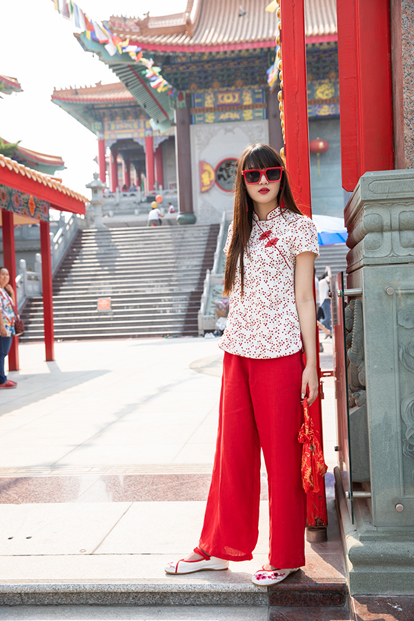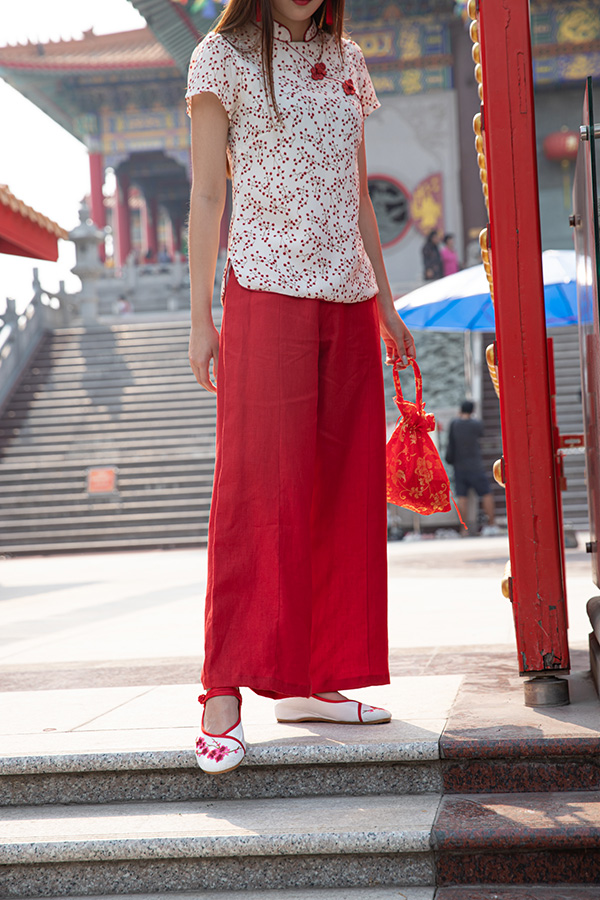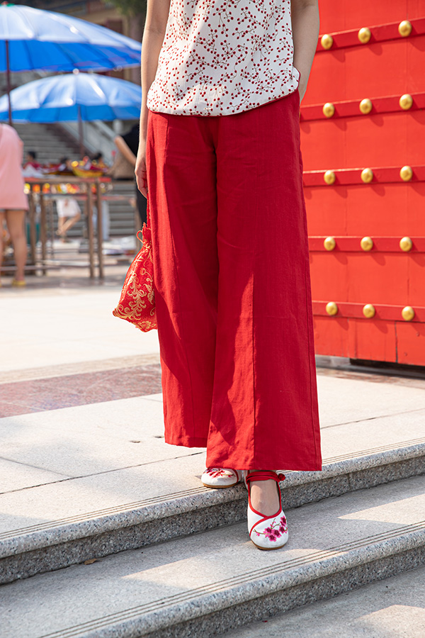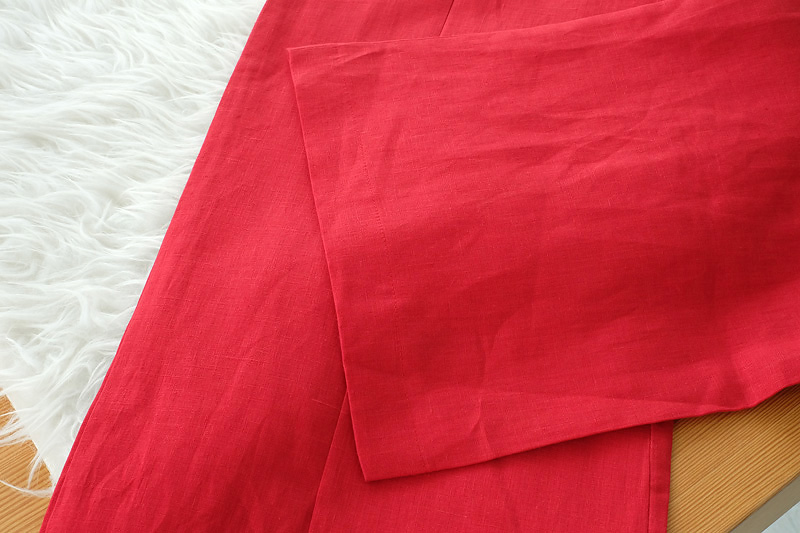 จัดมาให้แล้วกับกางเกงขากระบอกใหญ่ รุ่นนี้เป็นเนื้อผ้าลินินแท้ ทรงเอวสูง เอวฟิคซิปซ่อนหลัง ใส่แมทกับเสื้อคอจีนเข้ากันสุดๆ สีแดงสด สวยมาก