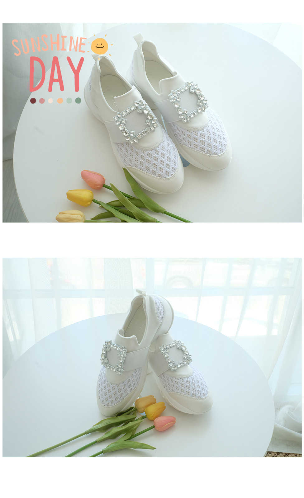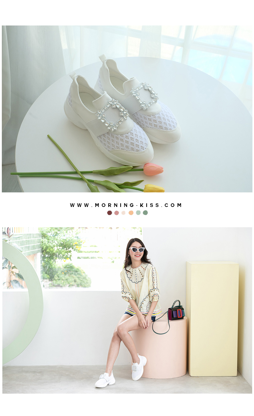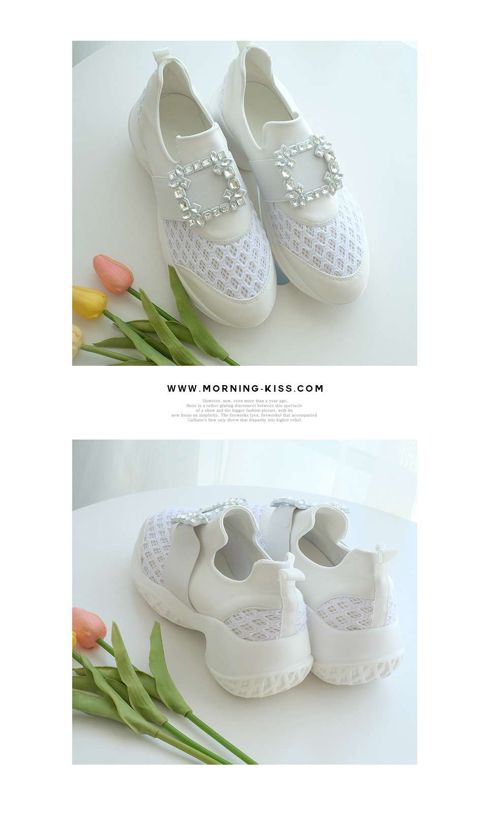 Sneaker ตัวท็อปที่สาวๆเซเลปใส่กันพรึ่บพั่บ ทรงสวยมาก แต่งคริสตัลด้านหน้าดูโดดเด่น เป็นผ้าใบที่ใส่สบายมาก นุ่มคลุมเท้า น้ำหนักเบา ตัวรองเท้ารุ่นนี้ทำจากผ้า spandex อย่างหนา ที่เป็นชนิดสำหรับทำรองเท้าโดยเฉพาะ ทำให้เวลาใส่จะมีความยืดหยุ่นและสวมใส่ง่าย