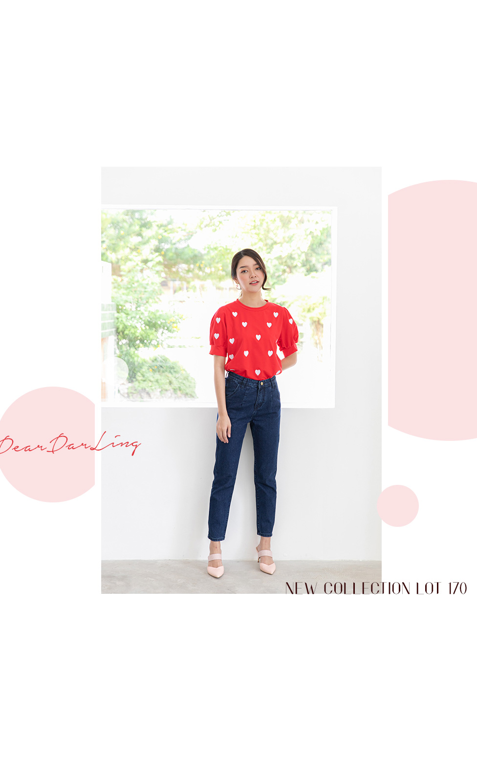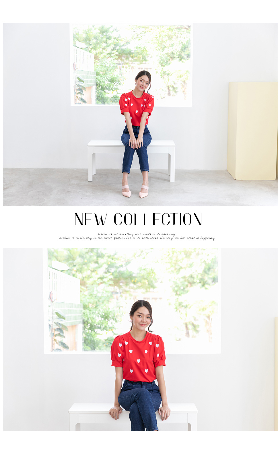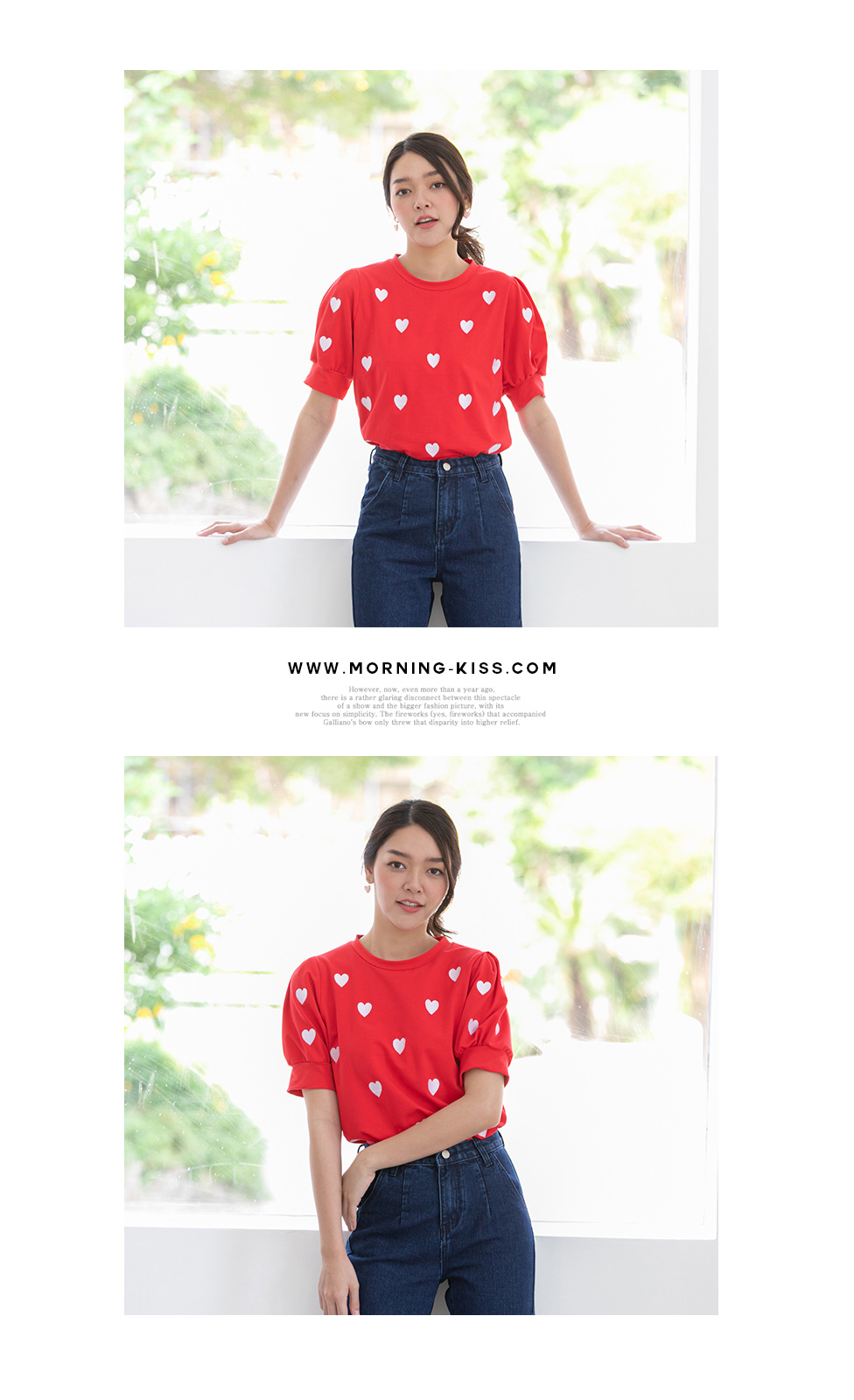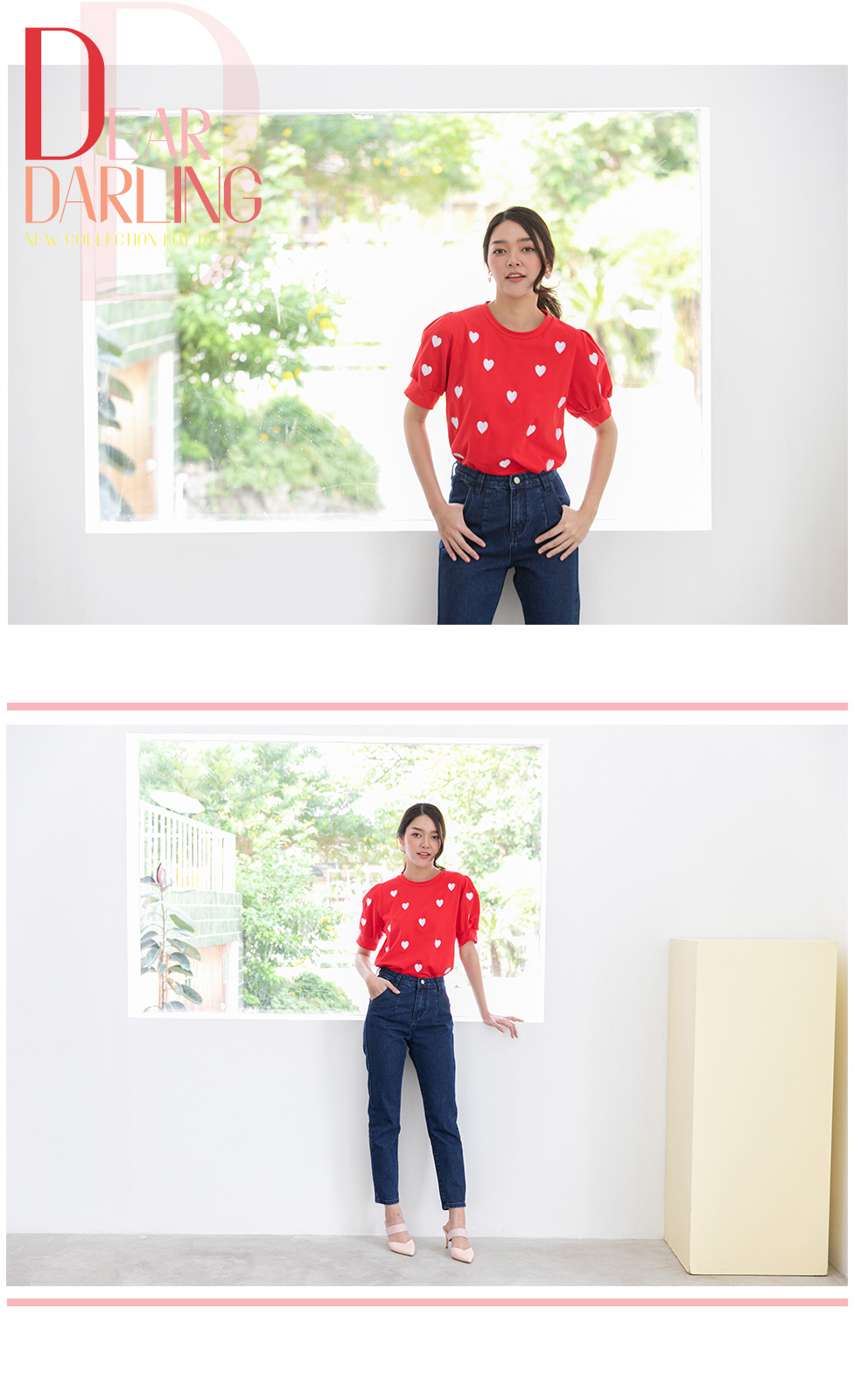 วาเลนไทน์นี้แนะนำรายการนี้เลยค่ะ เสื้อแขนสั้นสีแดงงานปักรูปหัวใจสีขาวด้านหน้า ปลายแขนจั๋มเข้าเล็กน้อย เนื้อผ้านิ่มใส่สบายสุดๆ จับแมทกับกางเกงหรือกางเกงตัวโปรด รับรองสวยหวานลงตัว