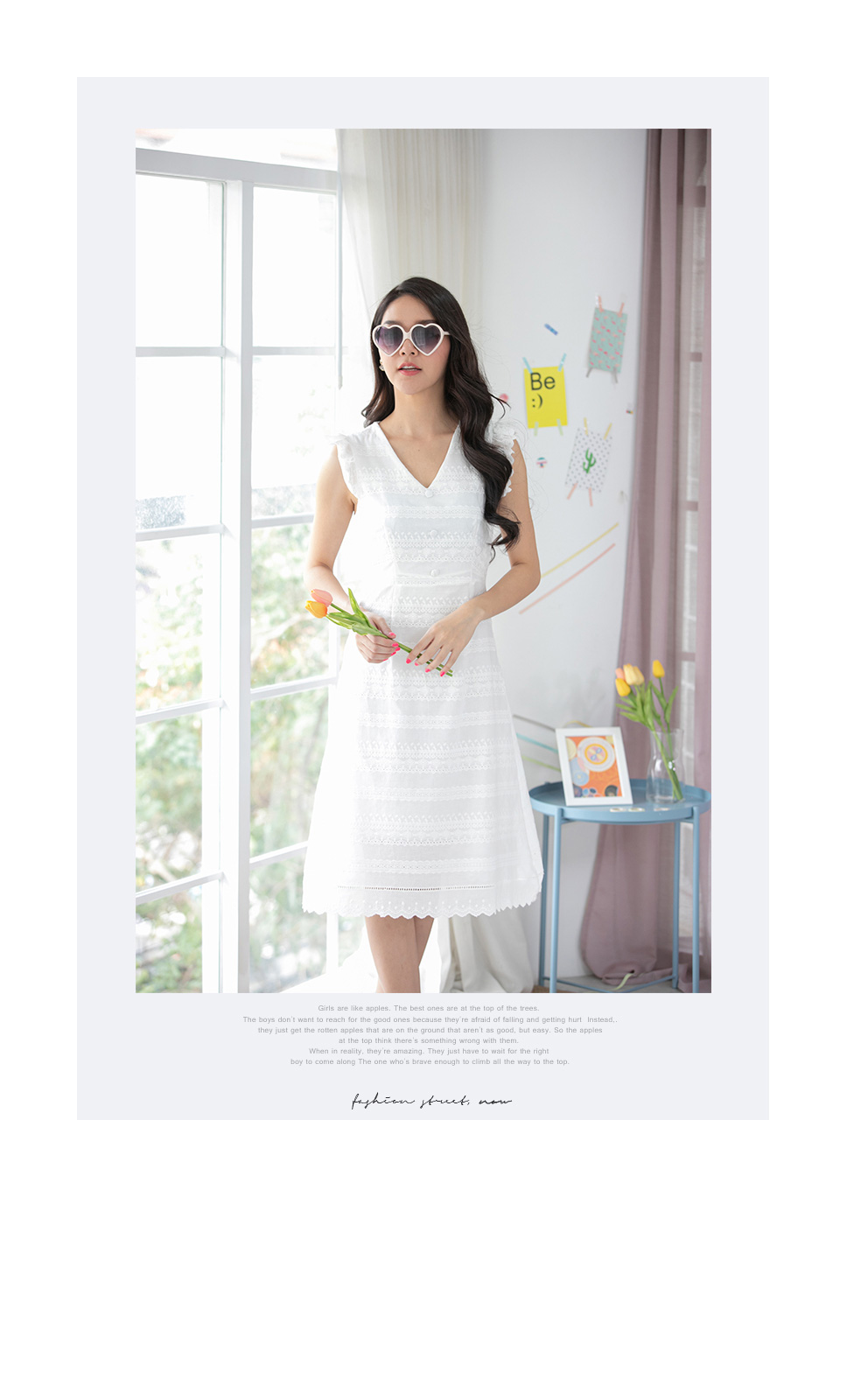 ใครมองหาชุดลูกไม้สวยหวาน น่ารักๆสไตส์คุณหนูต้องชุดนี้เลย งานดีมาก กับชุดเดรสแขนกุดคอวีผ้าฉลุลายลูกไม้ สวยละมุนมาก เนื้อผ้านิ่มลายสวย ใส่แล้วไม่คัน แต่งกระดุมหลอกด้านหน้า มีสายผูกเอวให้ด้วยนะค่ะ มาพร้อมซับในอย่างดี ใส่ออกงานหรือออกเดทได้เลยค่า จัดมาให้เลือก 2 สี ขาว/แดง