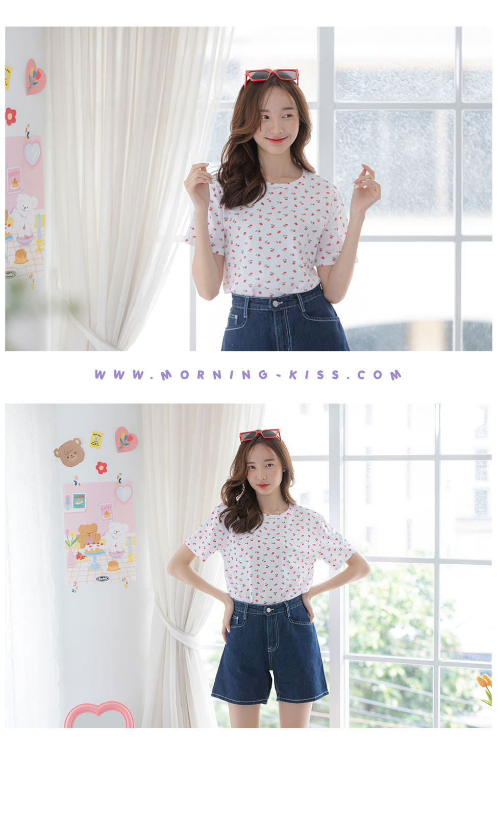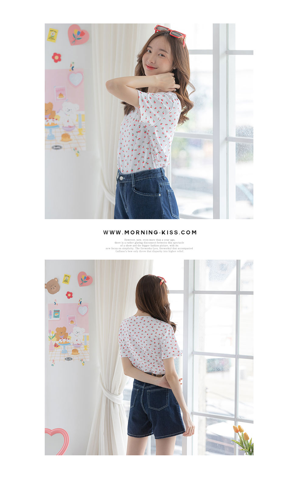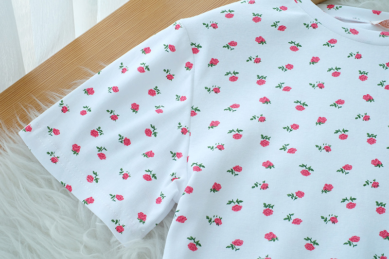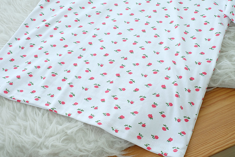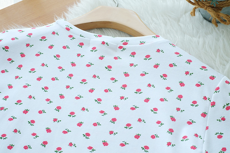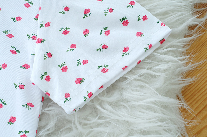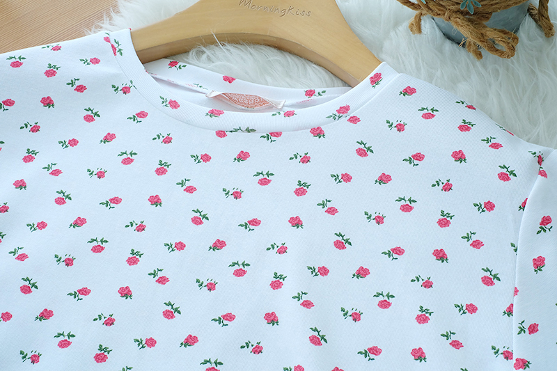 เสื้อแขนสั้นสีขาว งานปริ้นลายดอกไม้รอบตัว แบบสวยหวานเรียบๆ เนื้อผ้านุ่มนิ่มใส่สบาย งานดีมาก แมทกับยีนส์ขาสั้นหรือกระโปรงก็น่ารัก ใส่เที่ยวเล่นหรือใส่อยู่บ้านลุคชิวๆ