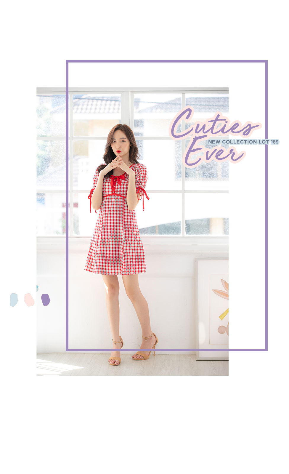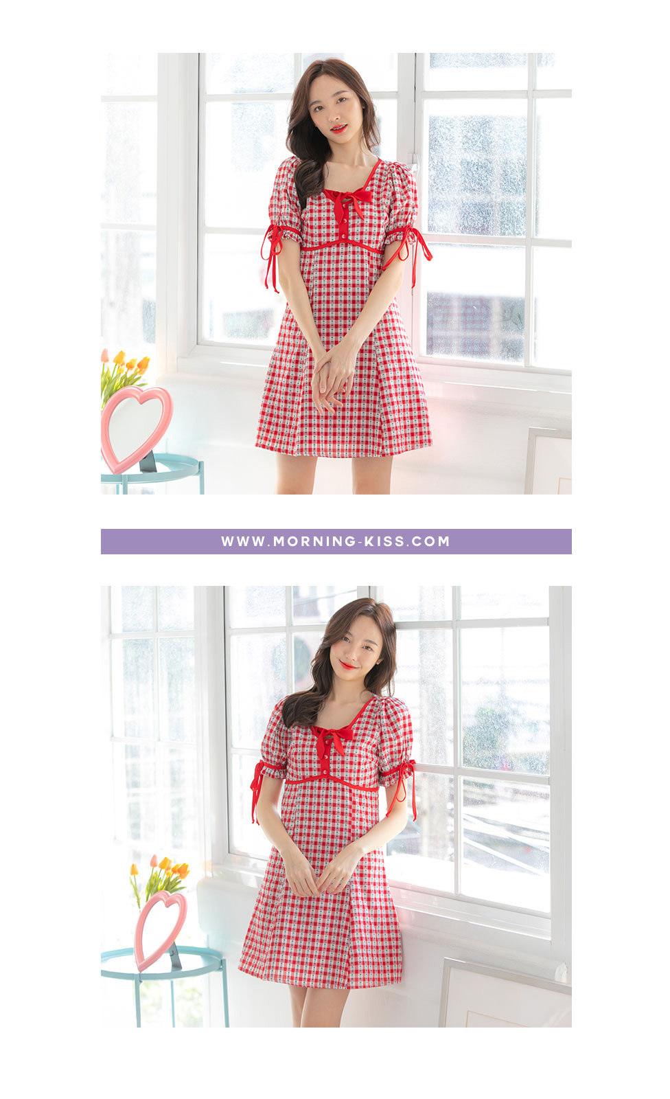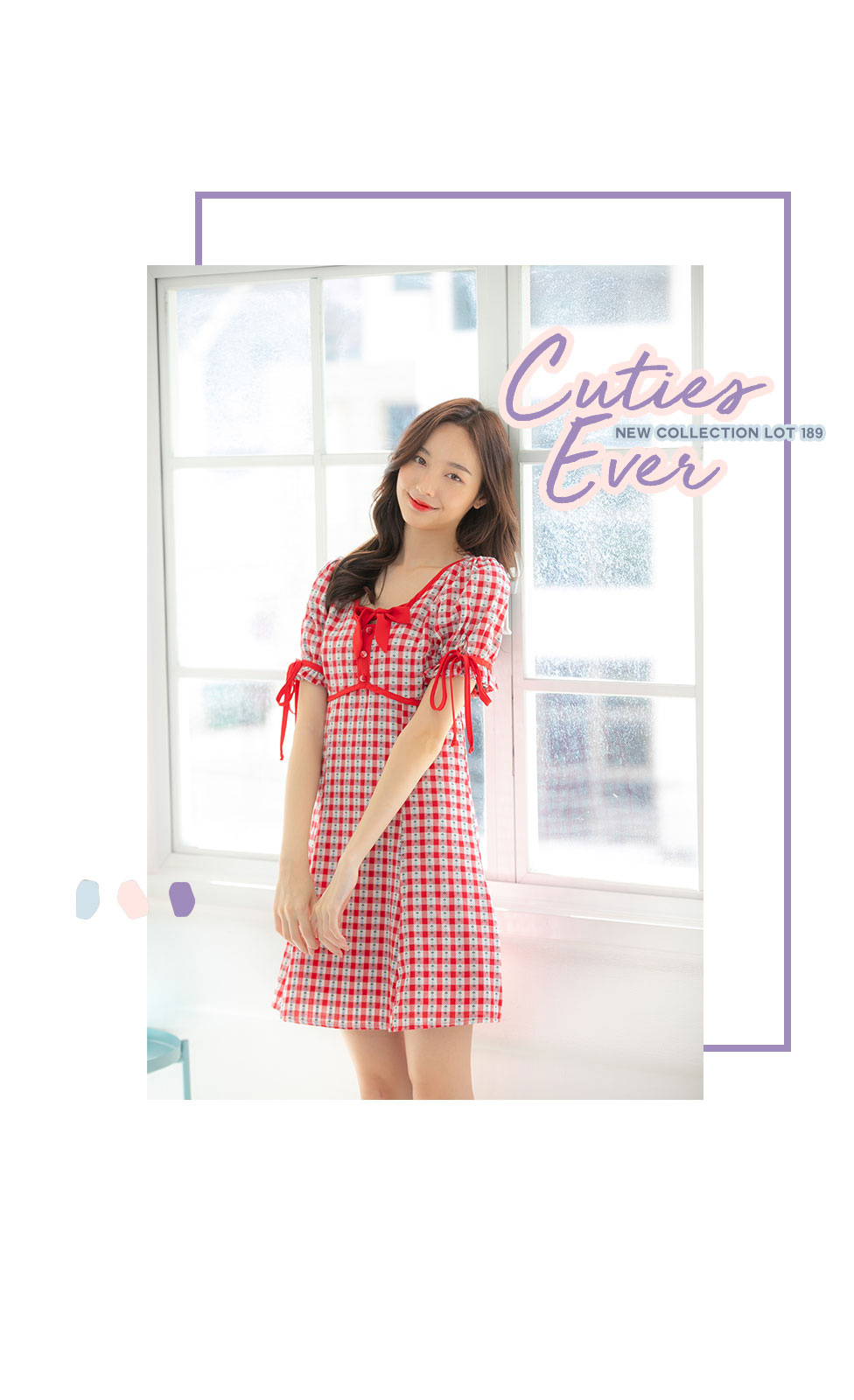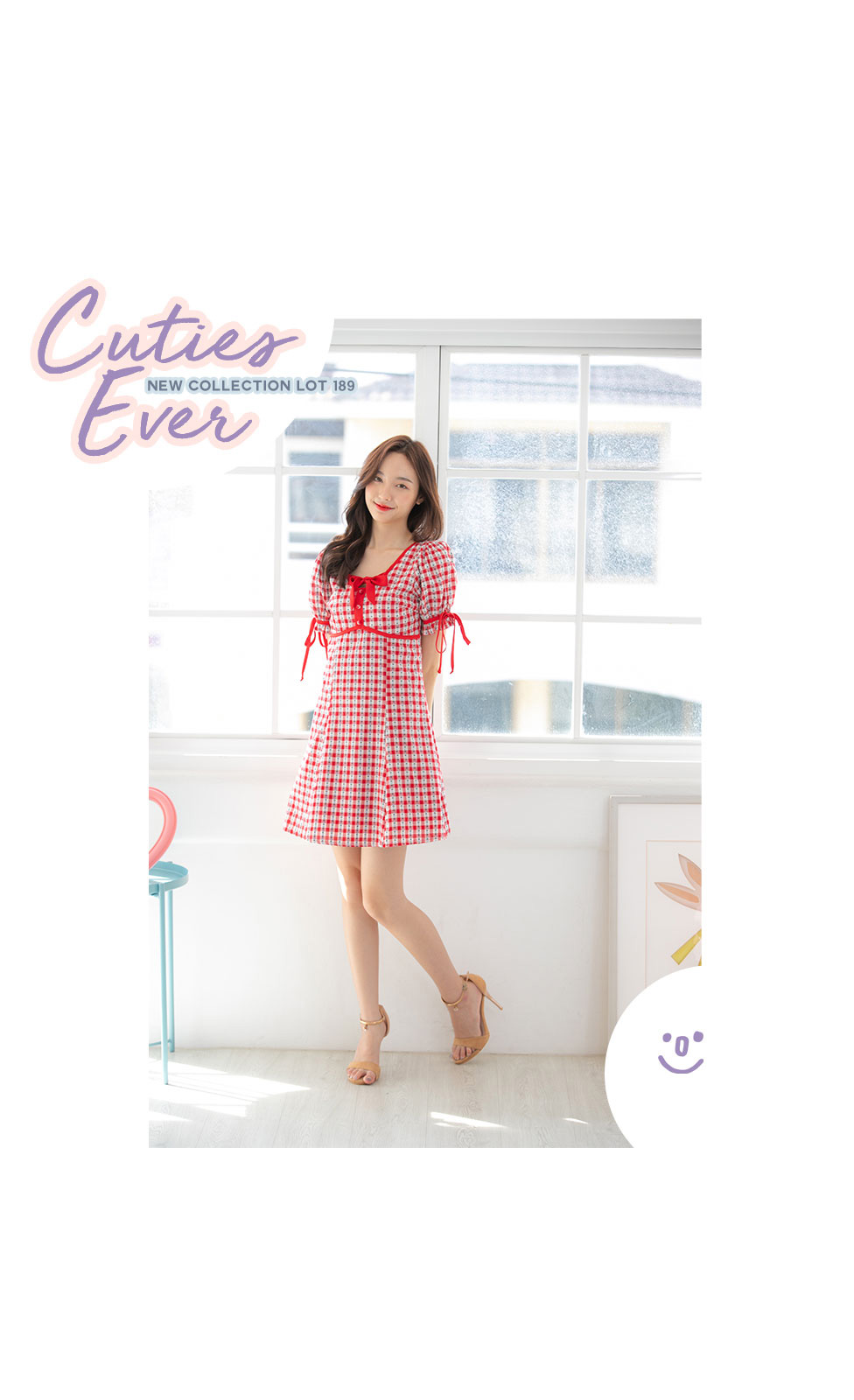 เดรสลายตารางสีแดงแบบน่ารักๆ ดีเทลอัดแน่น งานสกรีนลายดอกไม้เล็กๆรอบตัว ช่วงคอด้านหน้ามีสายผูกเป็นโบว์ ช่วงแขนทำพองๆเล็กๆมีสายผูก ซับในทั้งตัว ซิปซ่อนด้านหลัง รุ่นนี้งานดีมาก สวยคุ้มๆ กับโทนสีแดง โดดเด่น ลุคคุณหนู ชุดเดียวเอาอยู่จริงๆ