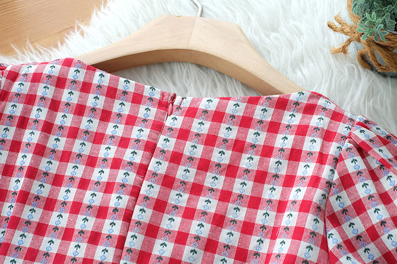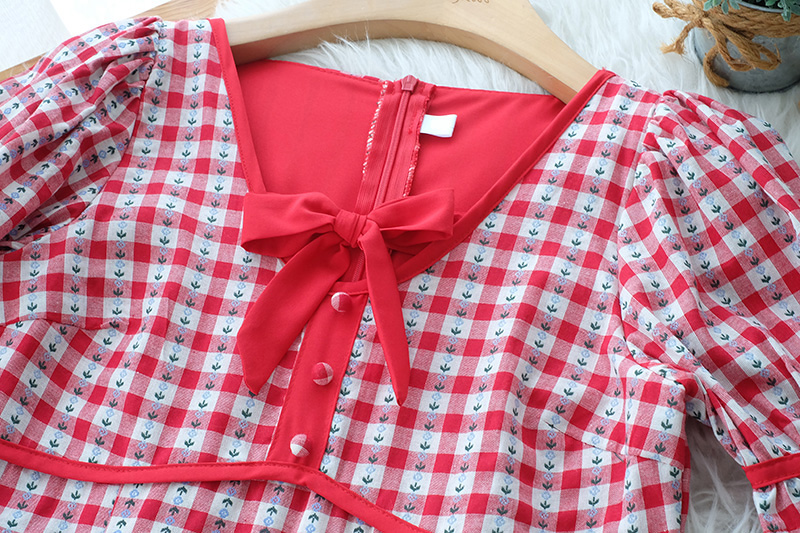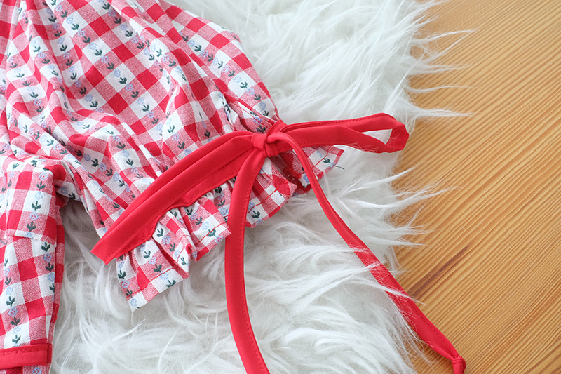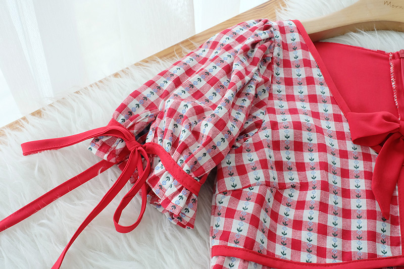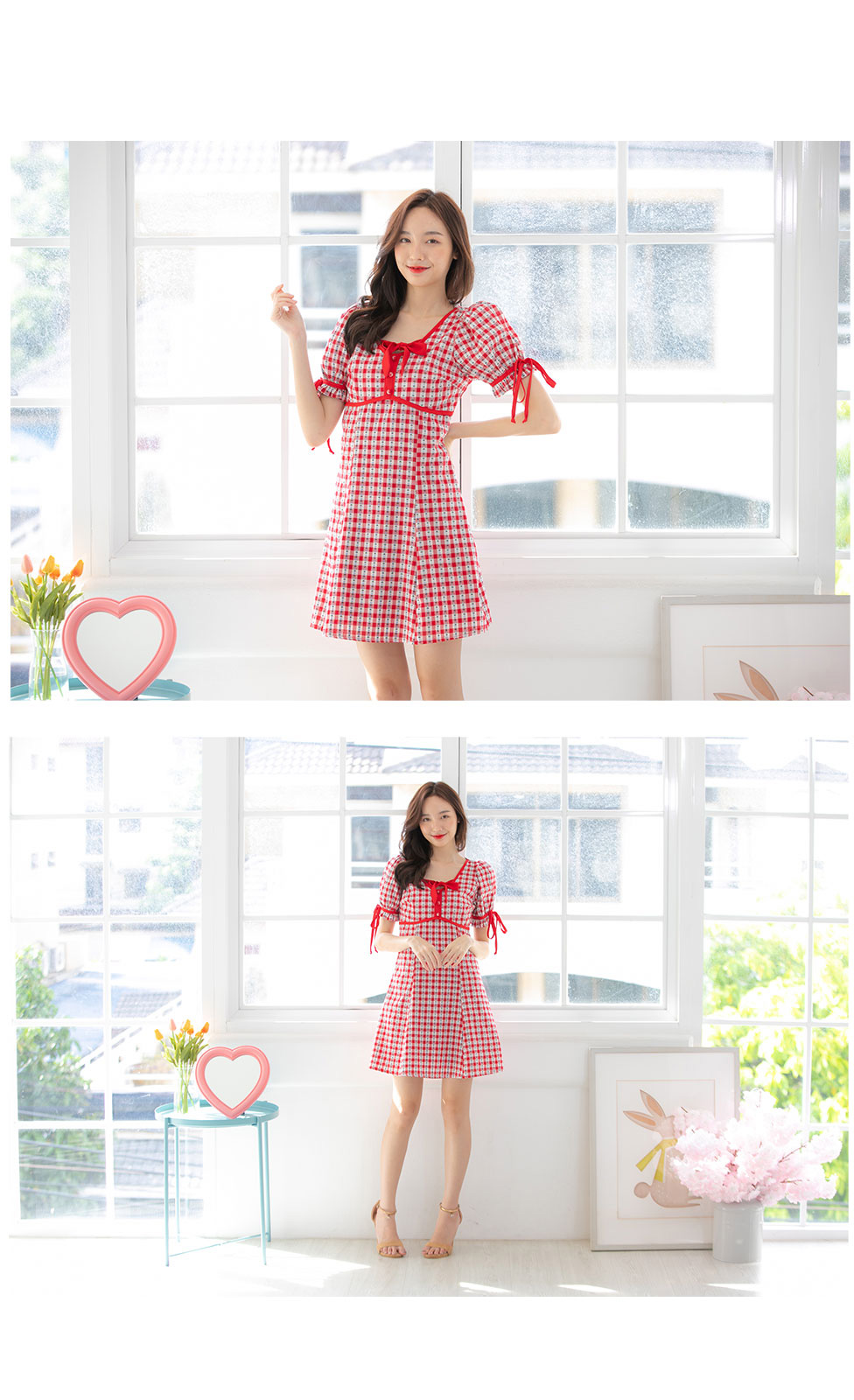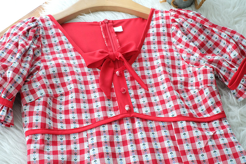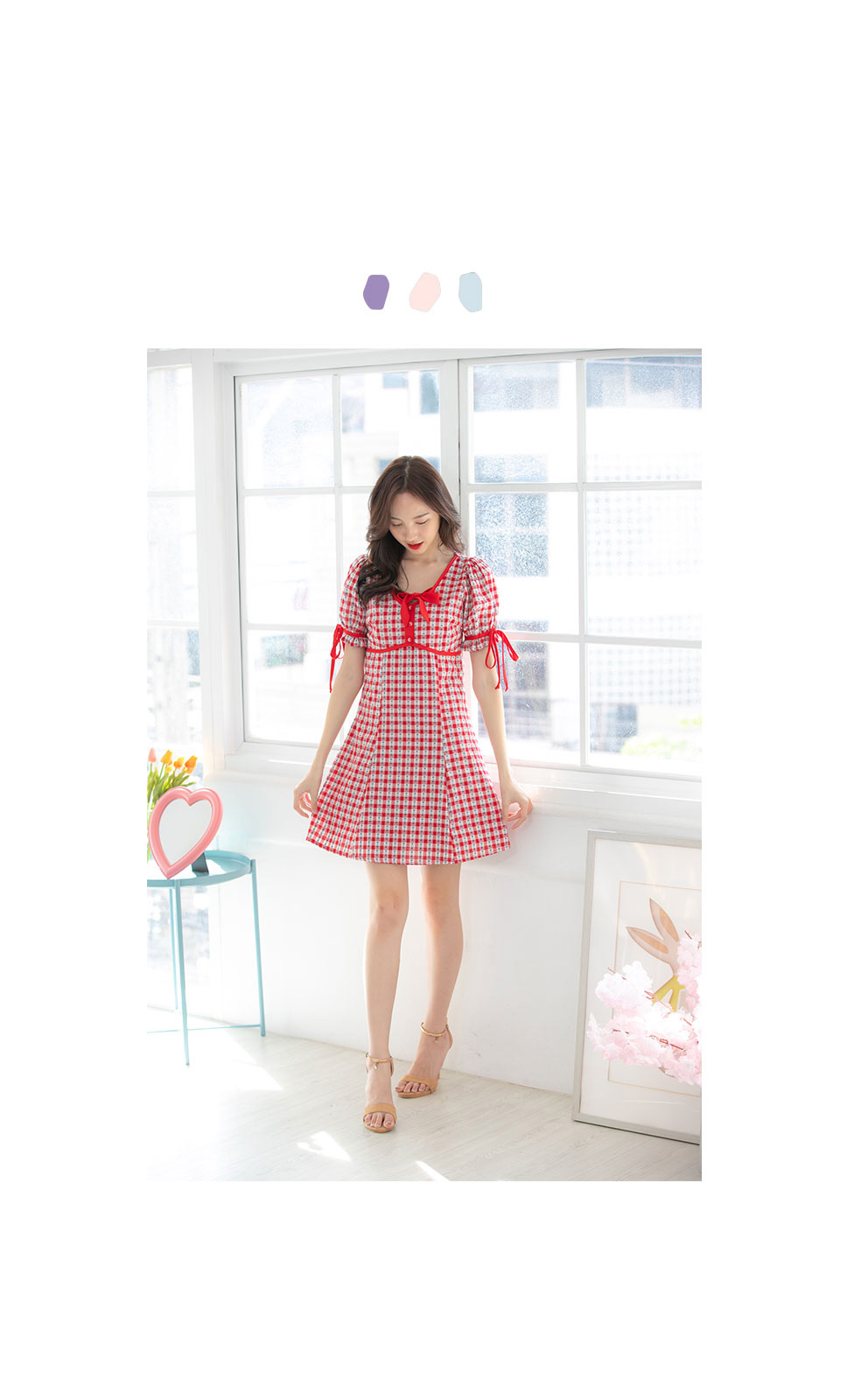 เดรสลายตารางสีแดงแบบน่ารักๆ ดีเทลอัดแน่น งานสกรีนลายดอกไม้เล็กๆรอบตัว ช่วงคอด้านหน้ามีสายผูกเป็นโบว์ ช่วงแขนทำพองๆเล็กๆมีสายผูก ซับในทั้งตัว ซิปซ่อนด้านหลัง รุ่นนี้งานดีมาก สวยคุ้มๆ กับโทนสีแดง โดดเด่น ลุคคุณหนู ชุดเดียวเอาอยู่จริงๆ