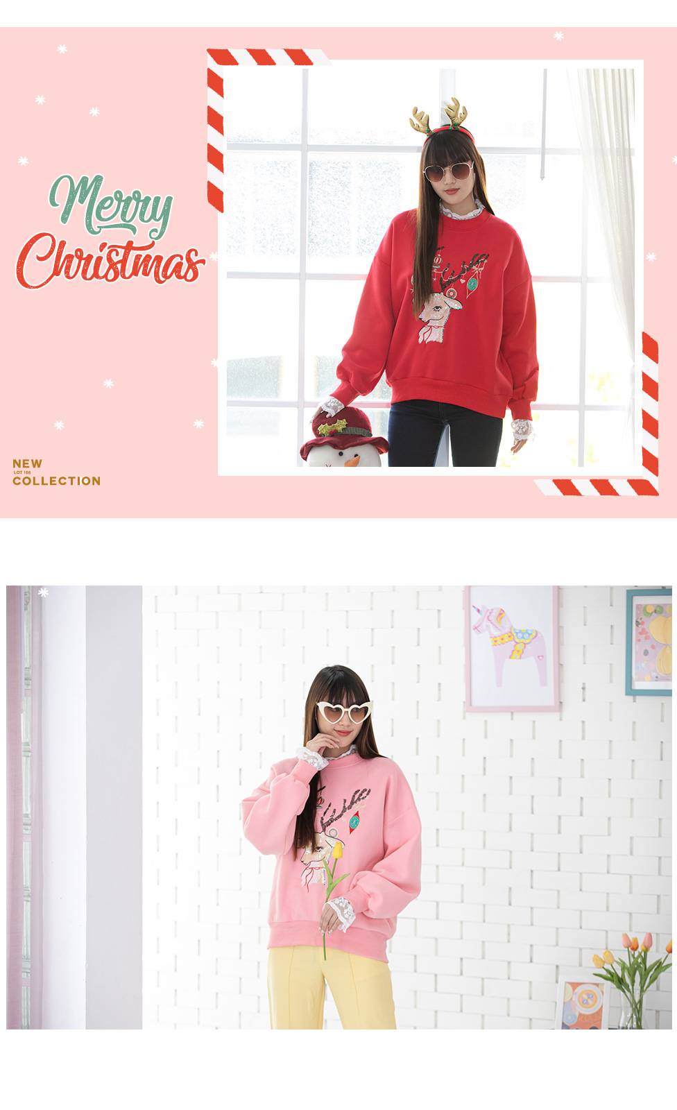 ตอนรับเทศกาลคริสมาสต์ด้วยเสื้อแขนยาวงานปักดิ้นรูปกวางน่ารักๆ เนื้อด้านนอกเป็นค๊อตตอลเนื้อนุ่มมาก ด้านในเป็นเนื้อสำลีใส่สบาย ทรงใส่หลวมๆ งานดีมาก ช่วงคอและปลายแขนต่อด้วยผ้าลูกไม้ ให้อารมณ์สวยหวาน สาวๆที่กำลังมองหาเสื้อใส่เที่ยวคริสมาต์อย่ารอช้า ไอเท็มนี้น่ารักมากจริงๆ มี 2 สี ชมพู/แดง