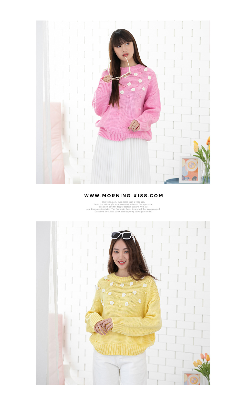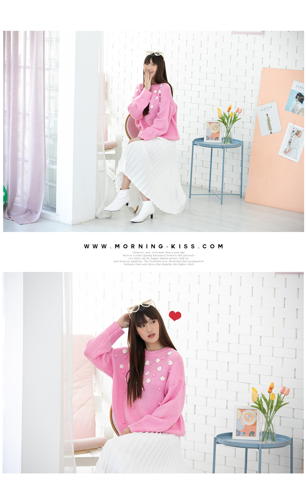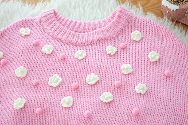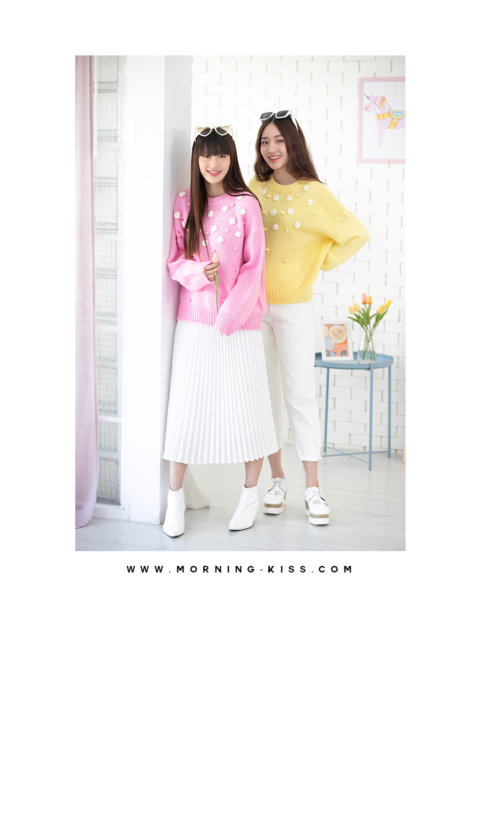 น่ารักมากๆกับไอเท็มนี้ จัดมาให้เลย  สี สวยๆ กับเสื้อไหมพรมแต่งดอกไม้เกสรมุก + ตุ้มทำนูนๆแบบ 3 มิติ เนื้อผ้าทอลายแบบมี texture ในตัวไหมพรมเนื้อกลางๆใส่สบาย ไอเท็มแนะนำ สวยหวานมากจริงๆ