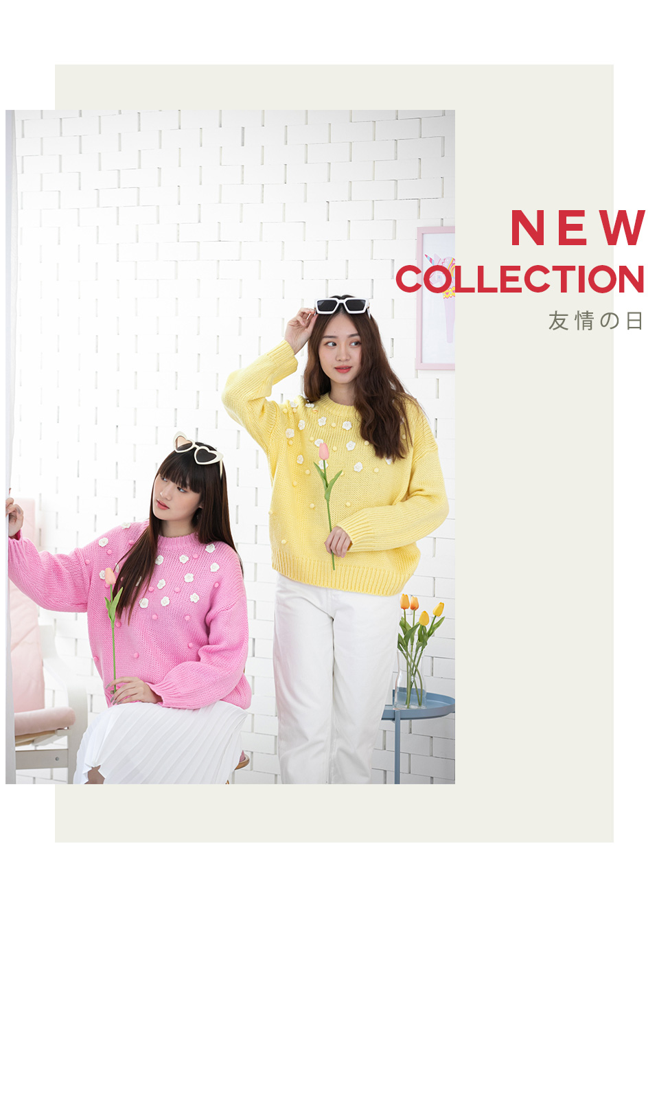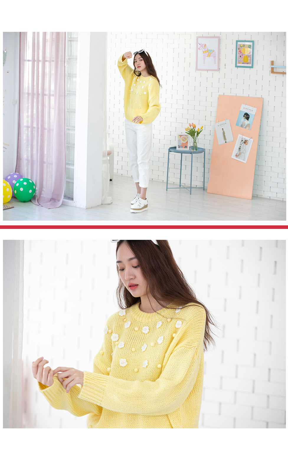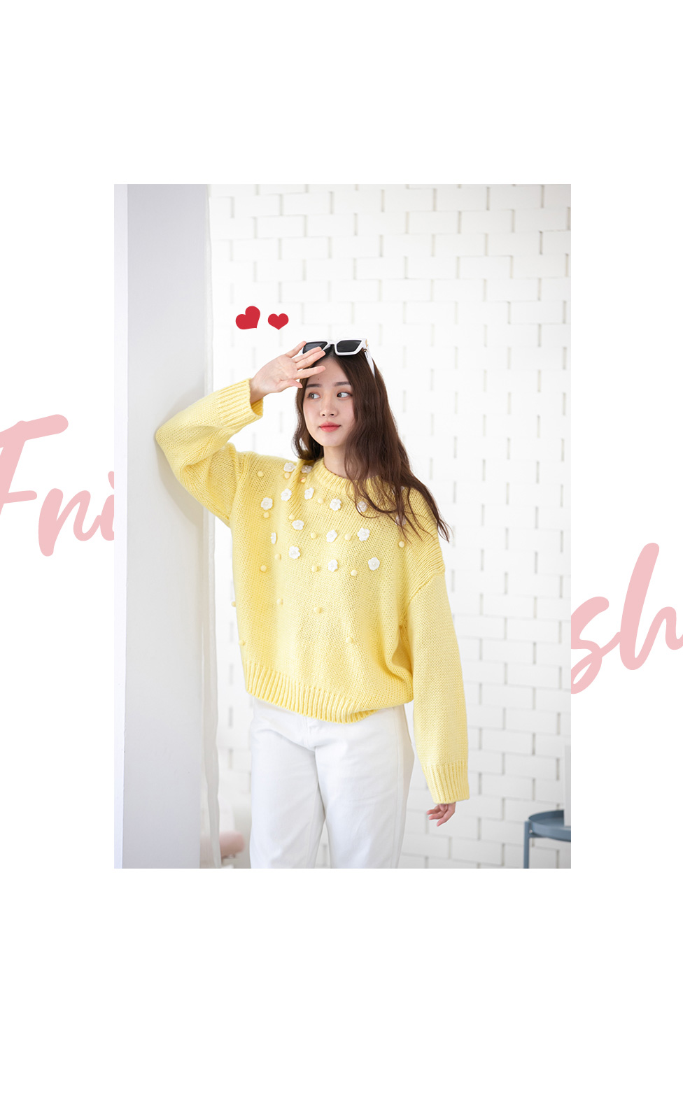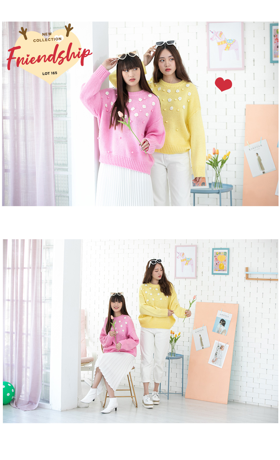 น่ารักมากๆกับไอเท็มนี้ จัดมาให้เลย  สี สวยๆ กับเสื้อไหมพรมแต่งดอกไม้เกสรมุก + ตุ้มทำนูนๆแบบ 3 มิติ เนื้อผ้าทอลายแบบมี texture ในตัวไหมพรมเนื้อกลางๆใส่สบาย ไอเท็มแนะนำ สวยหวานมากจริงๆ